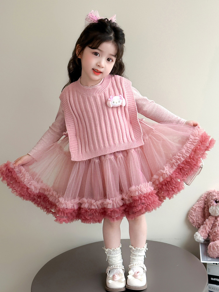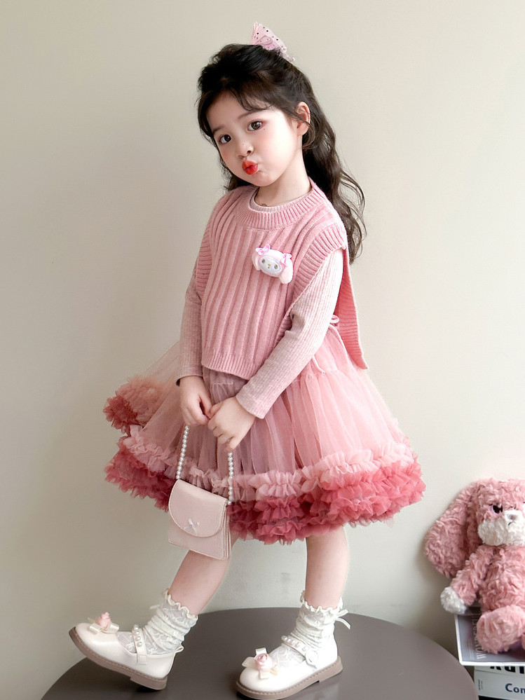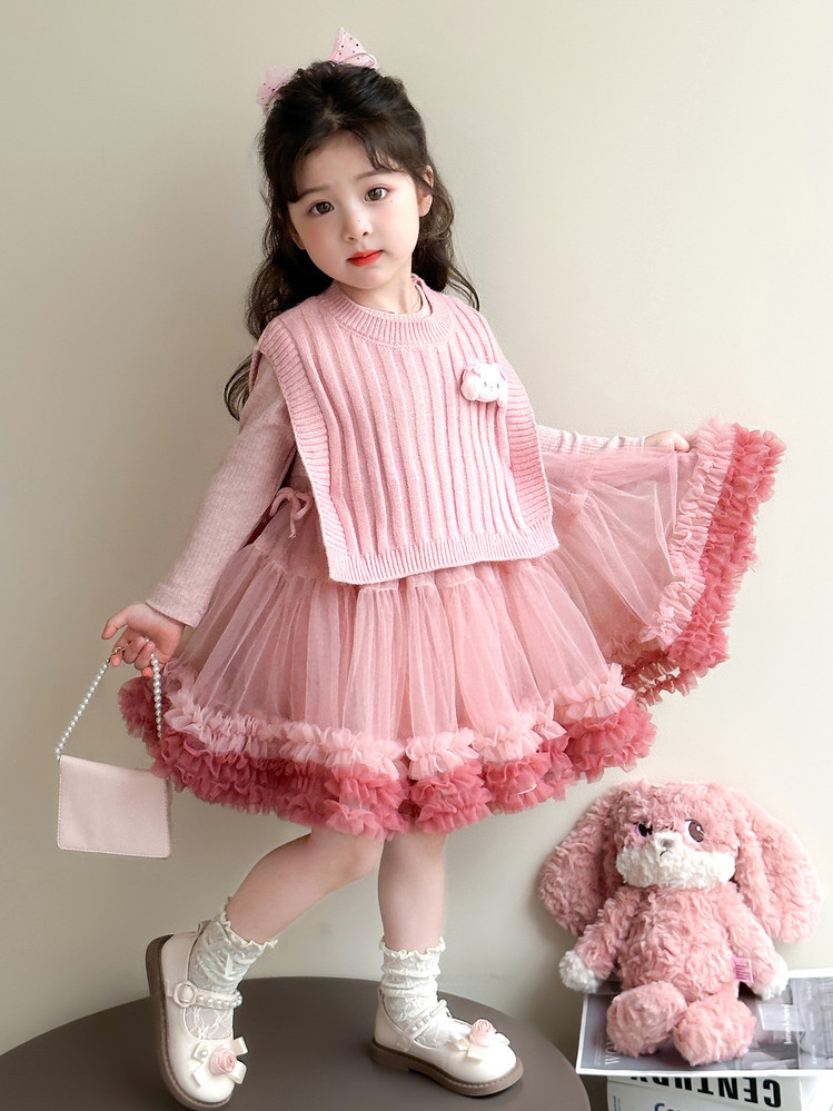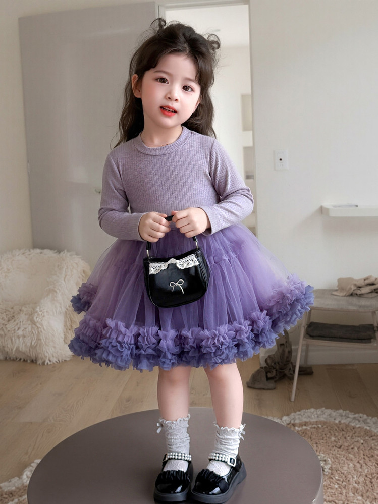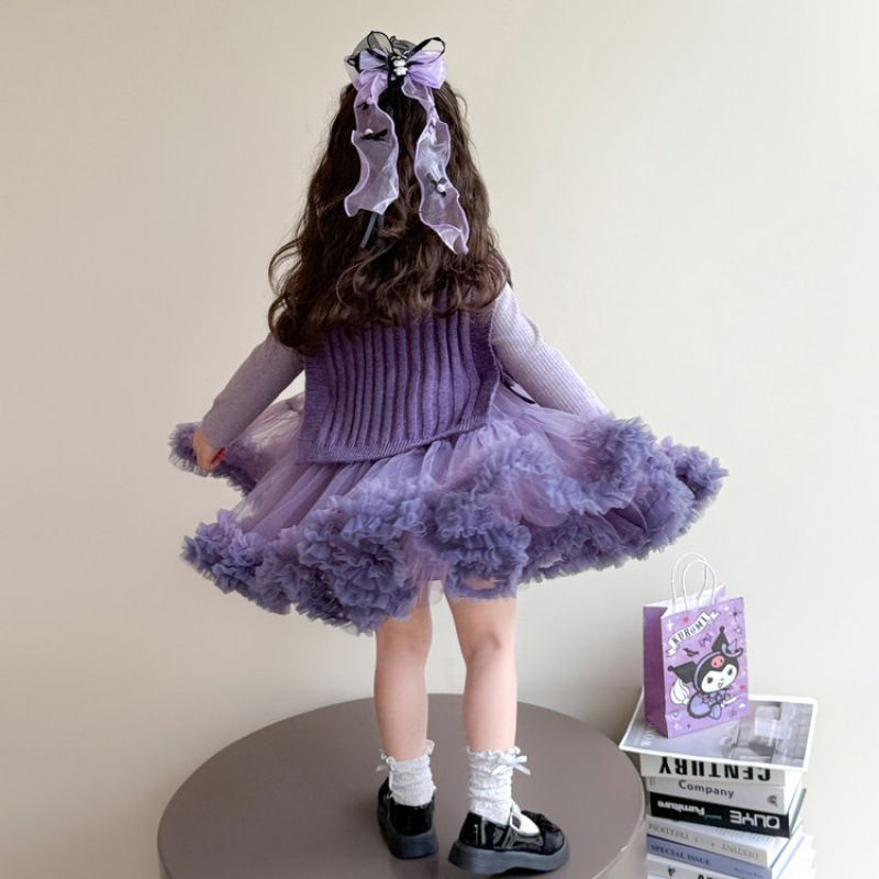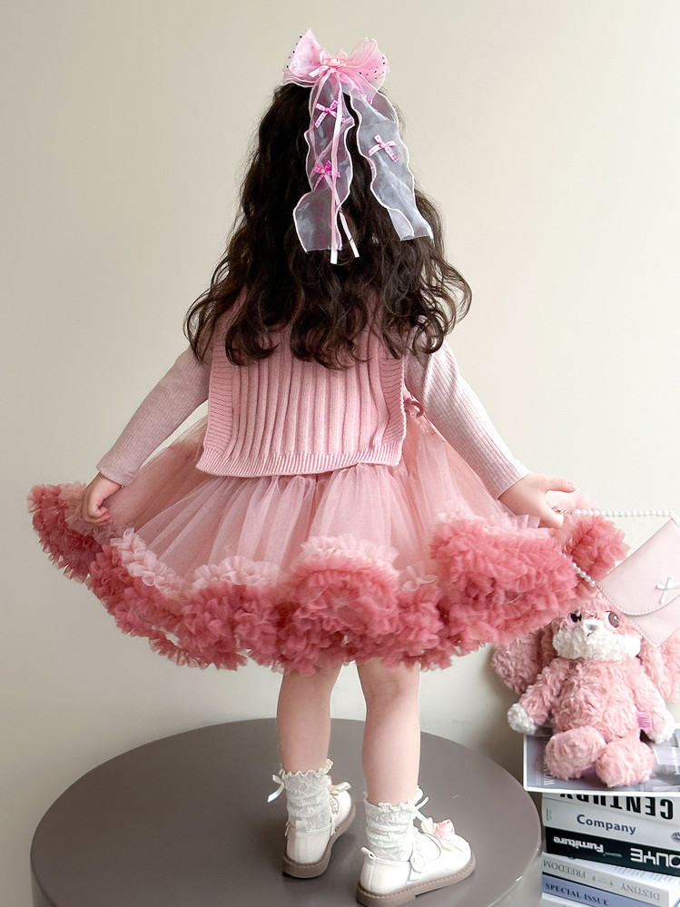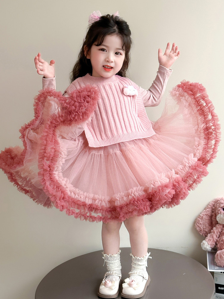 Girls' Spring and Autumn Princess Dress, Stylish Little Chanel-Style Puffy Tutu Skirt Set for Little Girls' Birthday