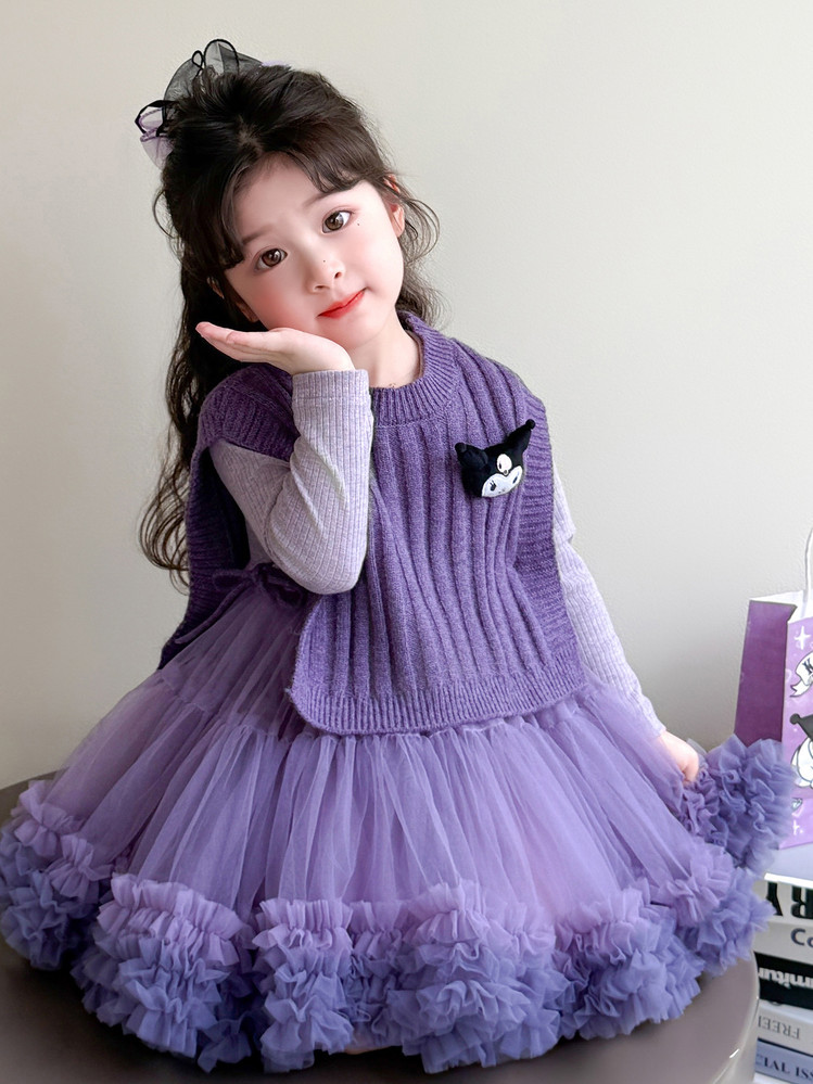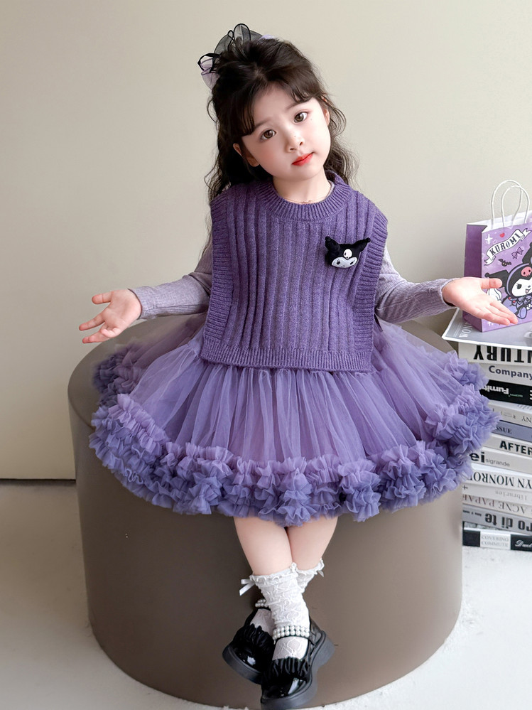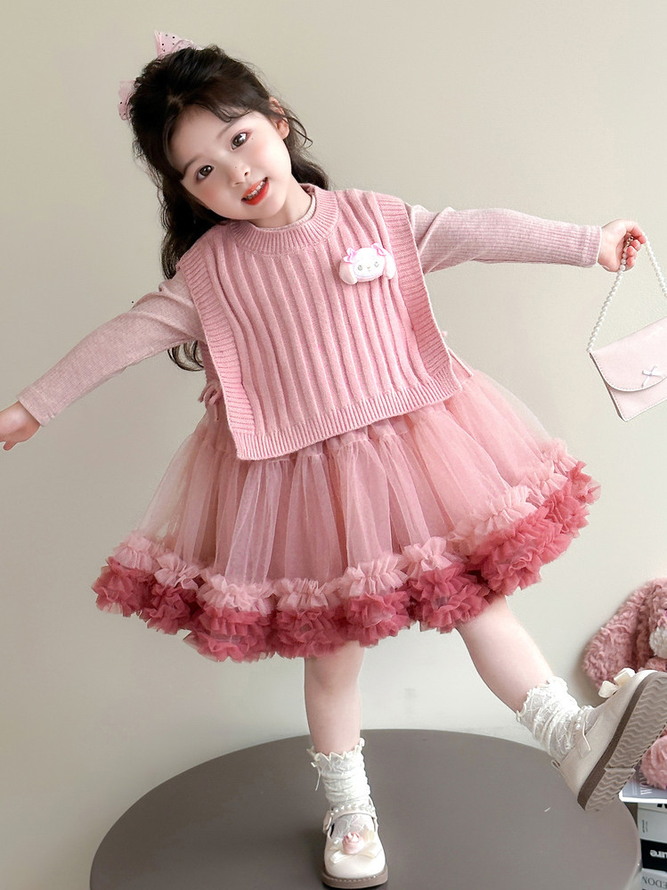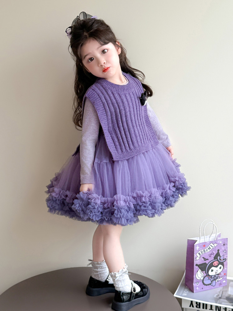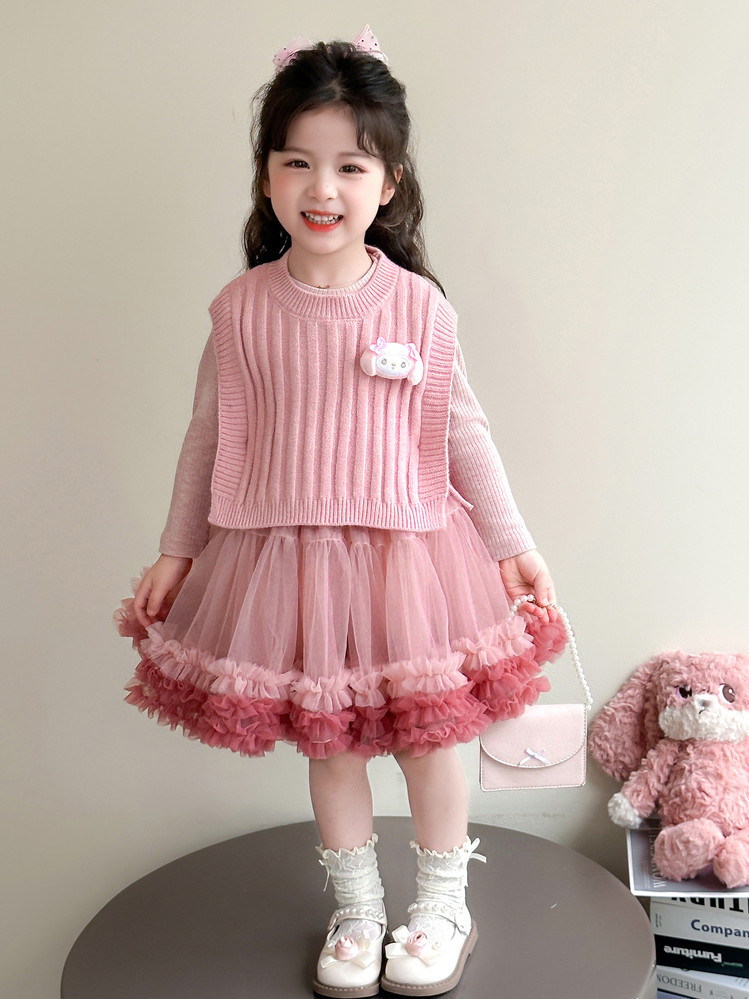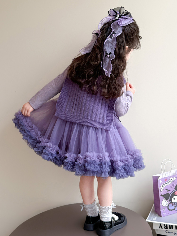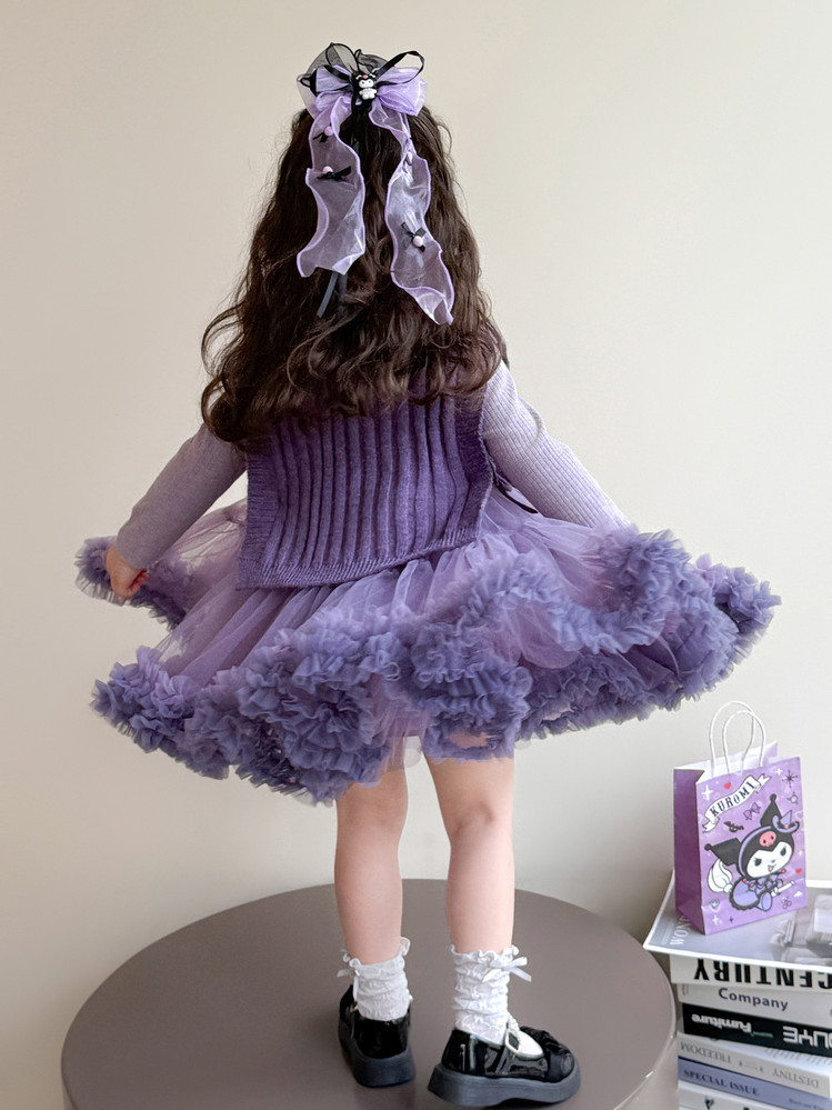 Girls' Spring and Autumn Princess Dress, Stylish Little Chanel-Style Puffy Tutu Skirt Set for Little Girls' Birthday