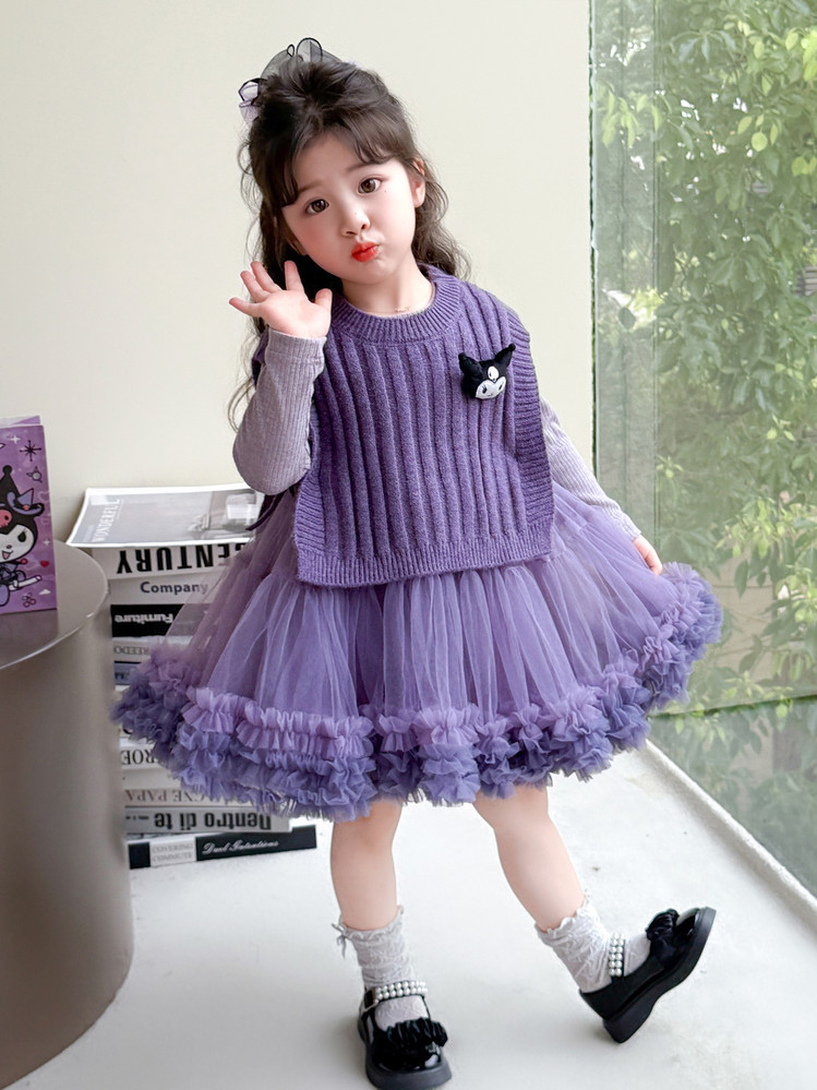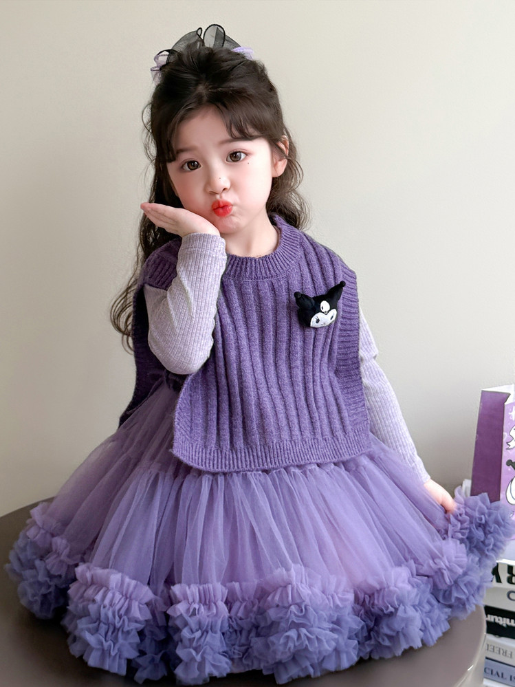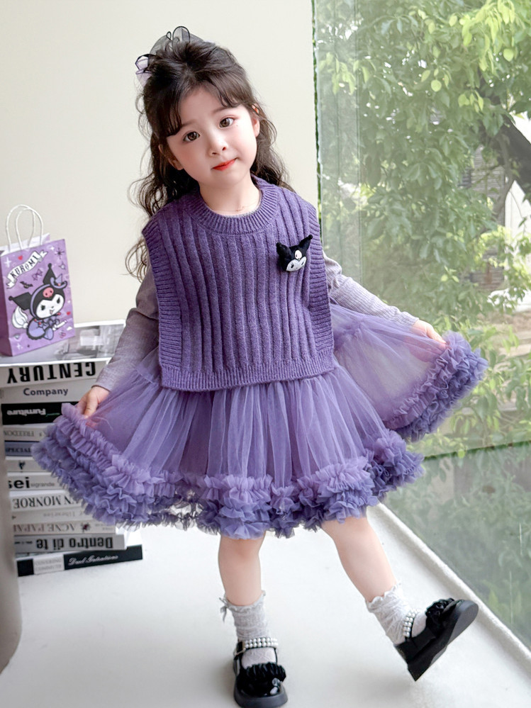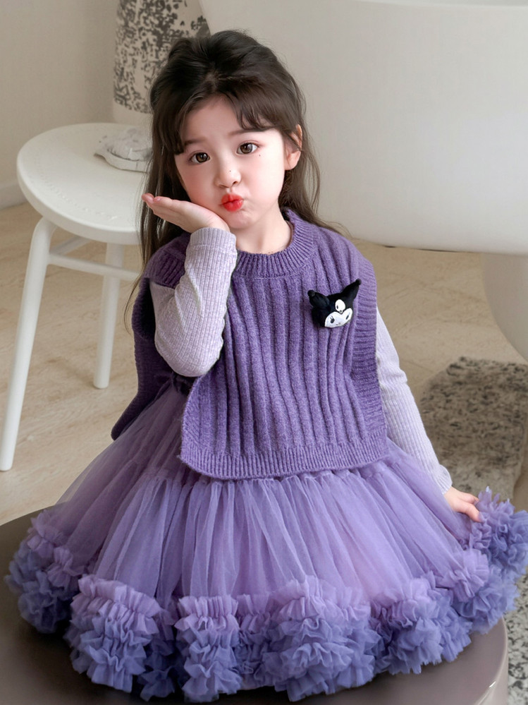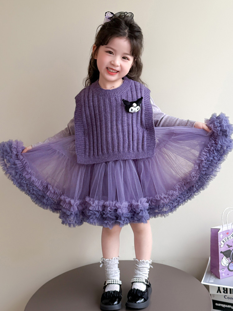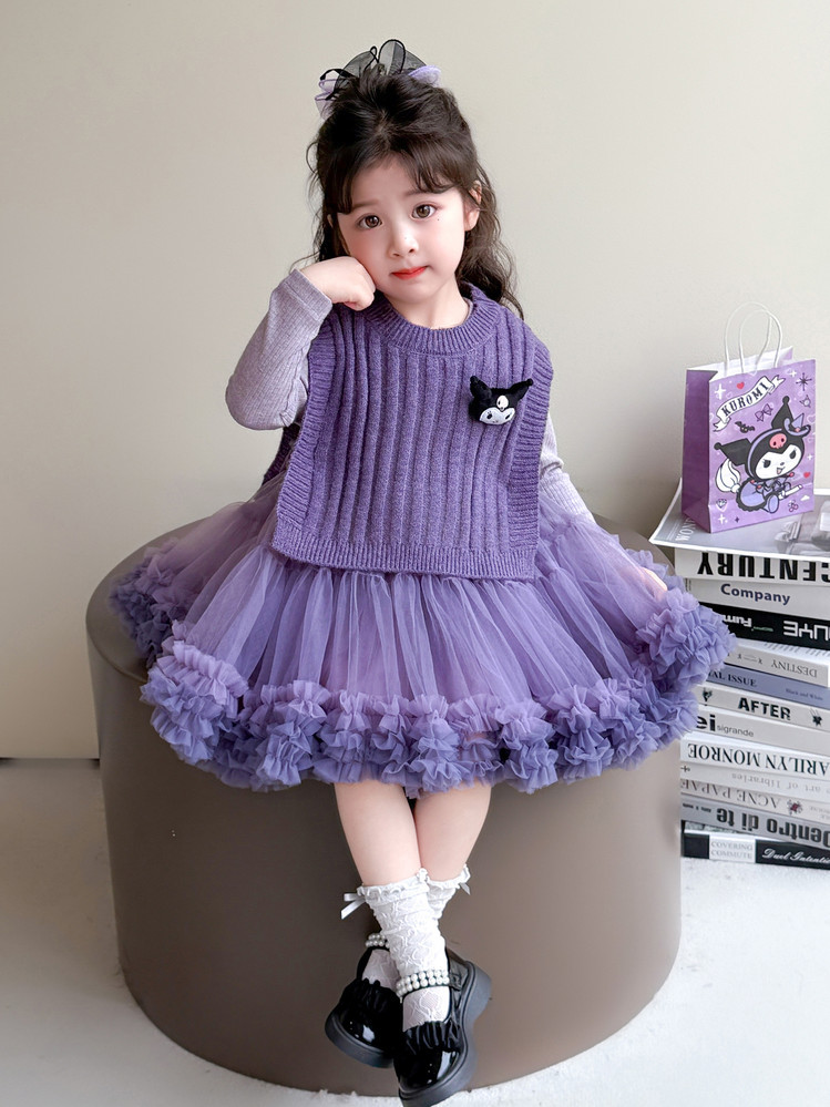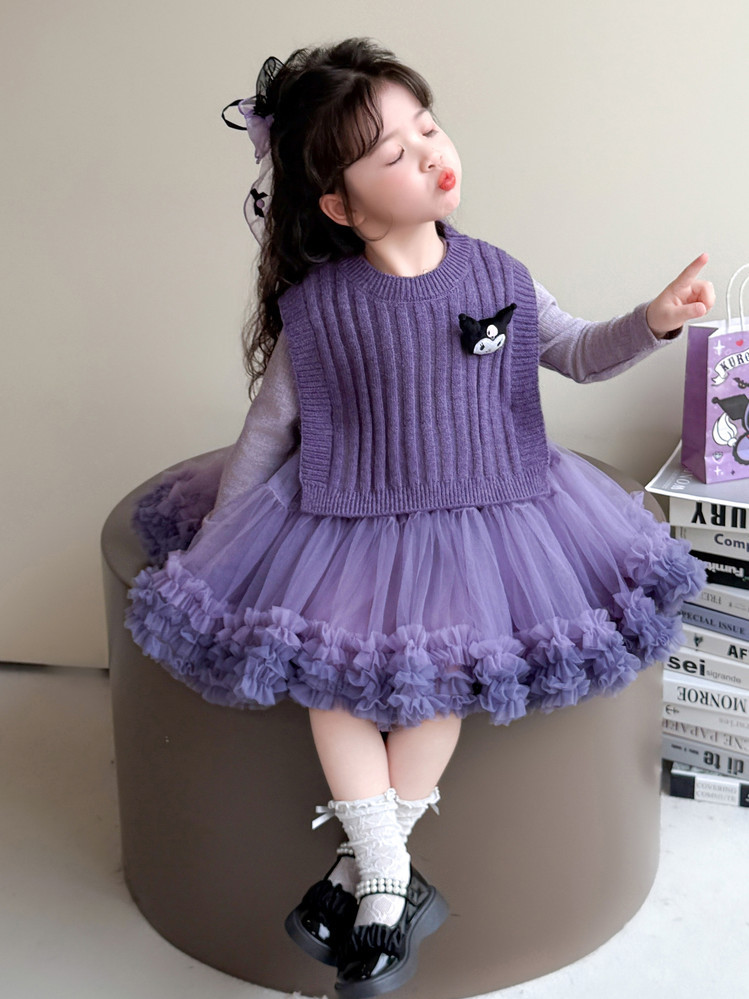 Girls' Spring and Autumn Princess Dress, Stylish Little Chanel-Style Puffy Tutu Skirt Set for Little Girls' Birthday