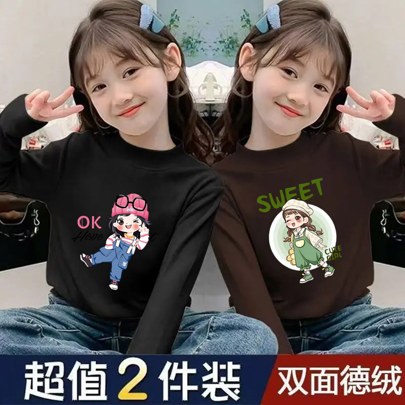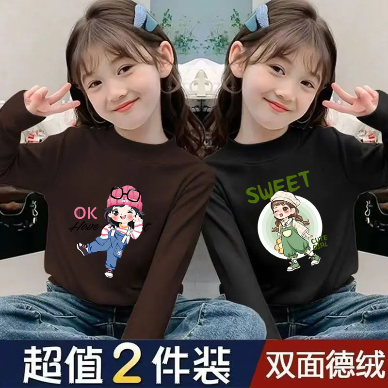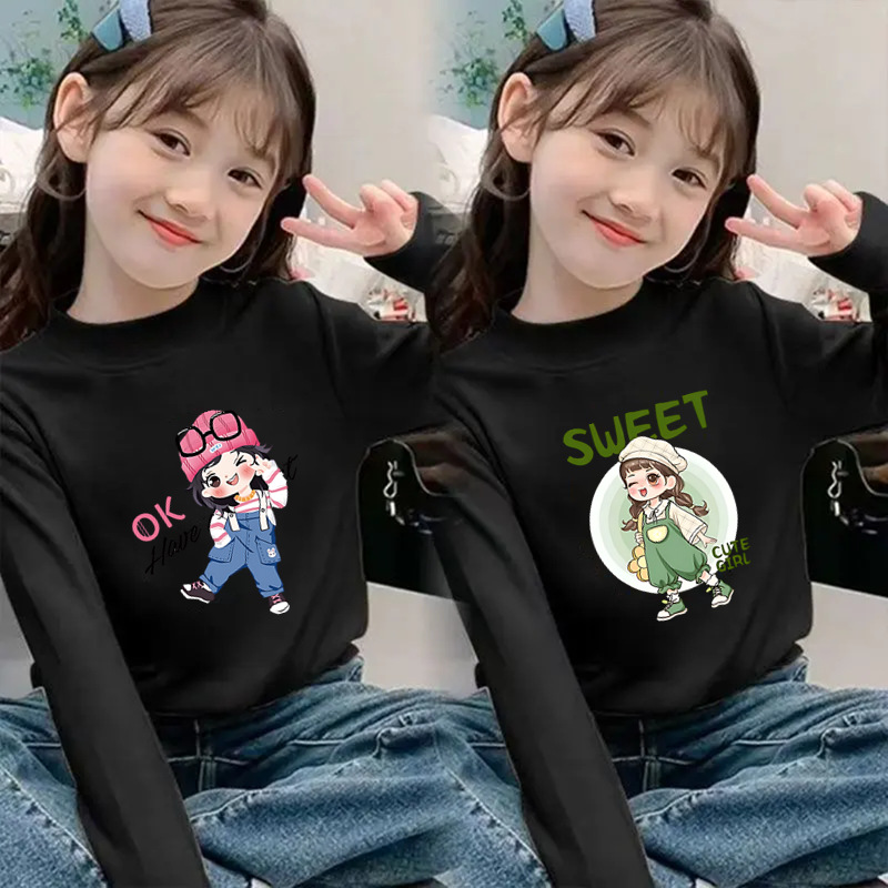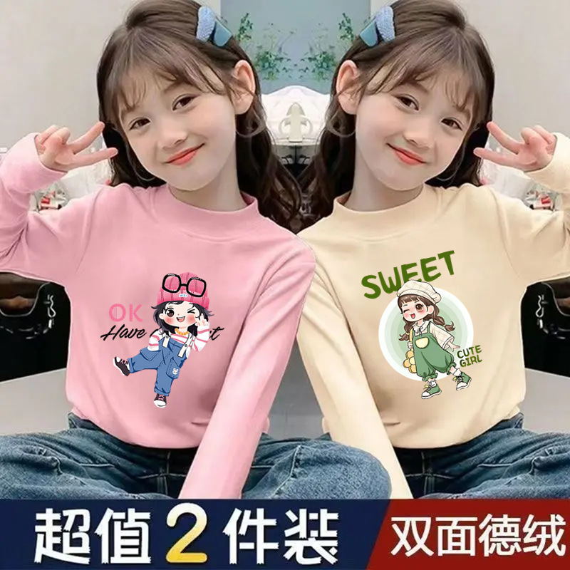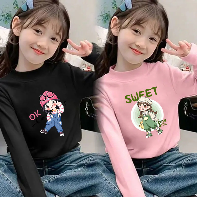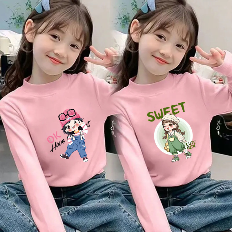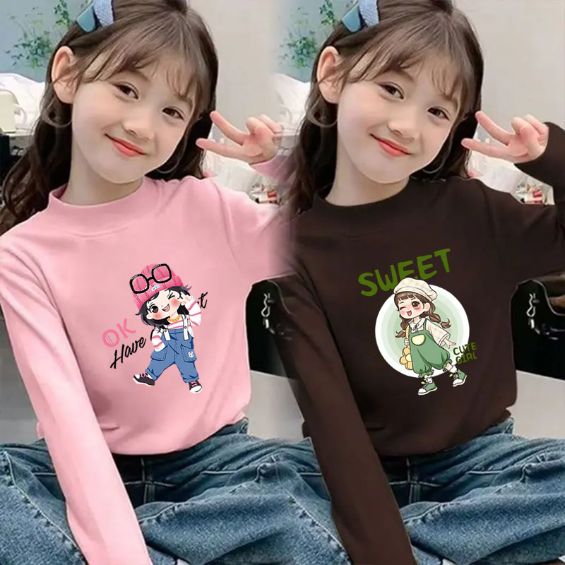 Girls' Half-High Collar Thermal Base Shirt, New Autumn and Winter Style for Children, Trendy Thickened Top, Casual Clothing