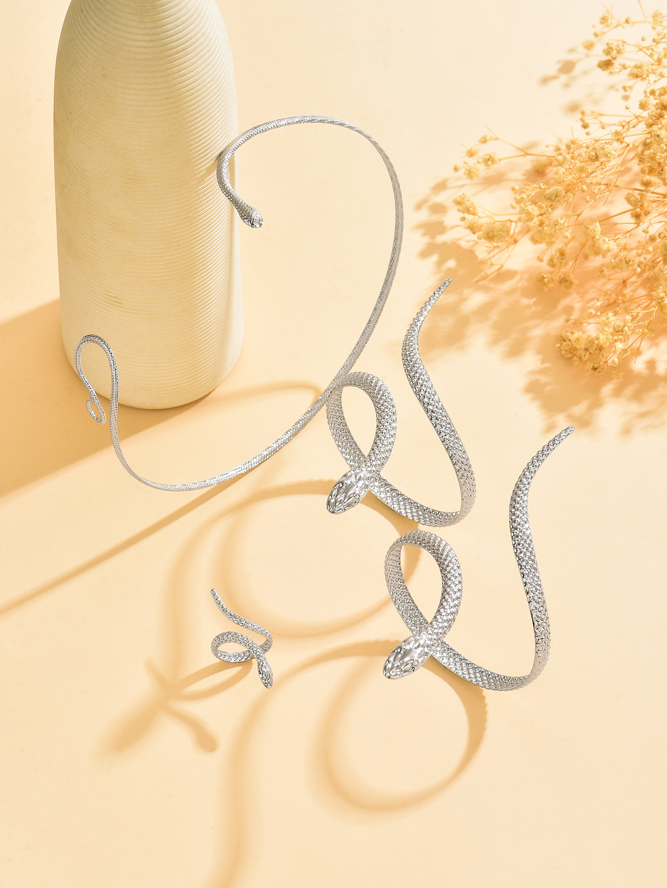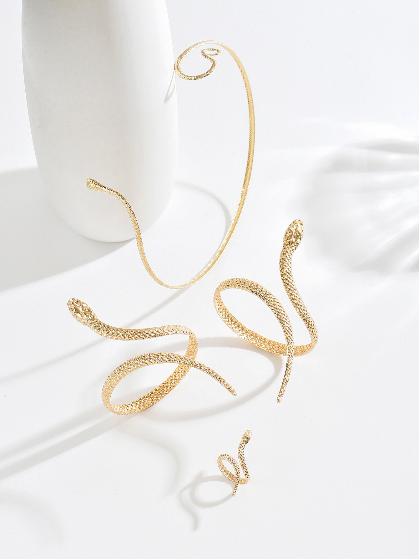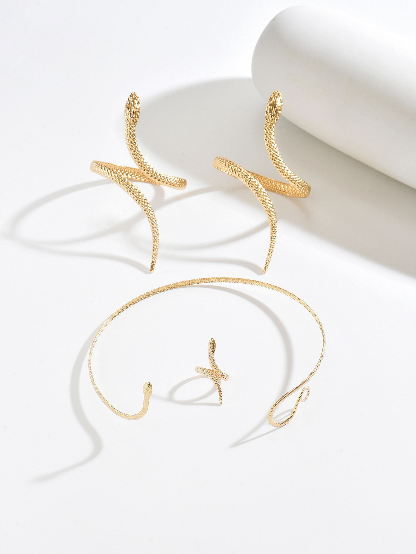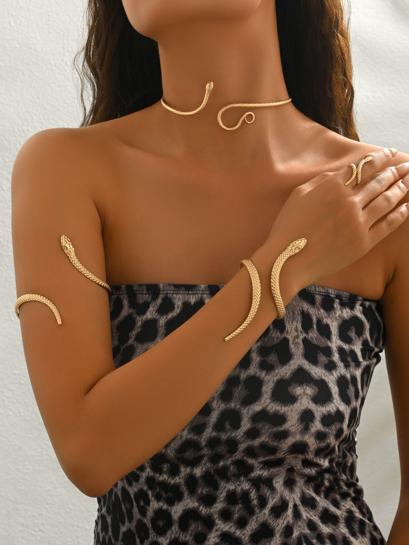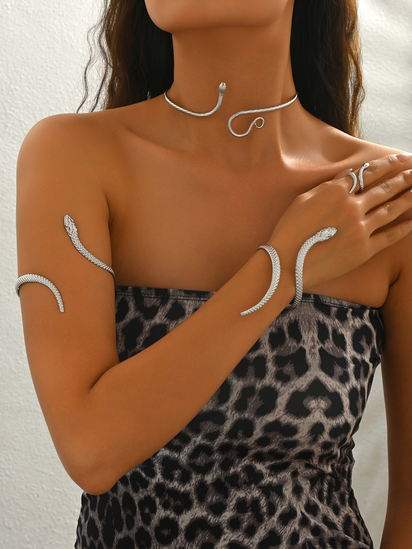 Temu Cross-Border Hot Sale Retro Exaggerated High-End Metal Snake Open Arm Ring Necklace Ring Jewelry Set