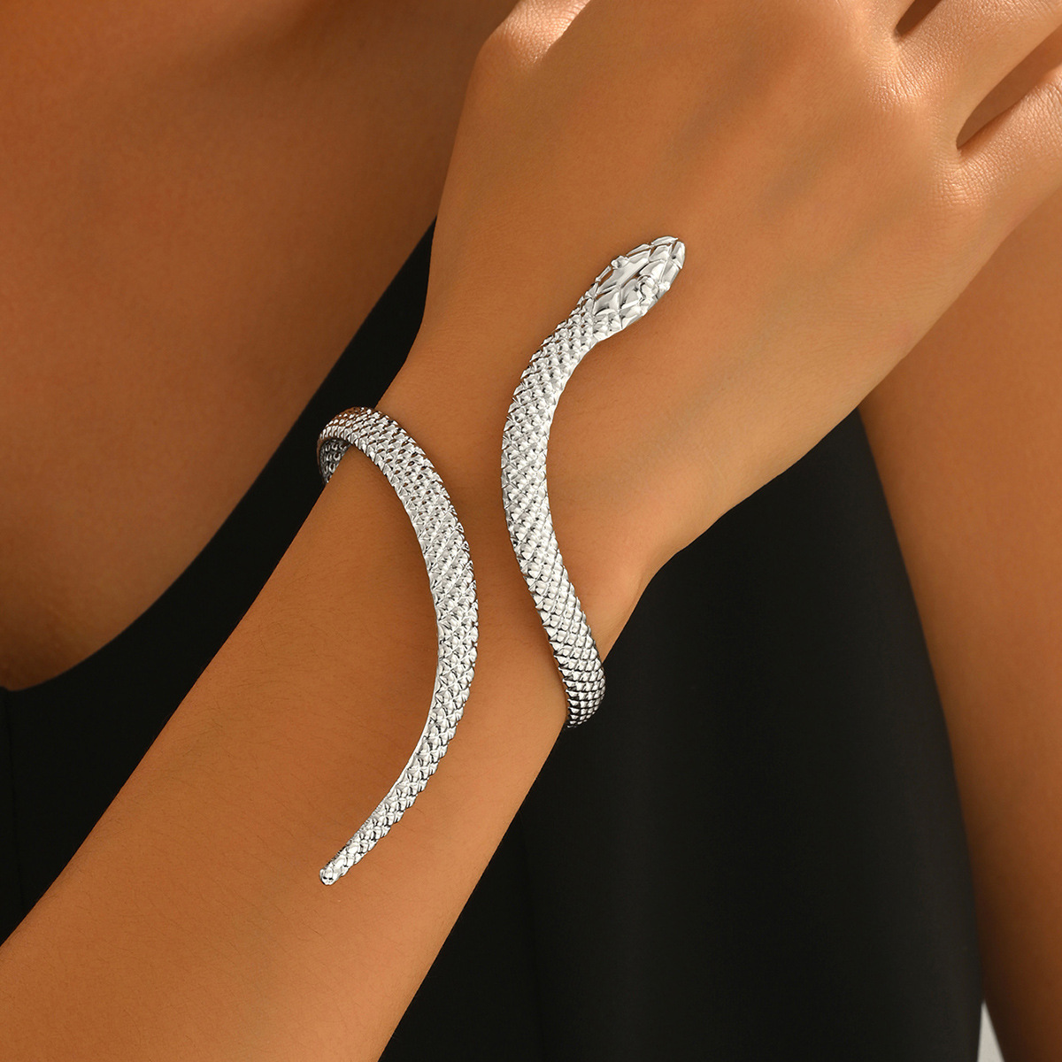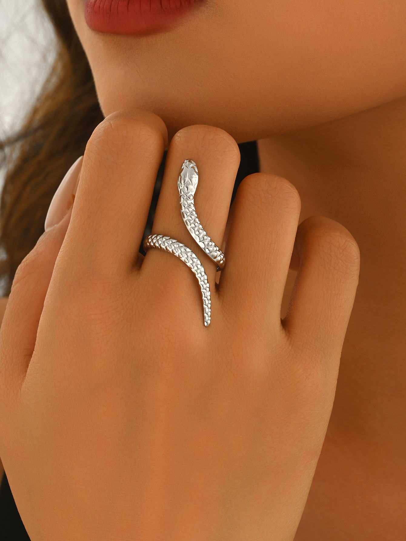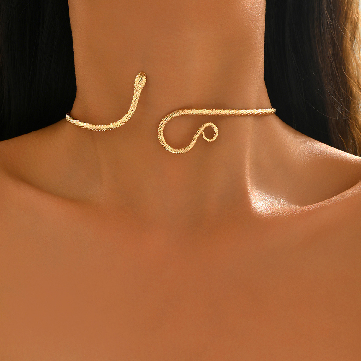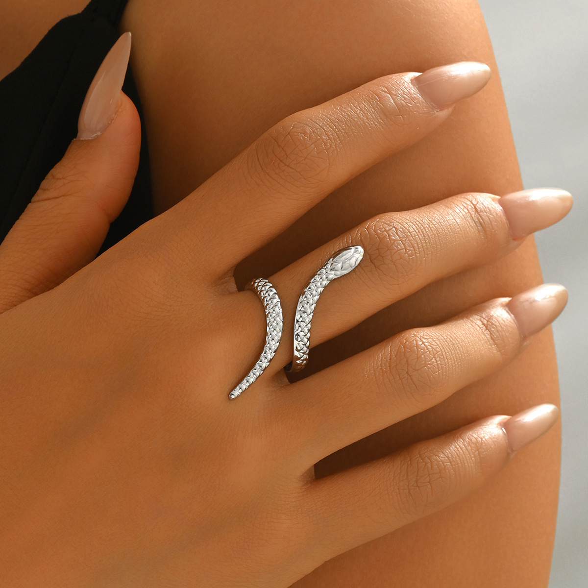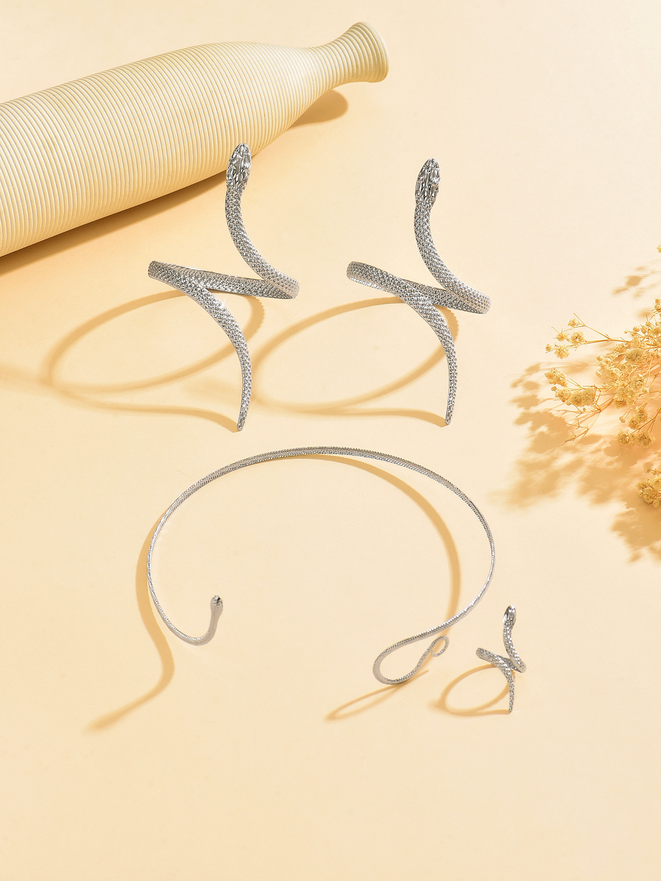 Temu Cross-Border Hot Sale Retro Exaggerated High-End Metal Snake Open Arm Ring Necklace Ring Jewelry Set