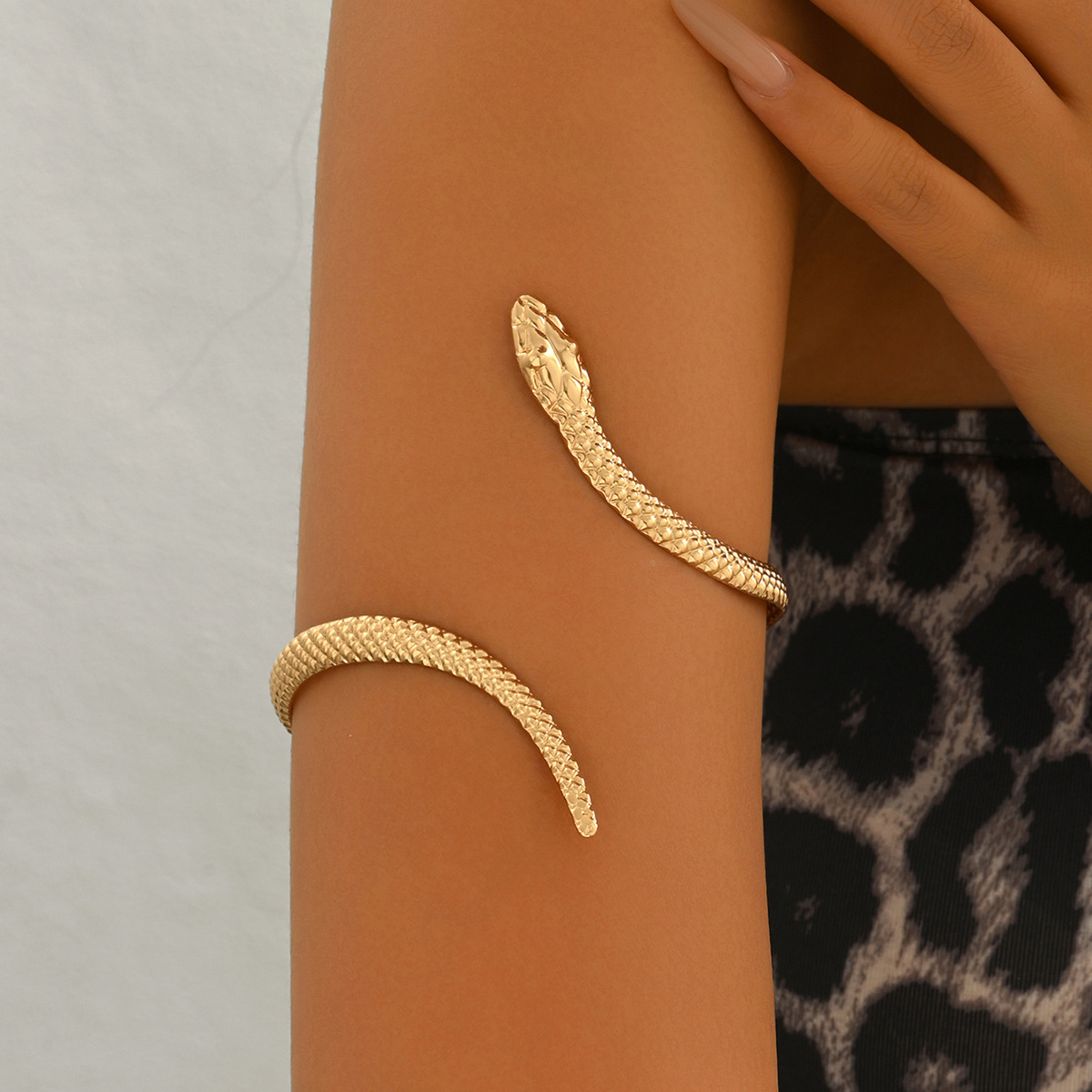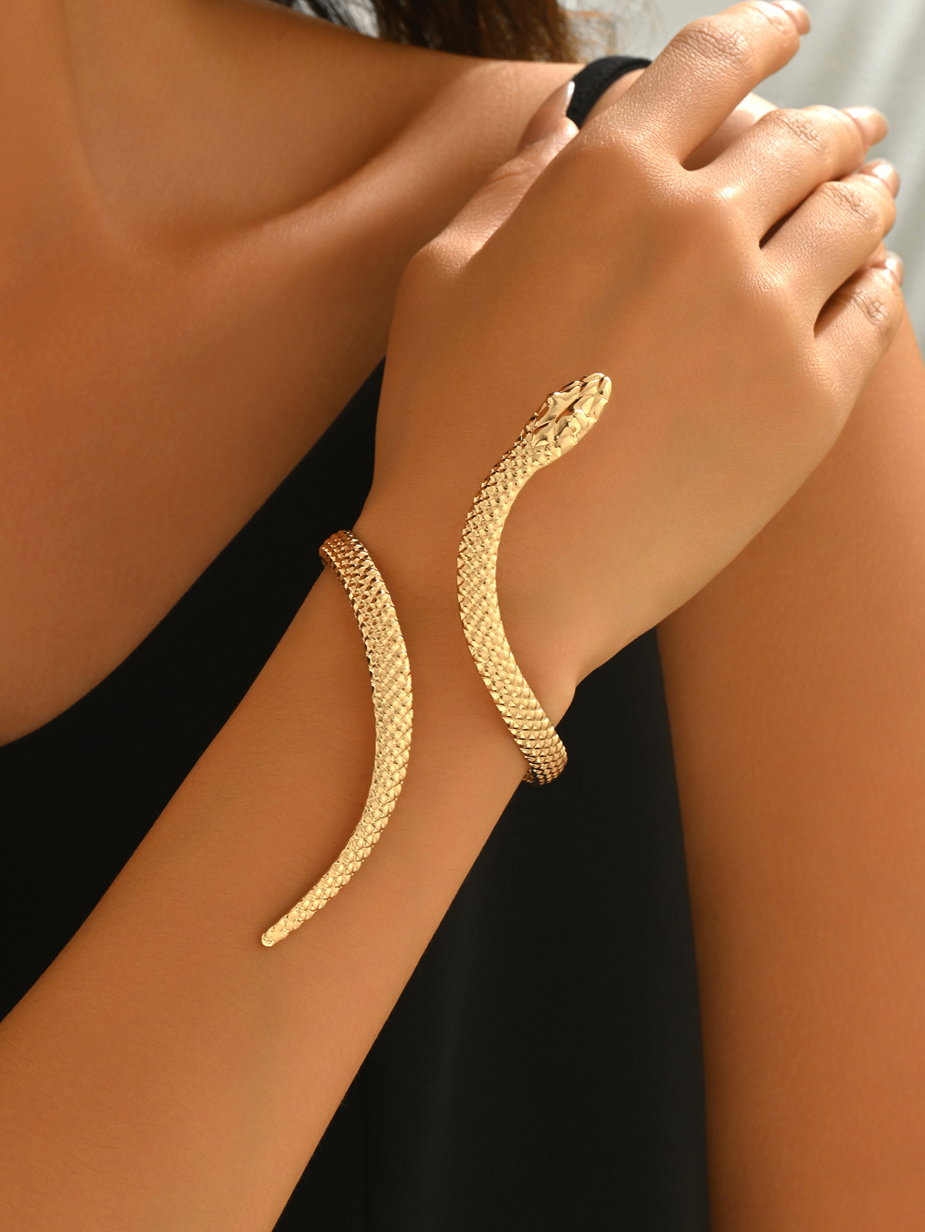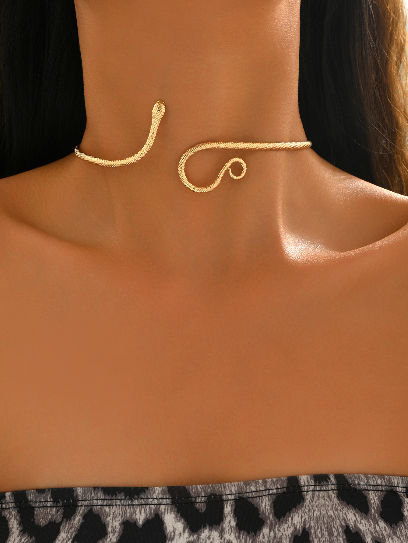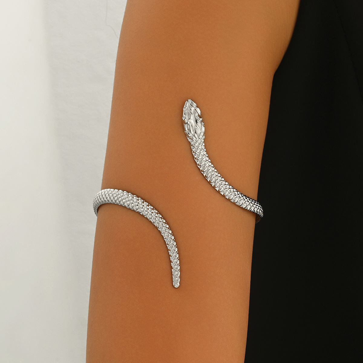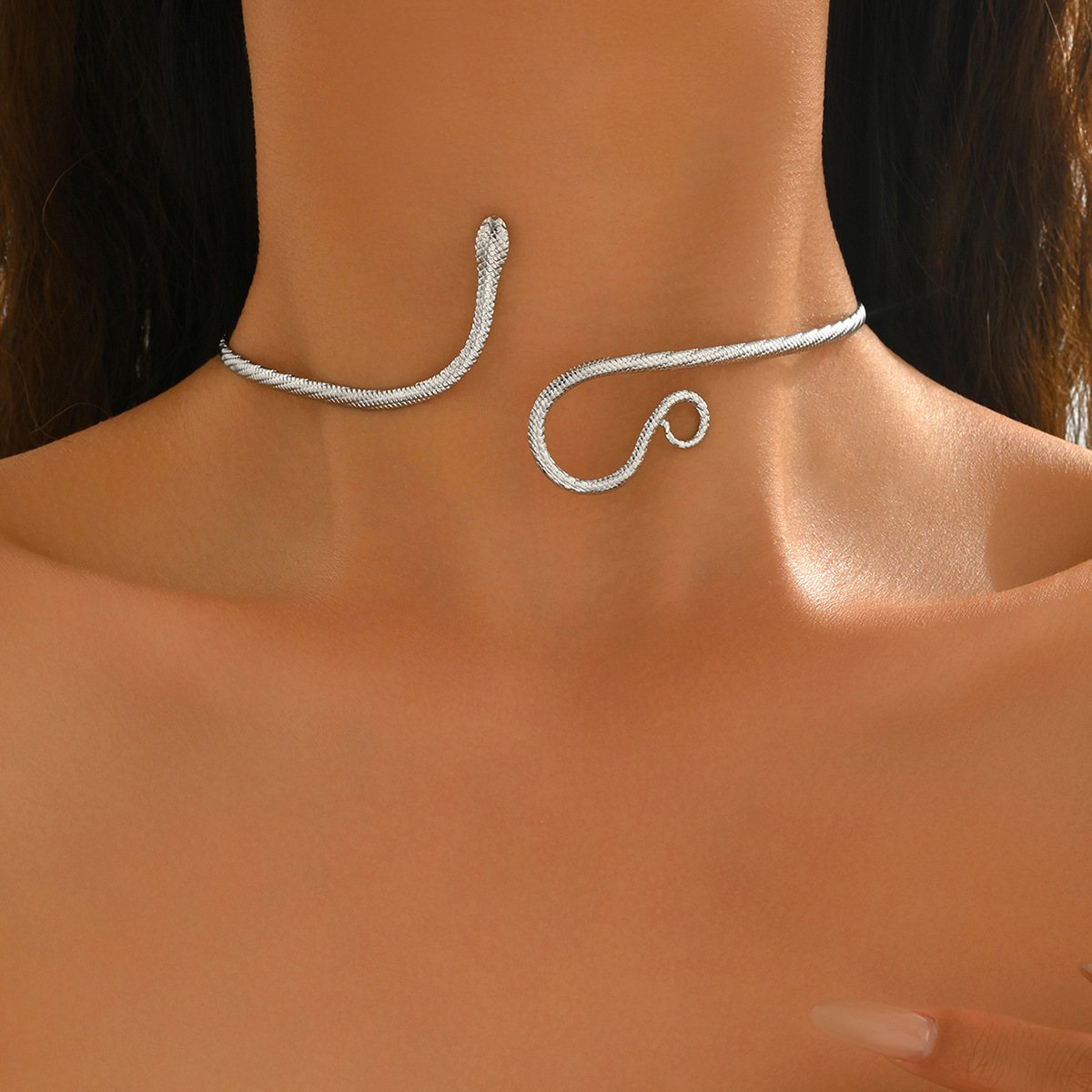 Temu Cross-Border Hot Sale Retro Exaggerated High-End Metal Snake Open Arm Ring Necklace Ring Jewelry Set