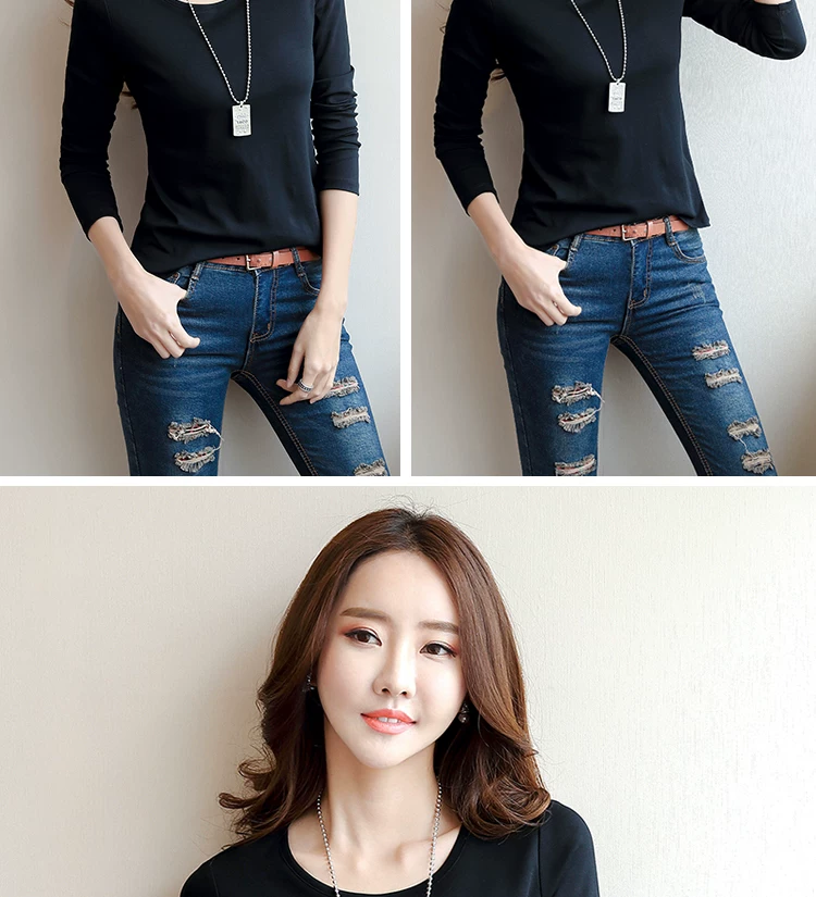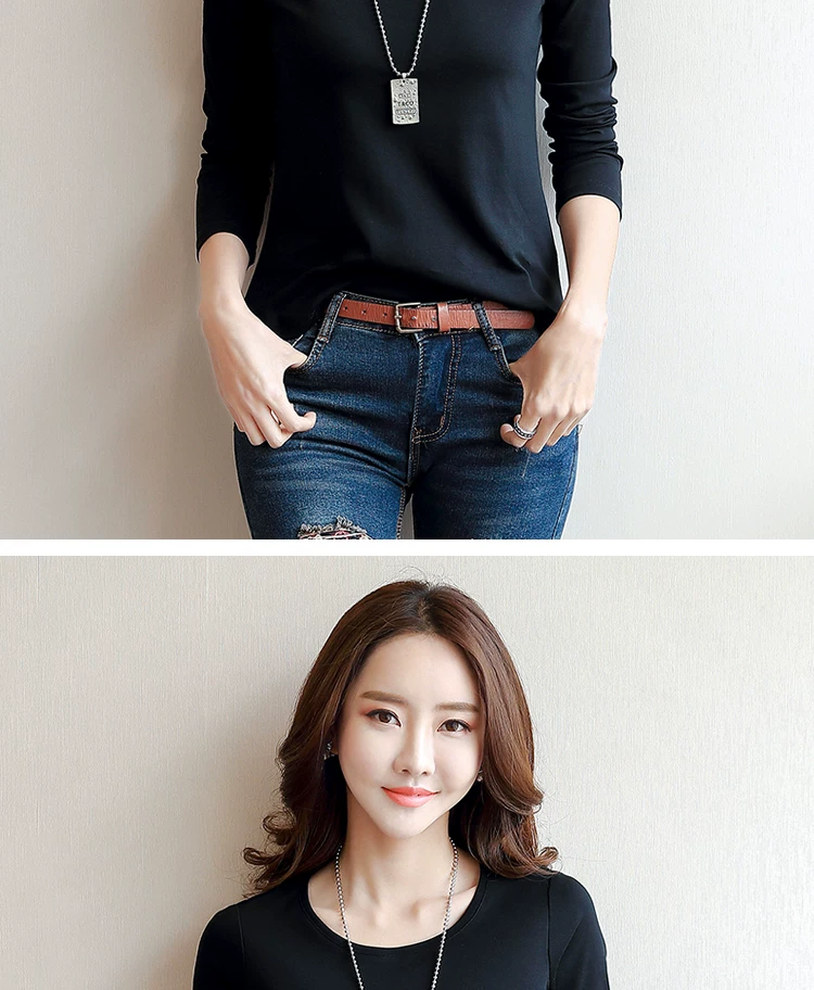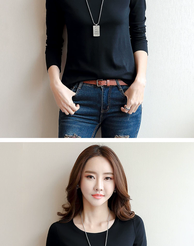 Explosions solid color round neck V-neck long sleeve T-shirt female milk silk student bottoming shirt women's shirt factory wholesale