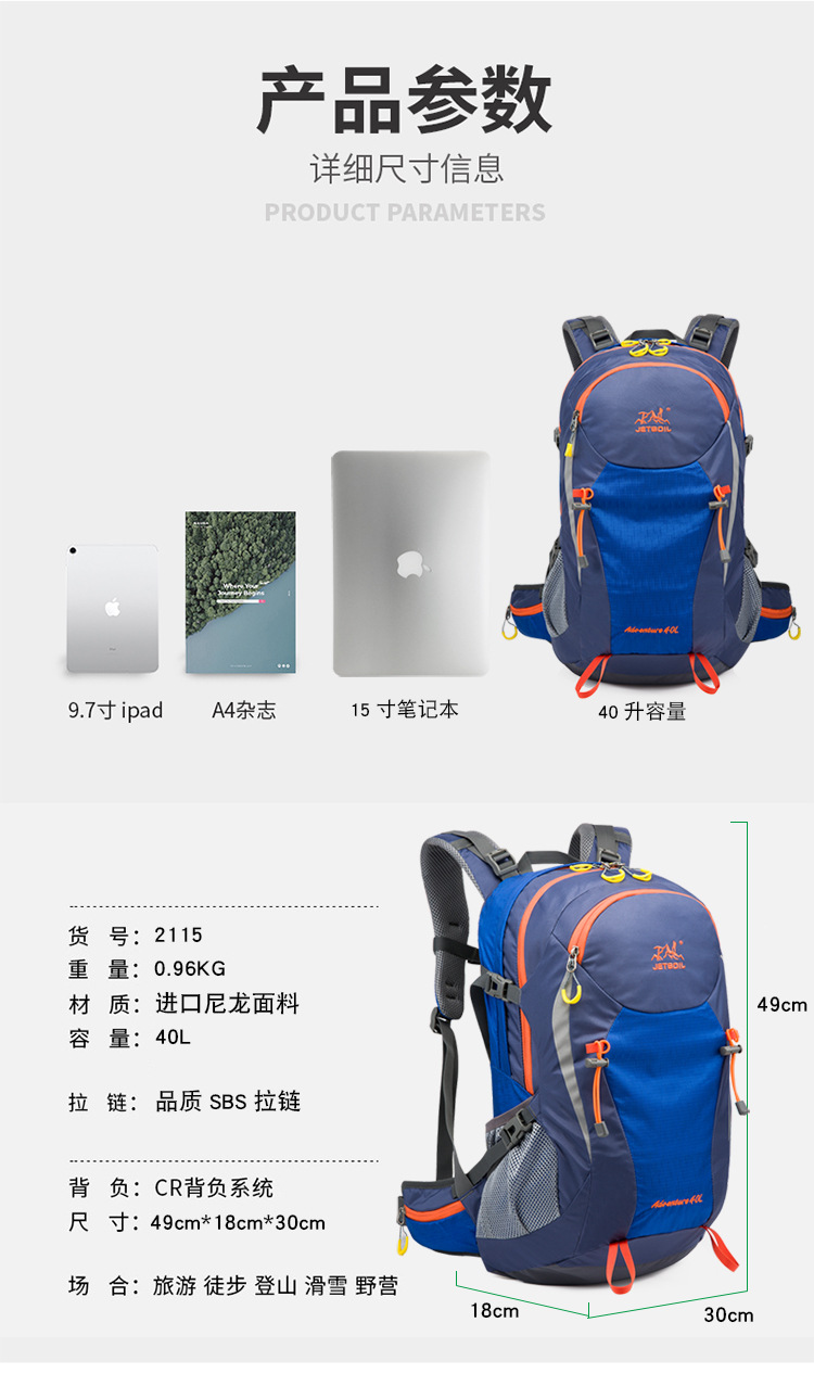 | Item No. | 2115# mountaineering bag | Capacity | 36-55L |