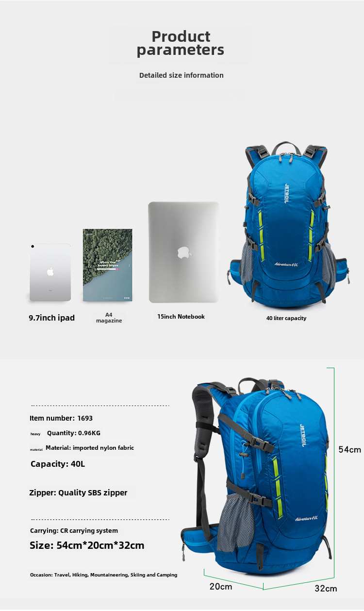 | Brand | Jebot. | Model | 1693# mountaineering bag |