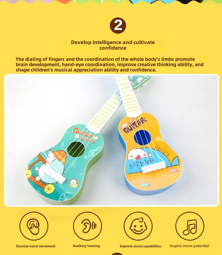 - Educational Toy: This mini ukulele toy is not just a fun instrument but also an educational tool, fostering children's grip, interaction, auditory, and parental communication skills.