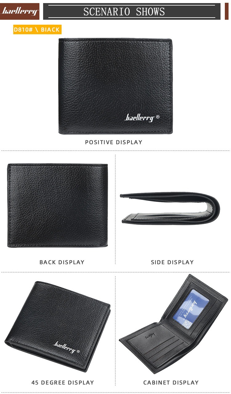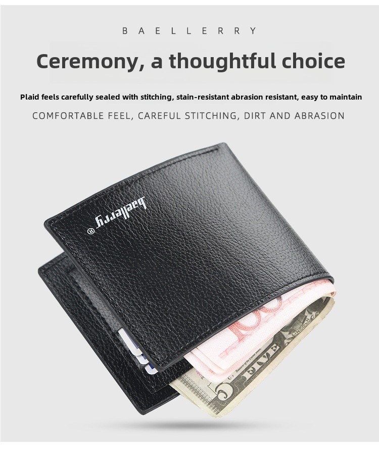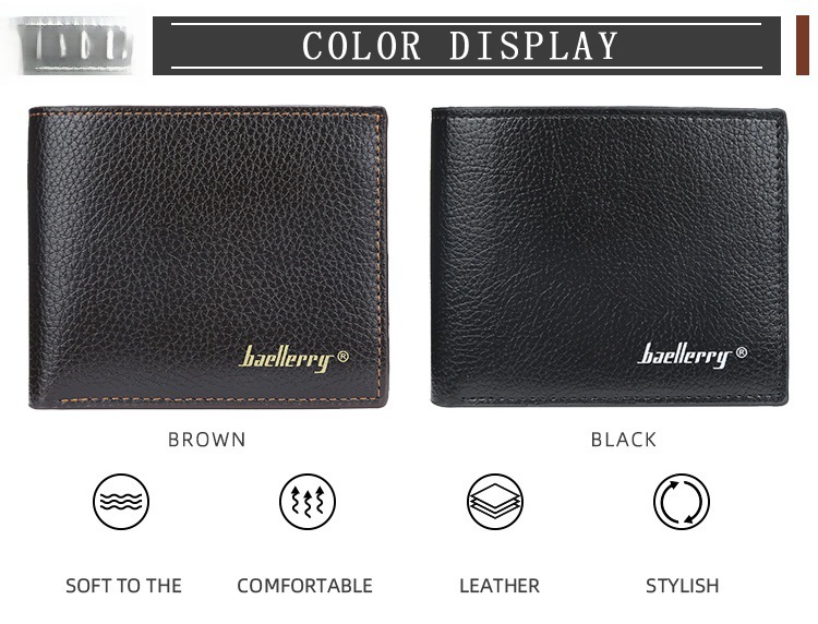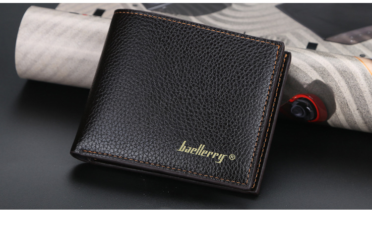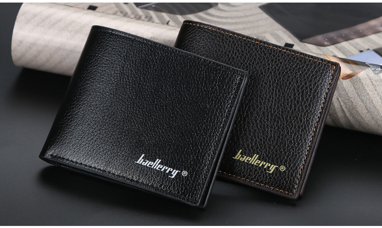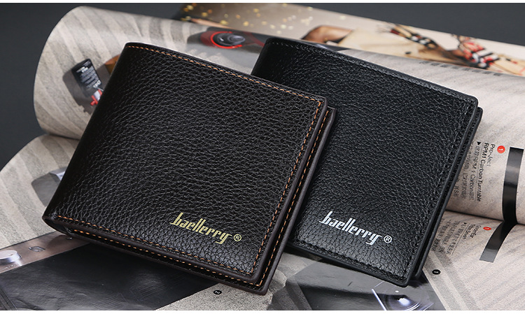 Men's Wallet Short baellerry Korean-style Litchi Pattern Open Wallet Simple Thin Soft Leather Ticket Holder Explosions