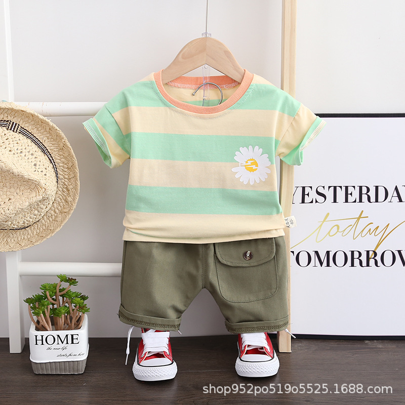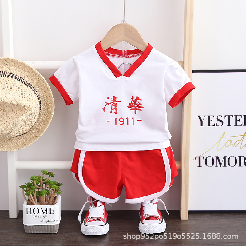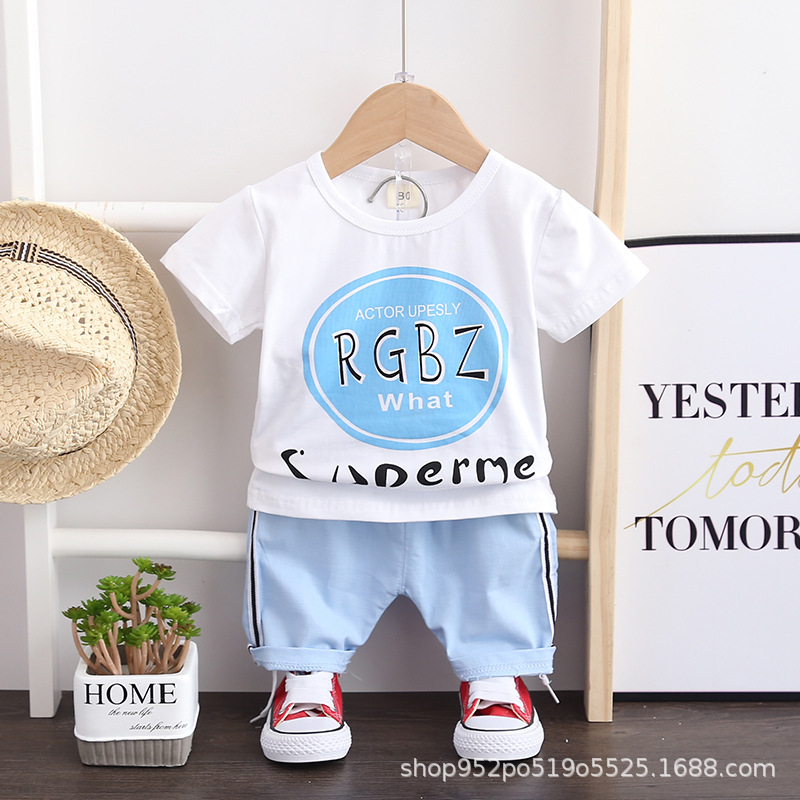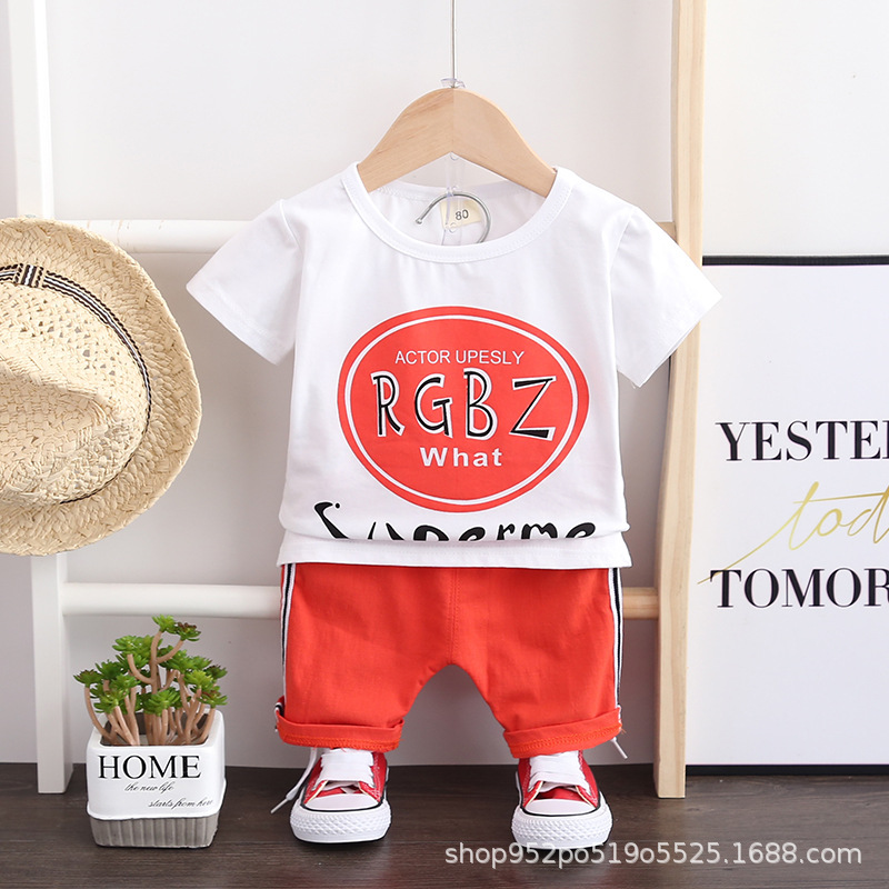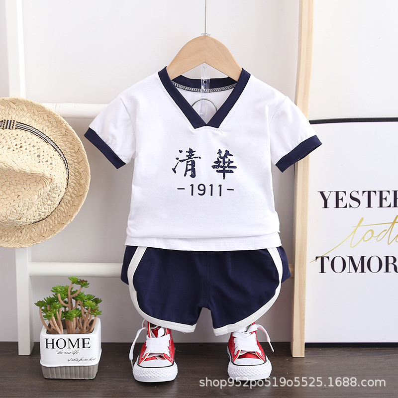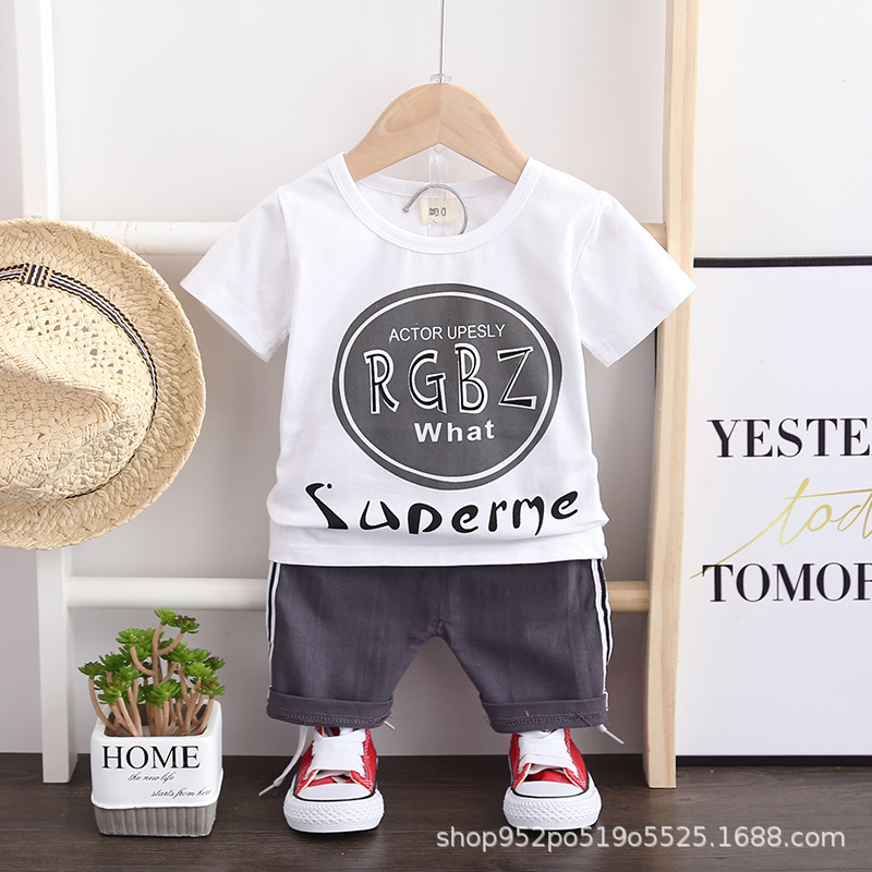 Boys Summer Suit Short-Sleeved 2024 New Style Summer Clothes Baby Two-Piece Set Kidsren's Shorts Trendy