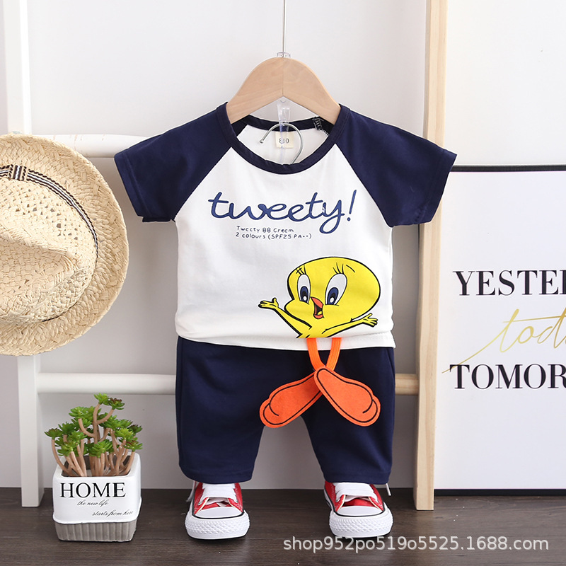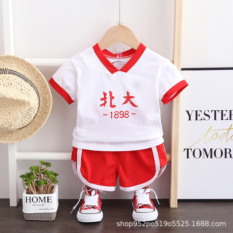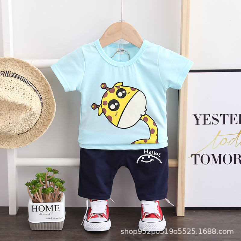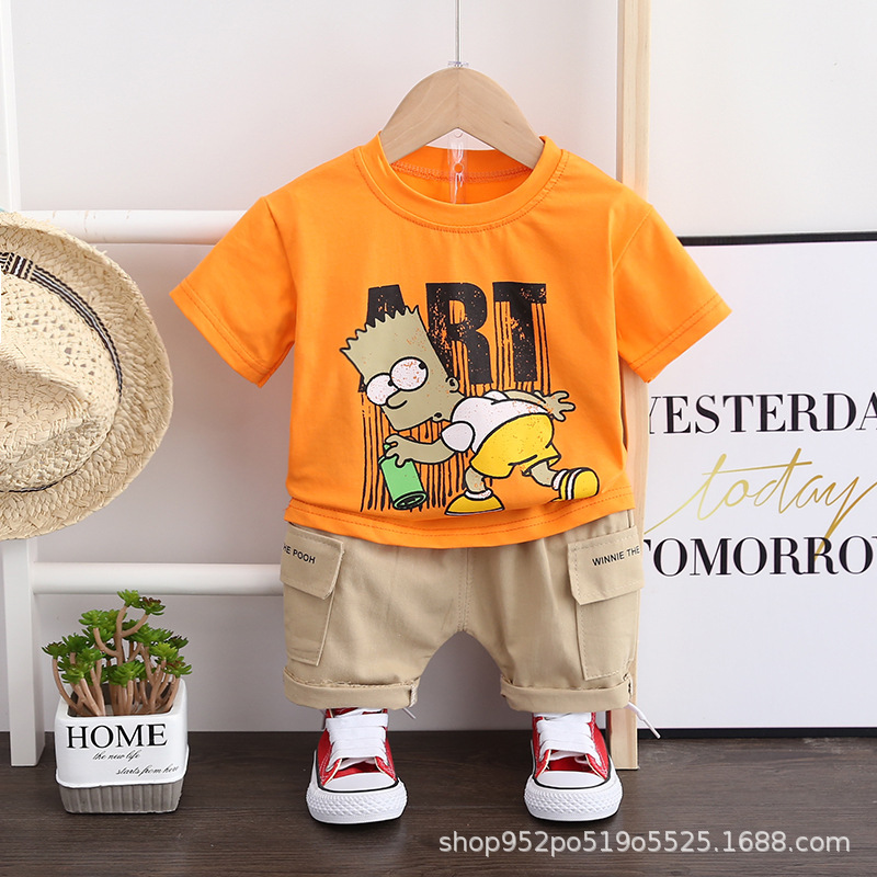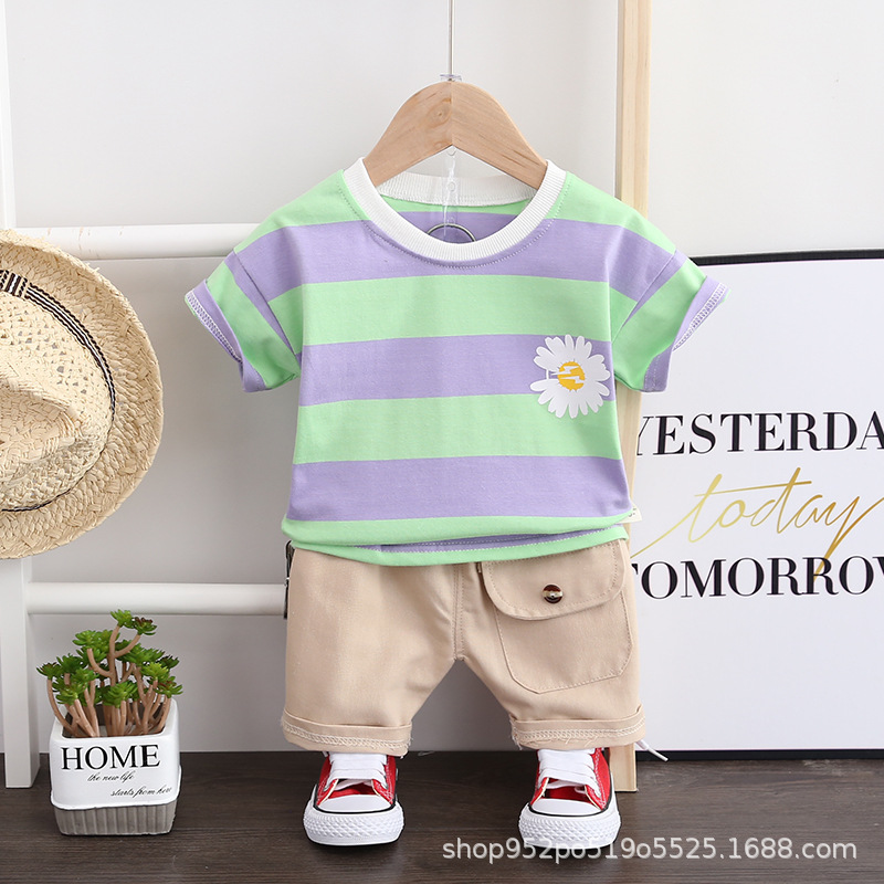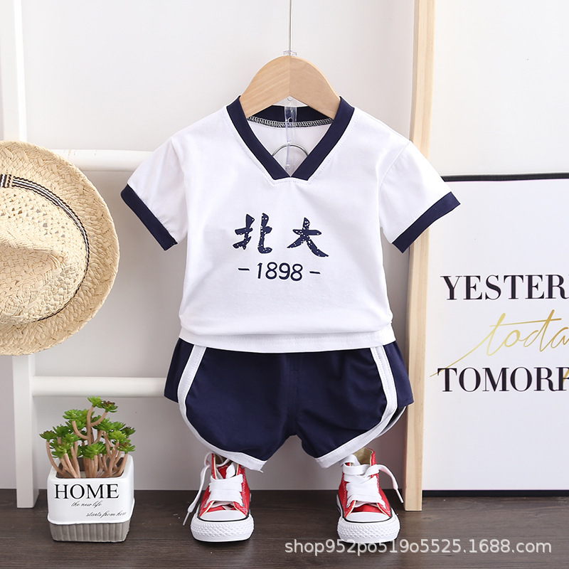 Boys Summer Suit Short-Sleeved 2024 New Style Summer Clothes Baby Two-Piece Set Kidsren's Shorts Trendy
