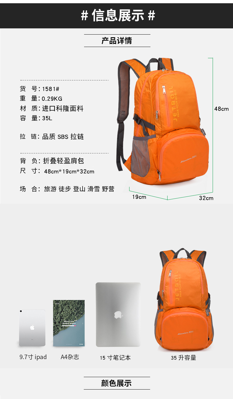 | Item No. | 1581# folding bag | Capacity | 20-35L |
