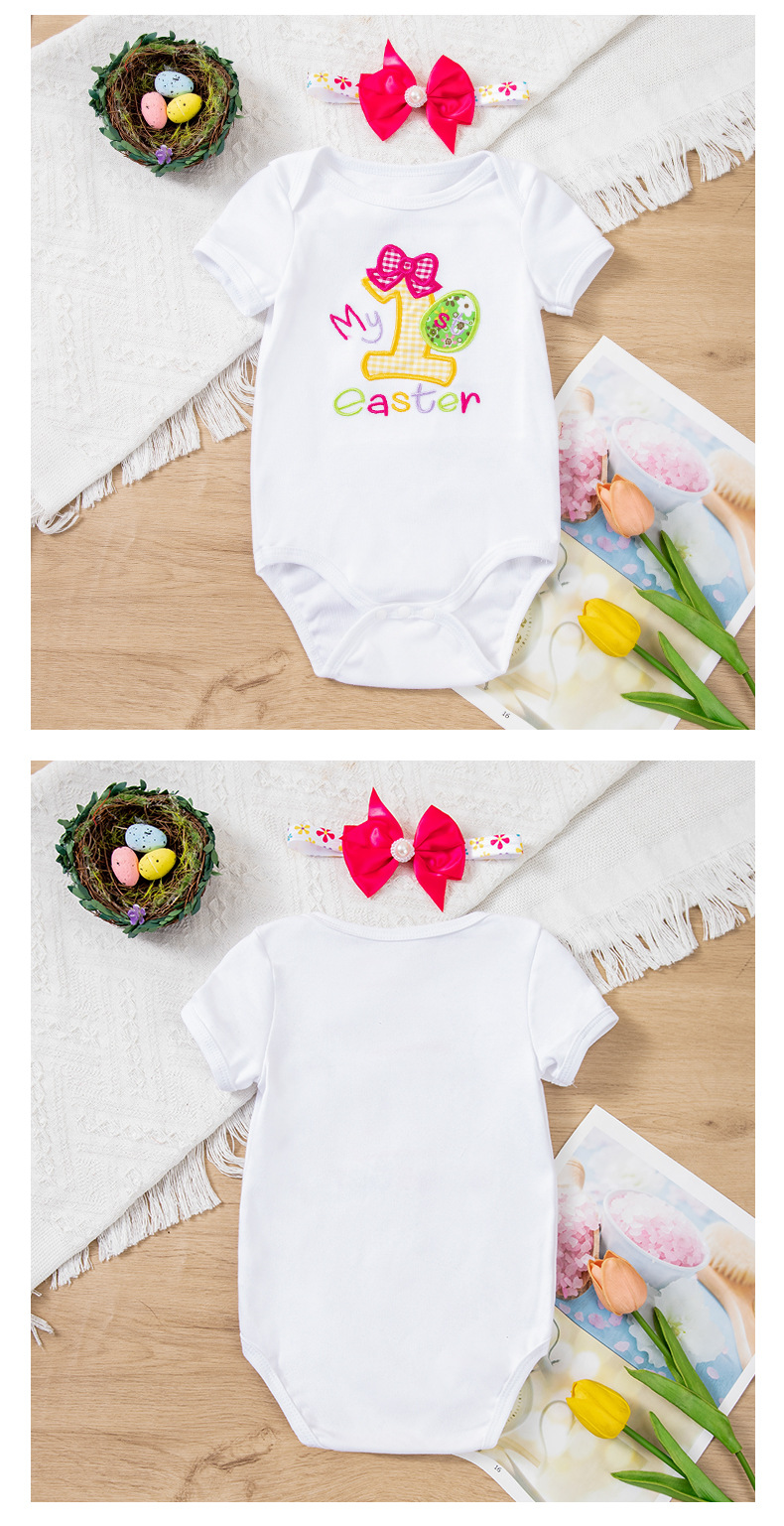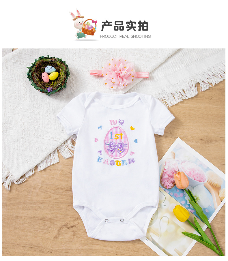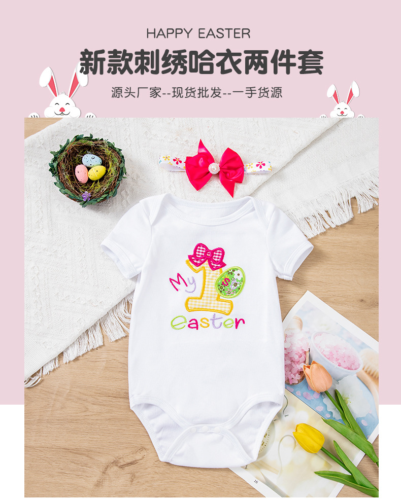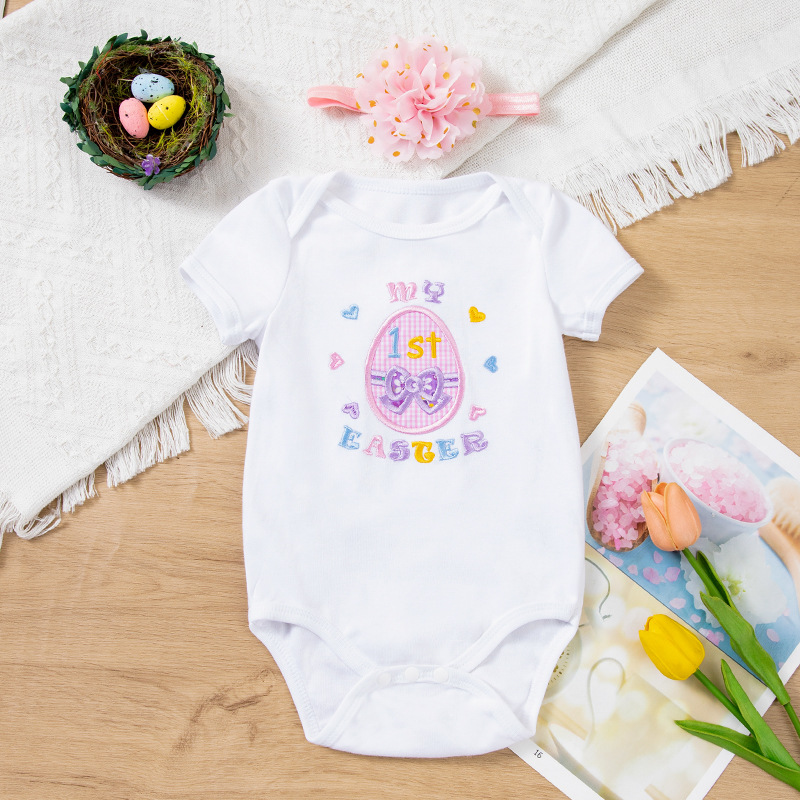 Cross-Border Children's Clothing Easter Baby Clothing Embroidered Egg Short-Sleeved Clothing and Hair Accessories 2-Piece Party Suit
