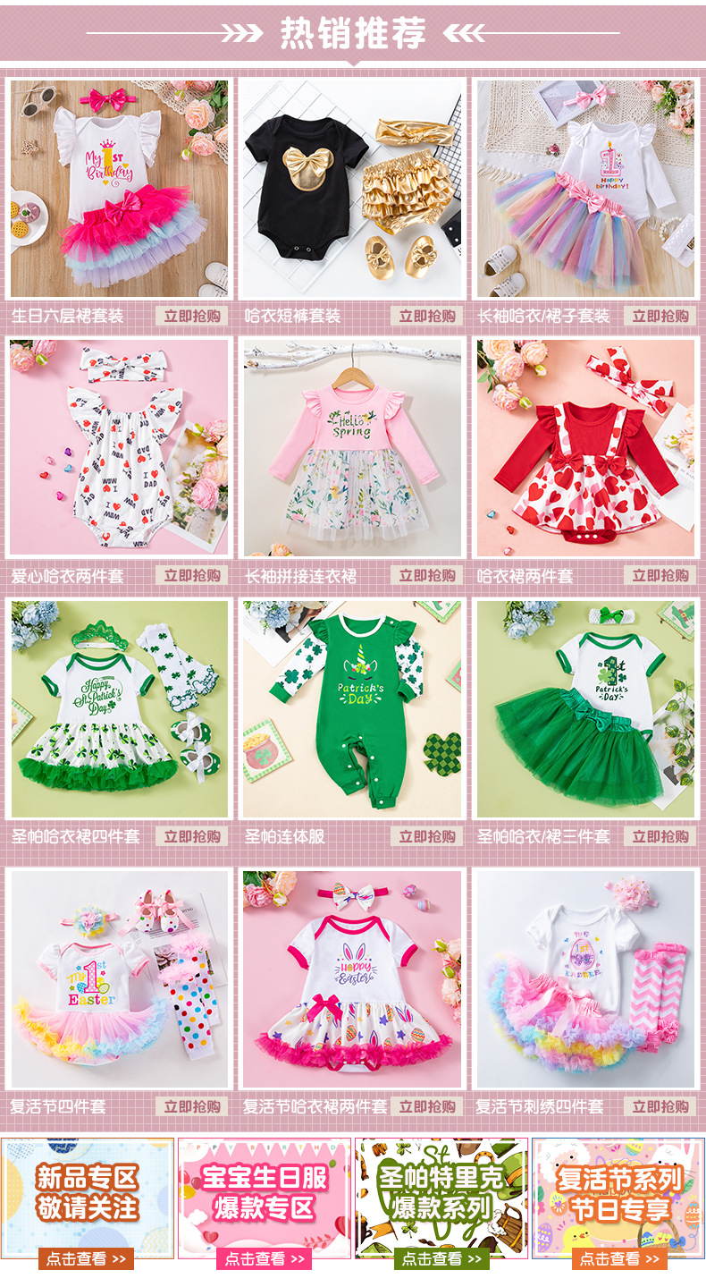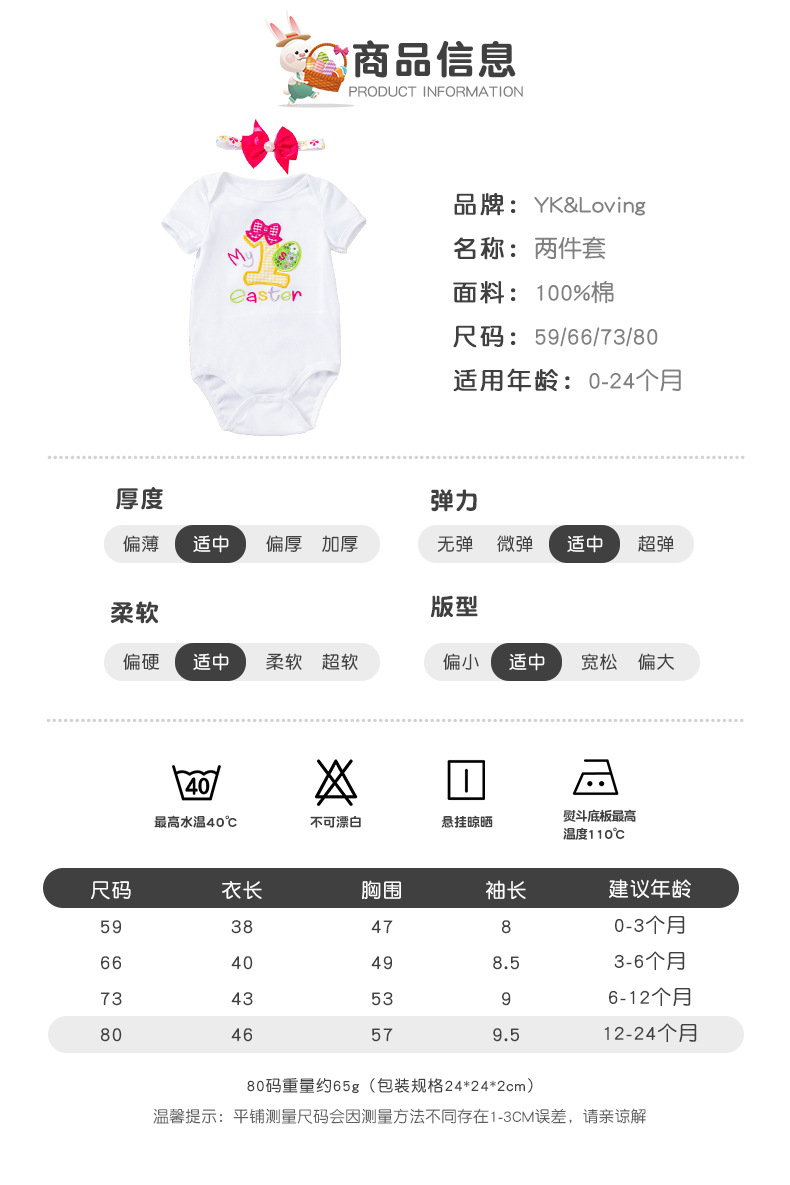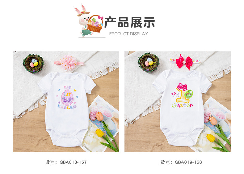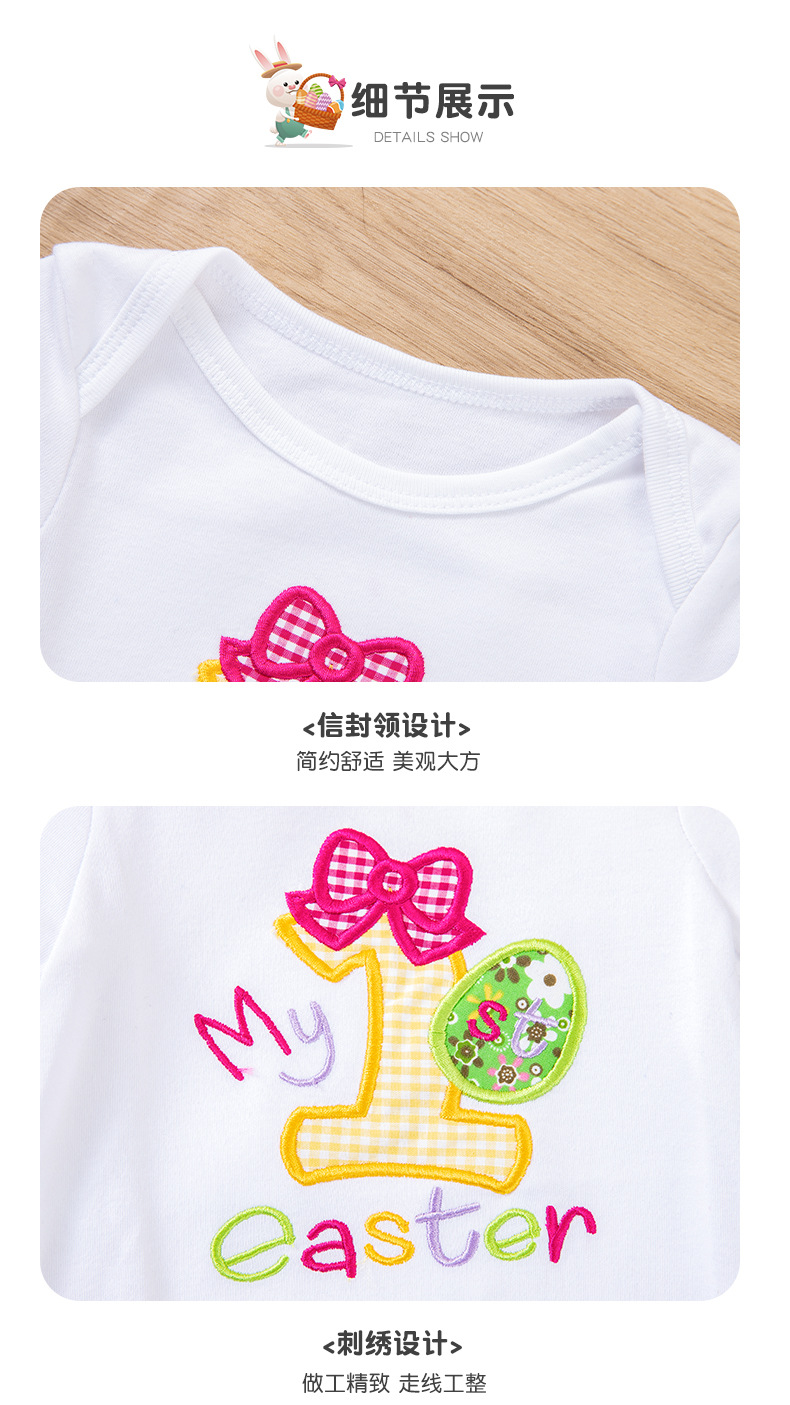 Cross-Border Children's Clothing Easter Baby Clothing Embroidered Egg Short-Sleeved Clothing and Hair Accessories 2-Piece Party Suit