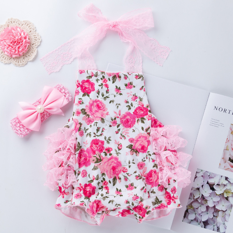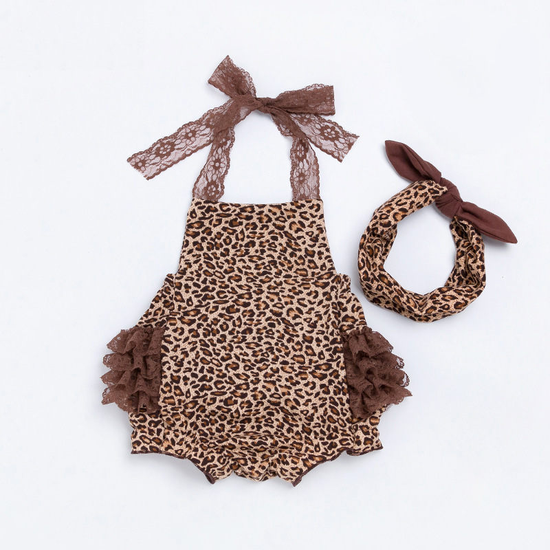 Cross-border children's clothing baby girl 0-2 years old leopard suspension belt bellyband cotton-padded jacket belly-protecting printed lace jumpsuit