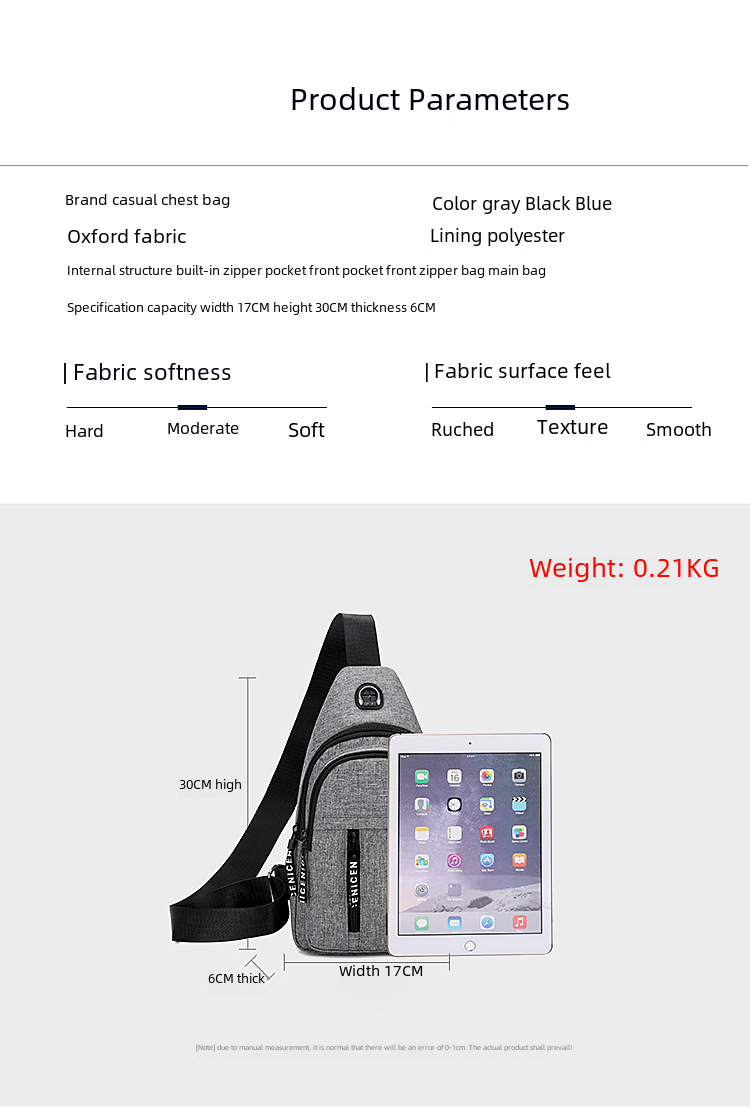 - High-Quality Material:Made from durable Oxford cloth, this chest bag is not only fashionable but also built to last, ensuring long-term use.