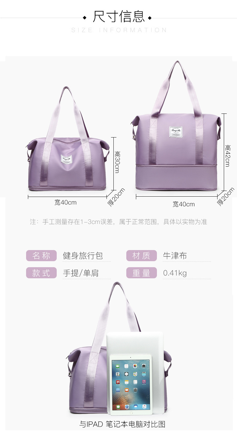 Women's Large-Capacity Short-Distance Travel Bag, Lightweight Handbag, Boarding Luggage Bag, Sports Yoga Fitness Bag