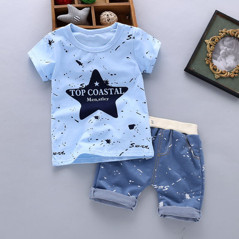 Summer Suit 2024 New Style Thin Short-Sleeved Boy Summer Style Children's Sports and Leisure Suit for Small and Medium-Sized Children