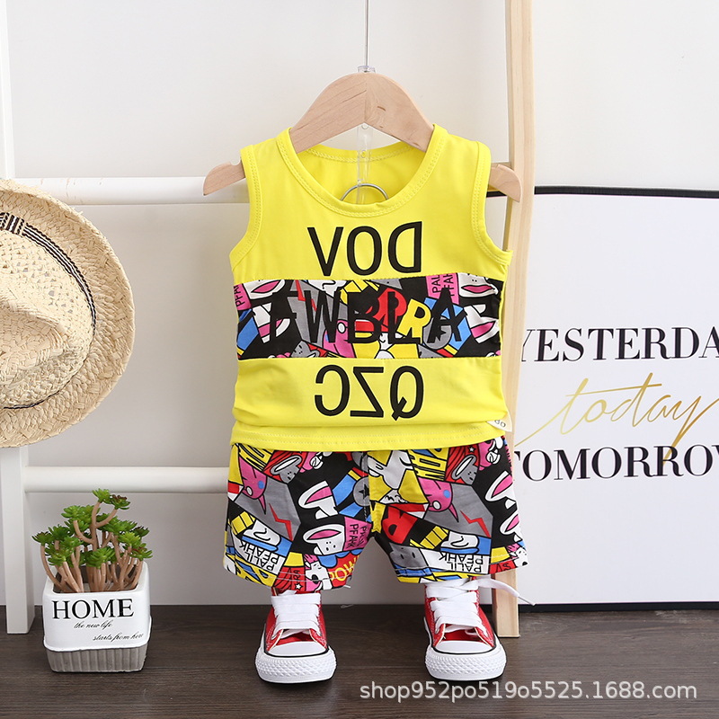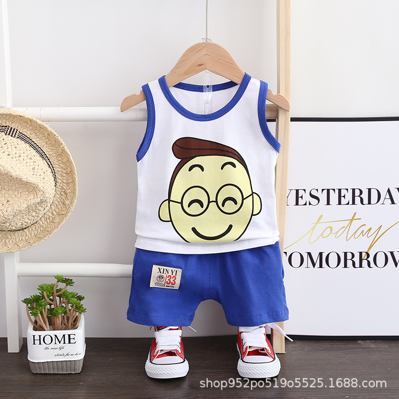 Children's Cartoon Clothing Short-sleeved Set Boys Summer Wear Girls Summer Thin Mesh Baby Vest Breathable Two-piece Set