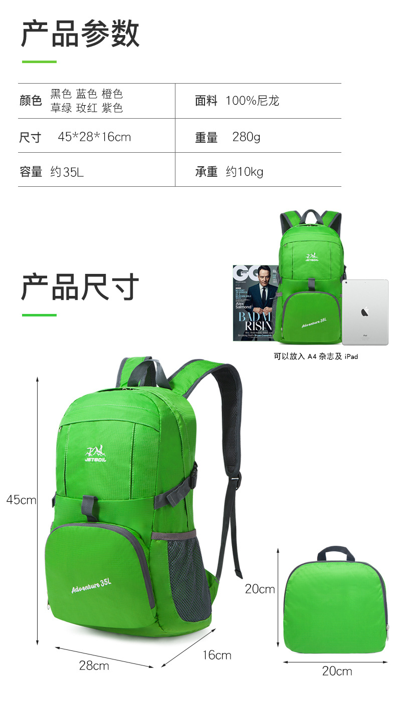 | Item No. | 815#(35L) folding backpack | Applicable gender | Neutral/Both men and women |