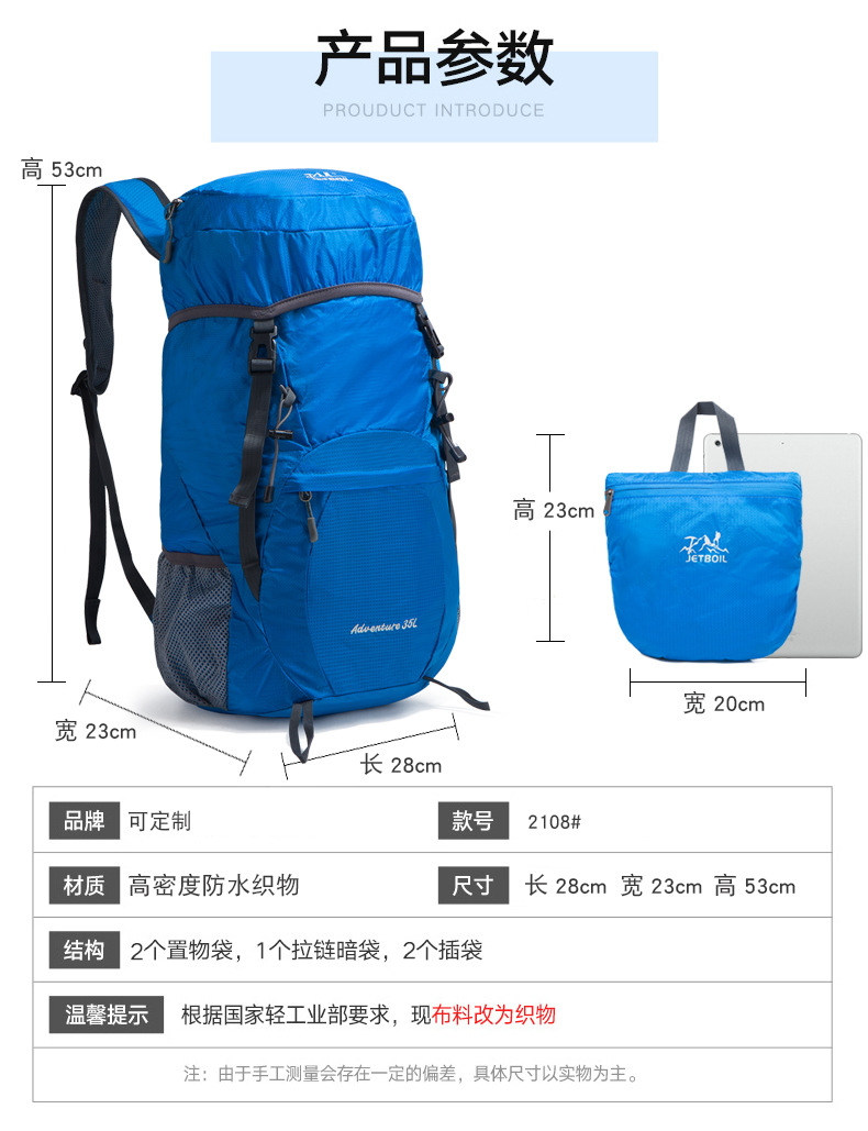 | Item No. | 2108#(35L) folding backpack | Brand | Jebot. |