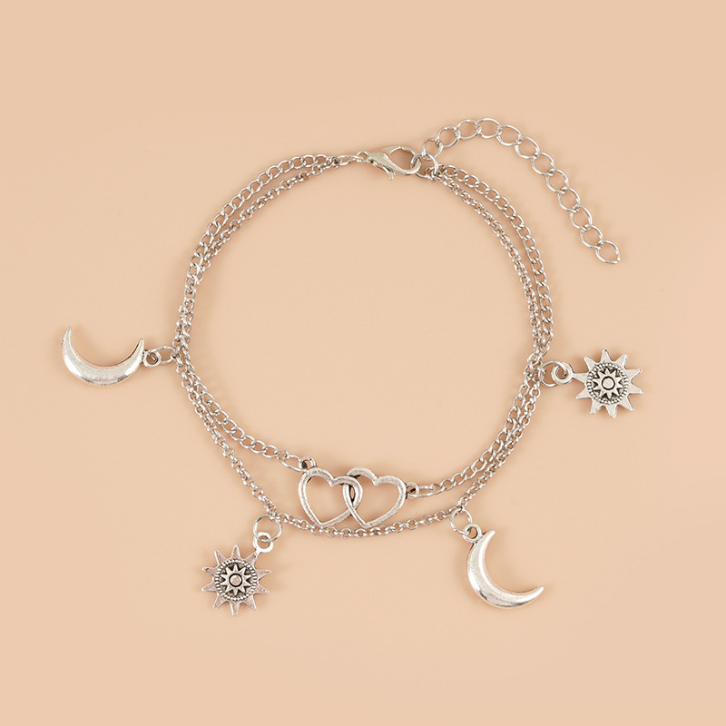 European and American Cross-border Explosions Anklet Love Anklet Personalized Double-layer Simple Love Beach Anklet Women's Anklet Accessories for Women