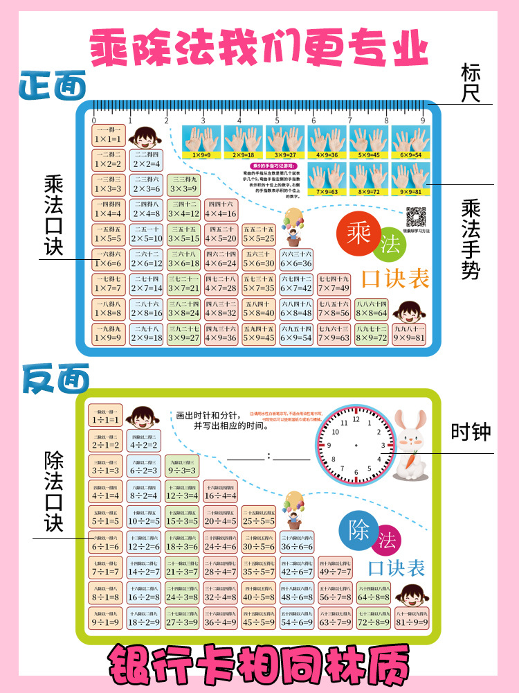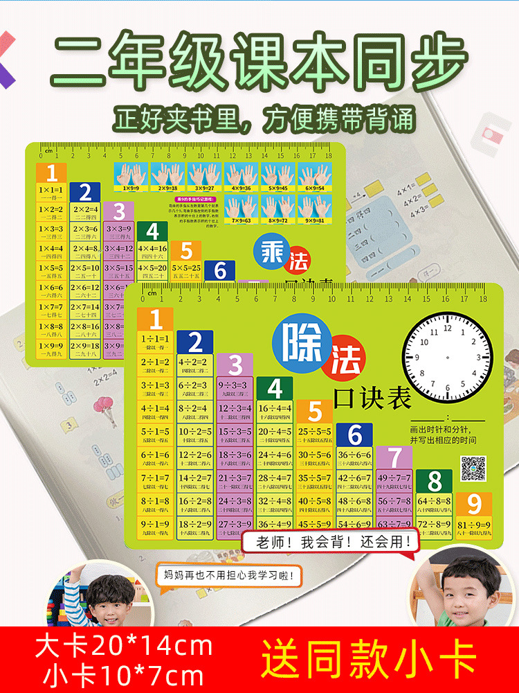 Ninth multiplication table 99 multiplication and division Formula clock card mathematics formula table second grade full Set Multiplication formula table
