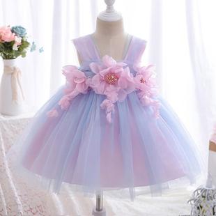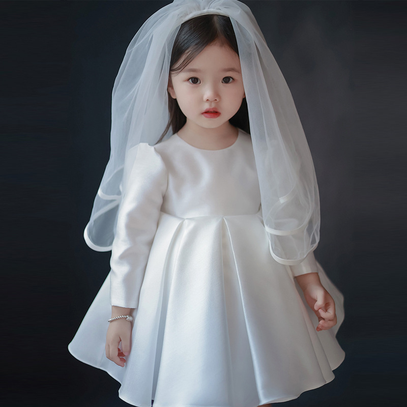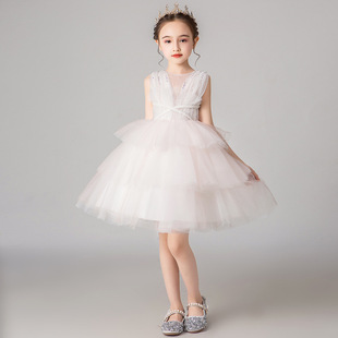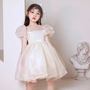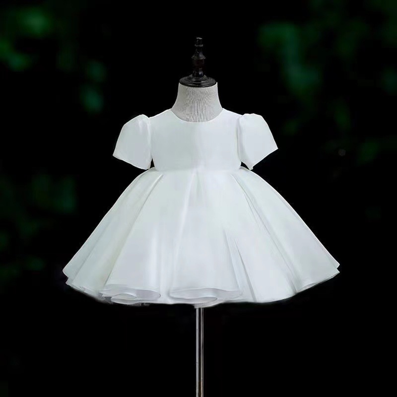 儿童礼服女宝宝周岁公主裙花童婚纱蓬蓬裙白色女童抓周连衣裙春季
