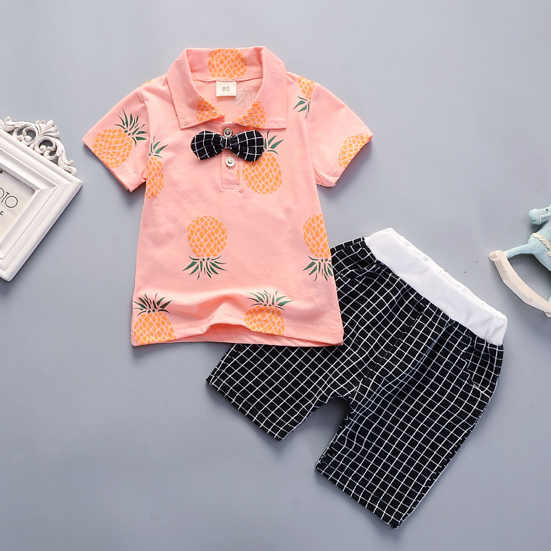 Boys' summer clothing suit handsome children's western style bow tie new boys' summer short sleeve children's lapel children's clothing fashion