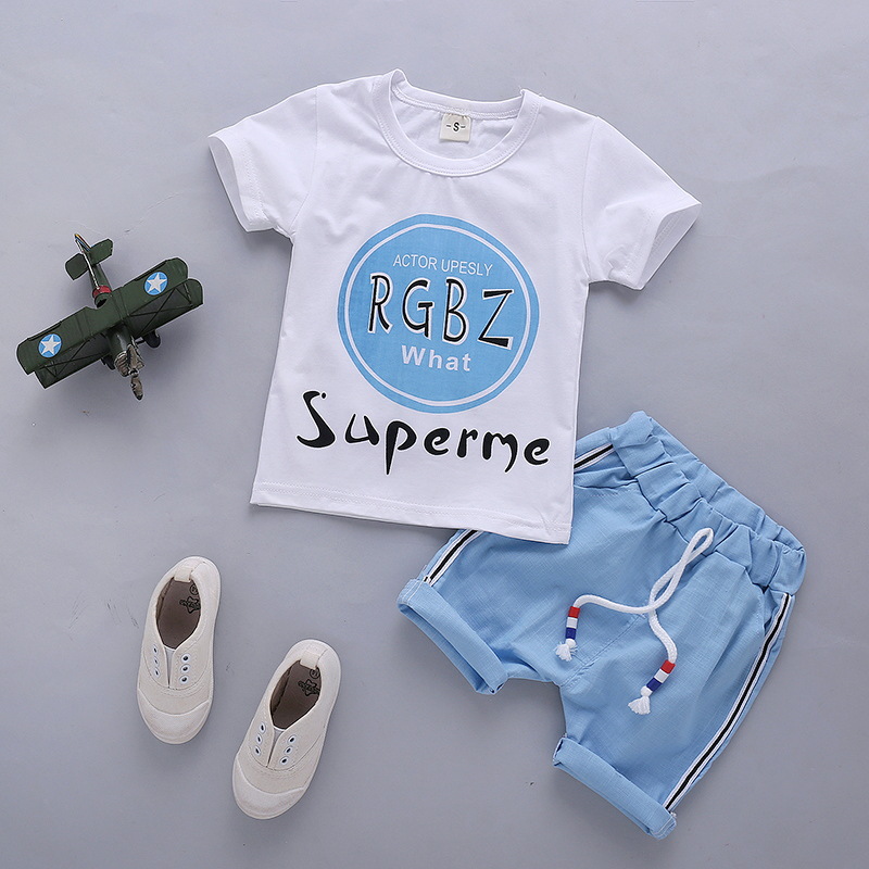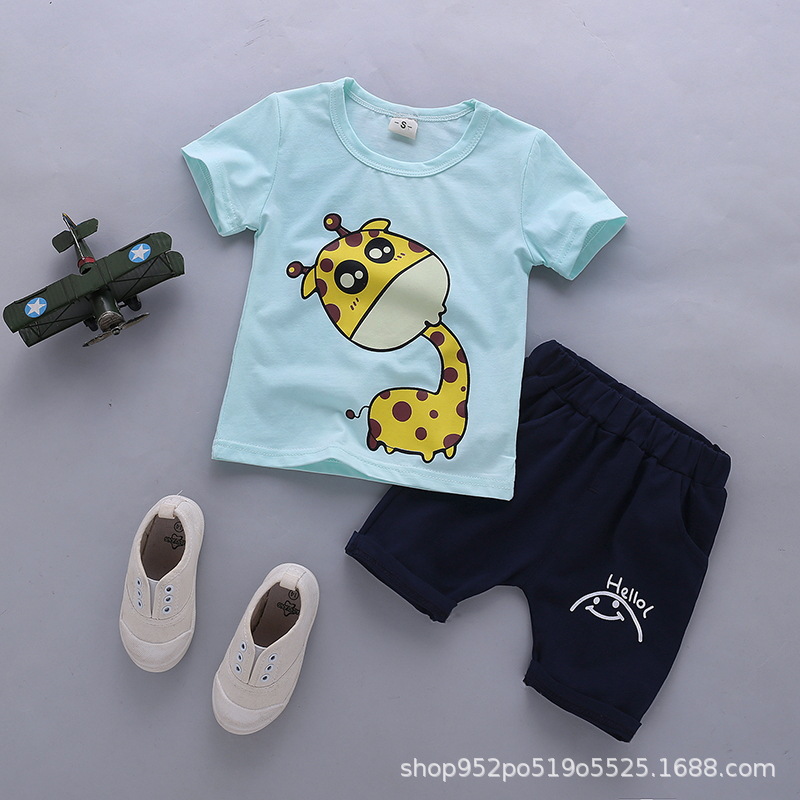 Boys' summer clothes suit 2022 new western style short-sleeved T-shirt children's summer children's clothing two-piece suit 1-2-3-4 years old fashion