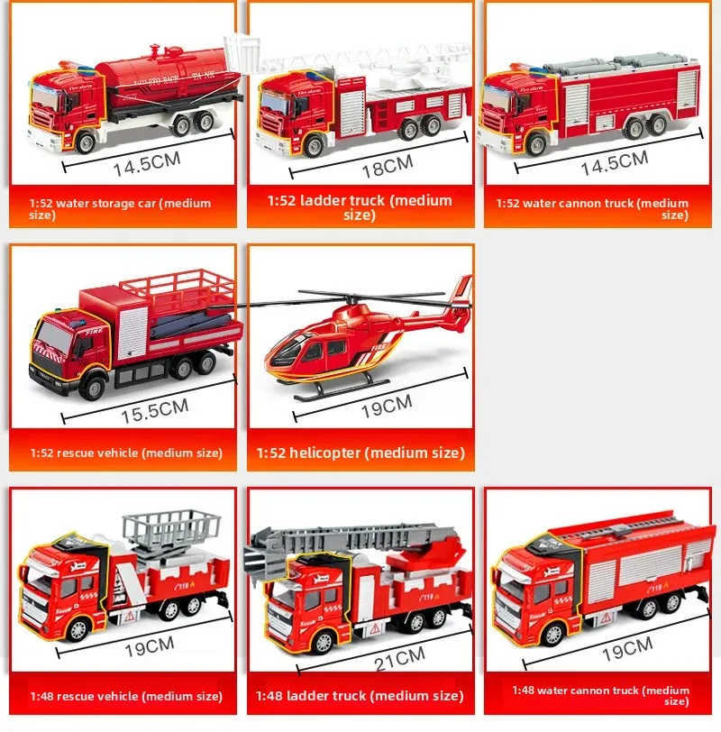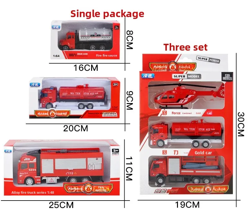 | Color | 1:52 firefighting six-pack (e-commerce box) | Color | 1:48 Fire truck three-pack |