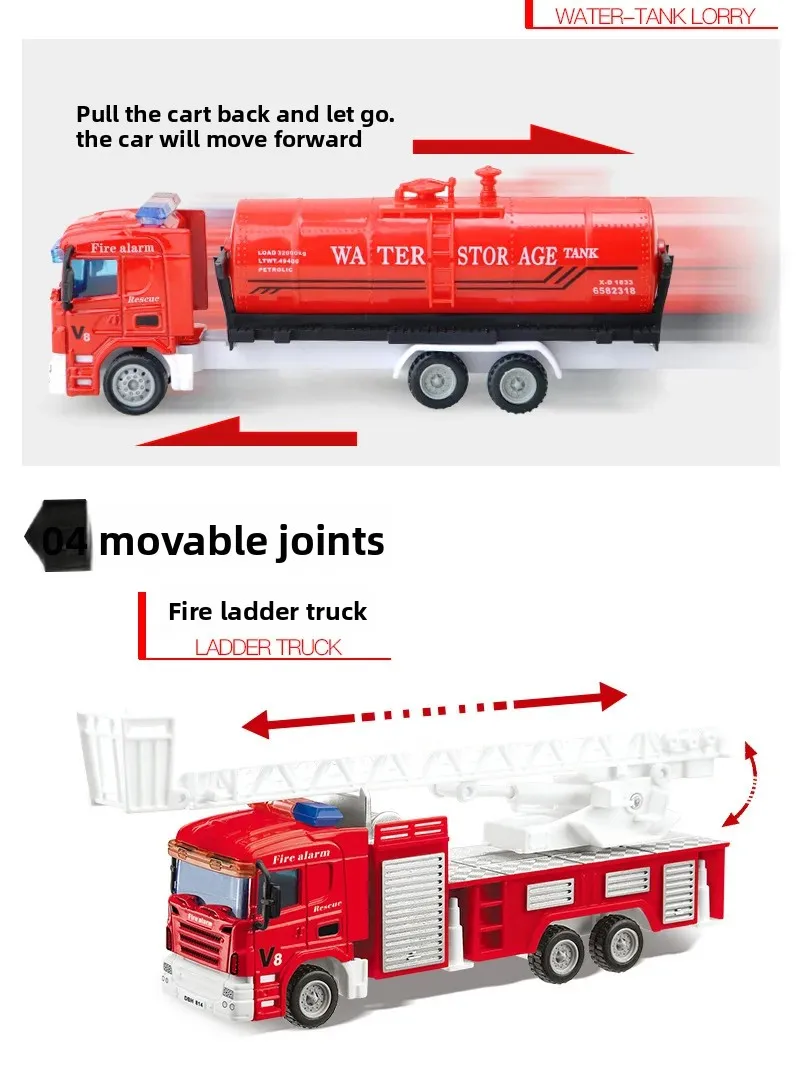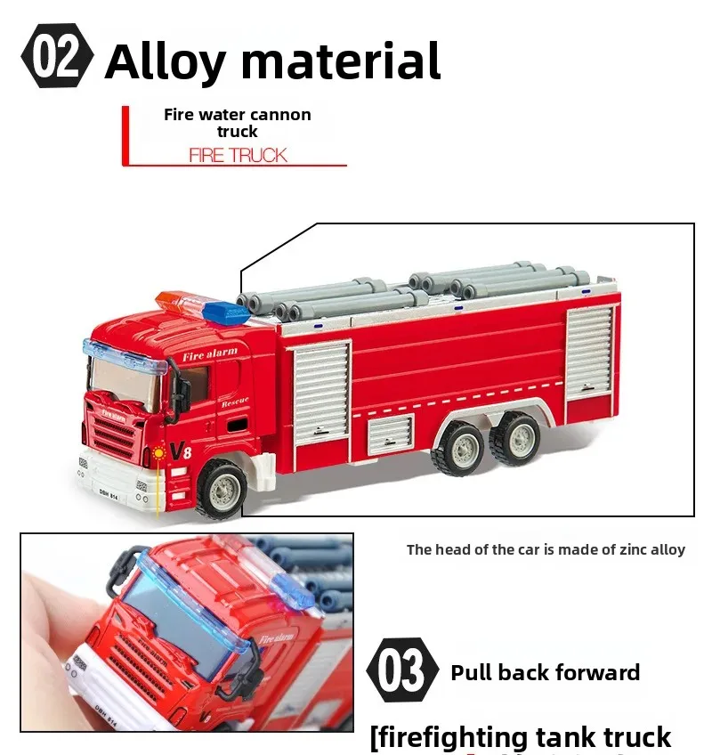 - Durable Alloy Material : Crafted from durable alloy material, this fire truck ensures longevity and resistance to wear and tear, making it a reliable companion for young firefighters.