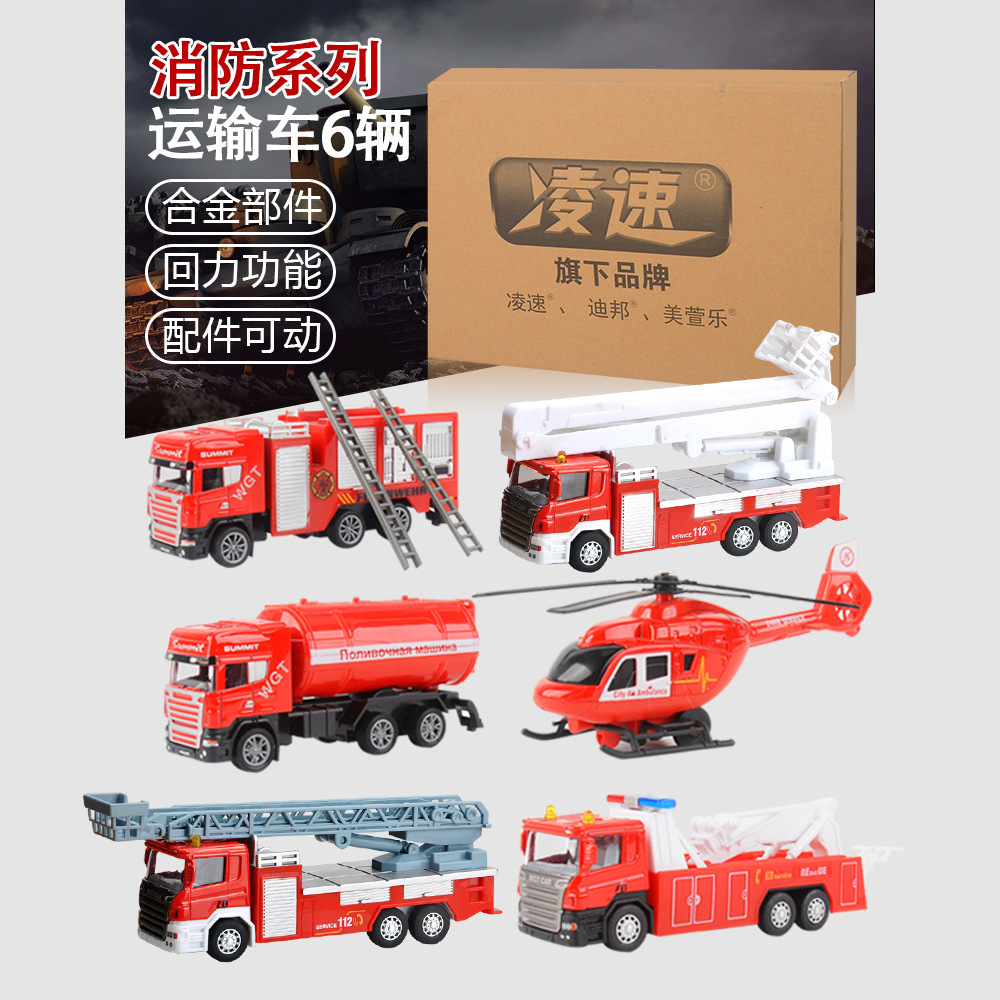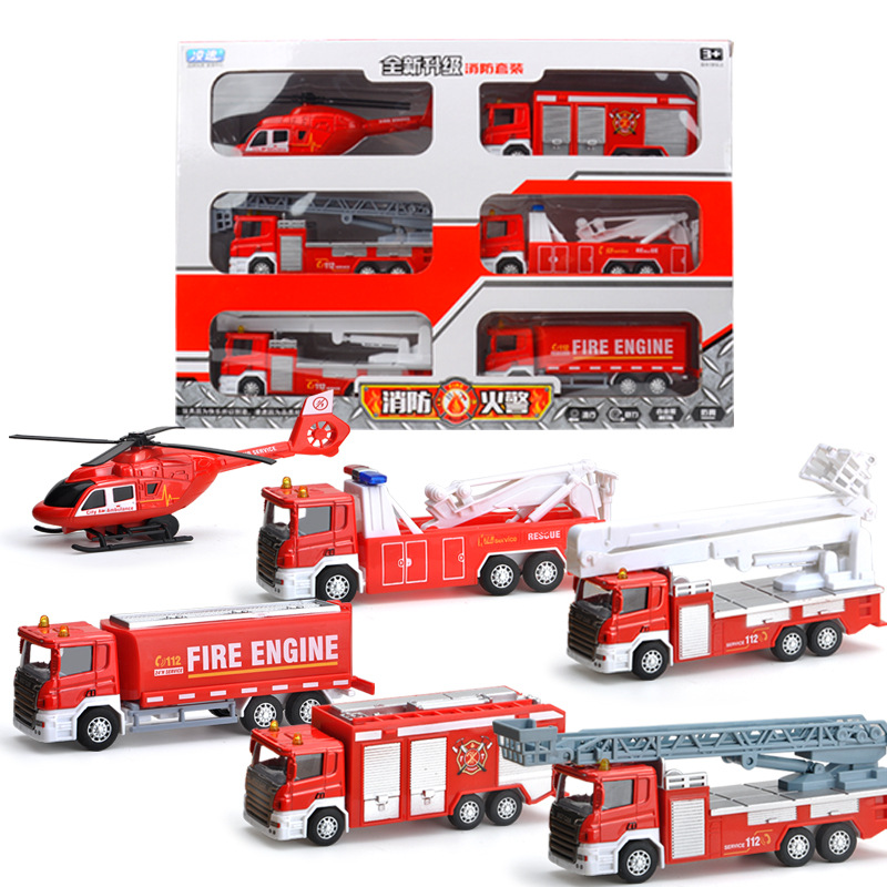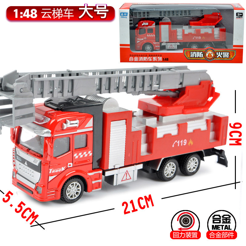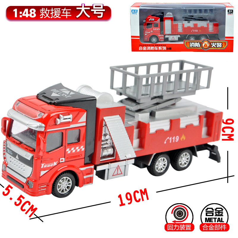 Alloy fire truck children's car toy fire fighting ladder truck lifting rescue model set Boy gift