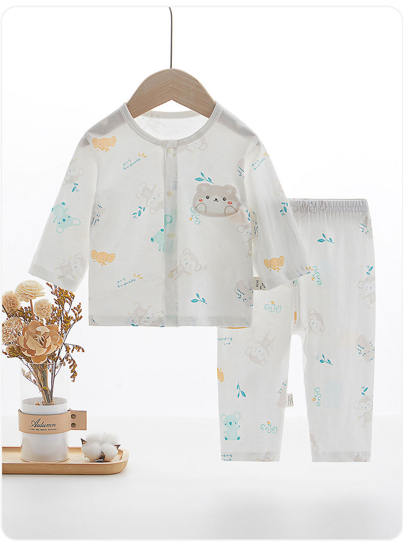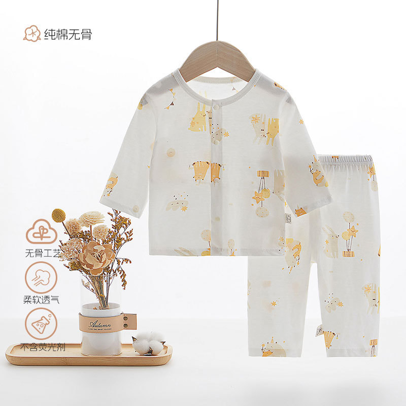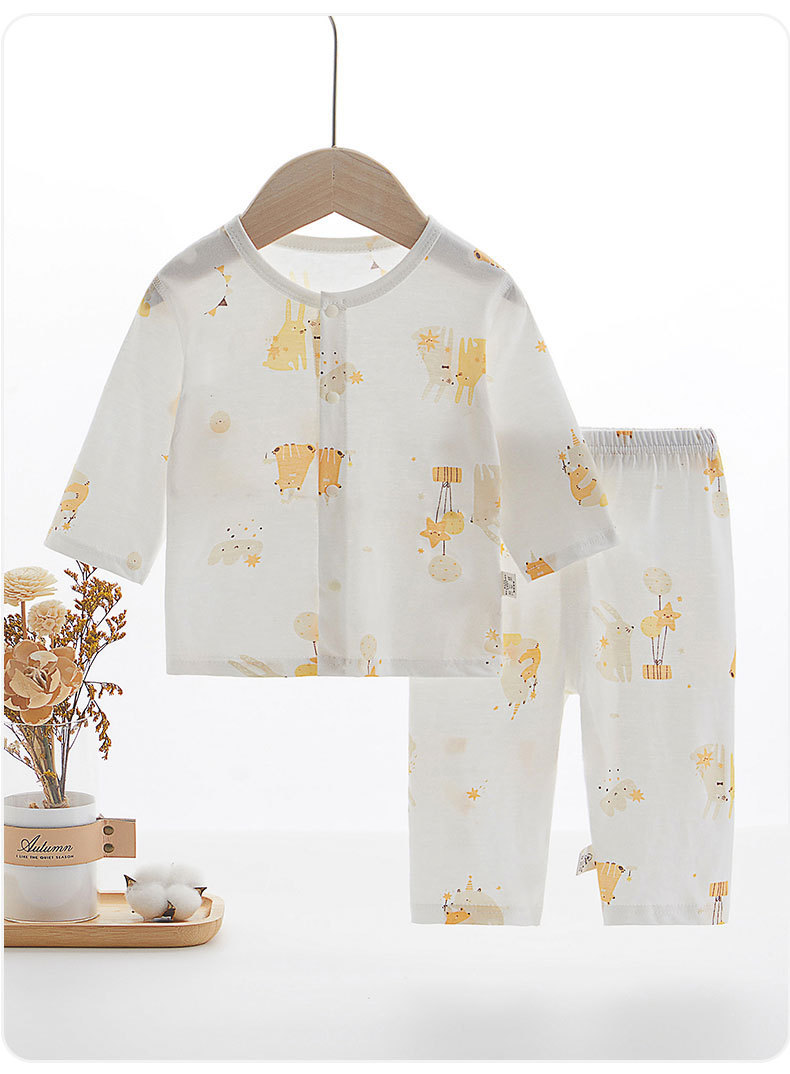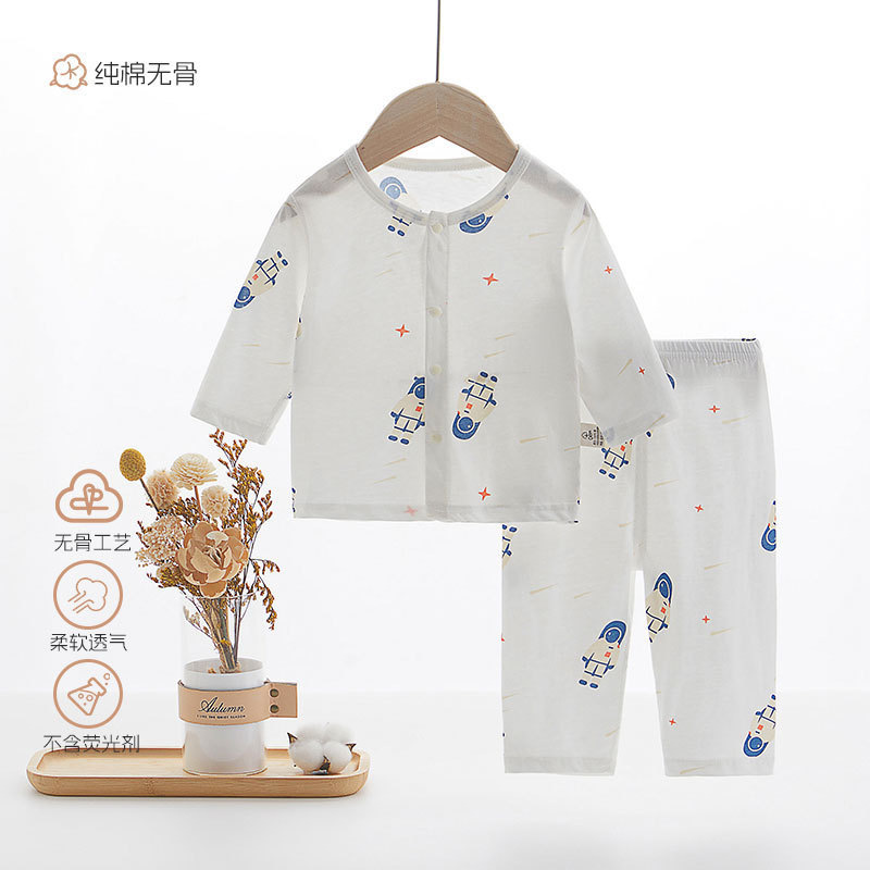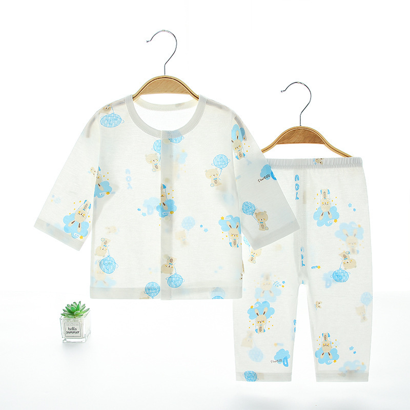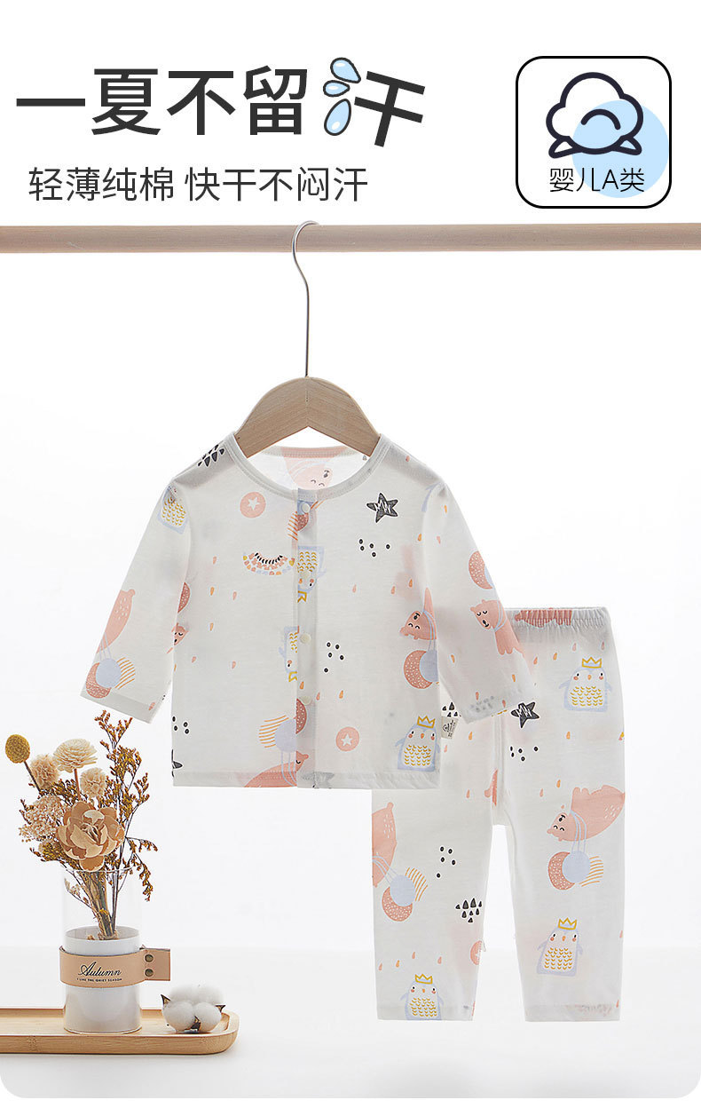 Baby summer suit thin cotton long-sleeved air conditioning clothes summer two-piece suit summer baby pajamas homewear
