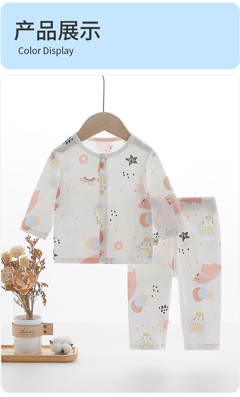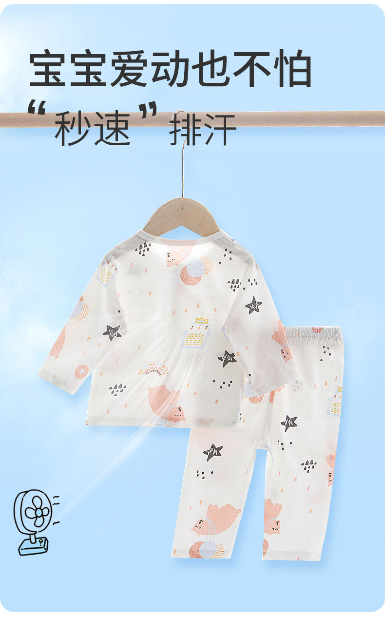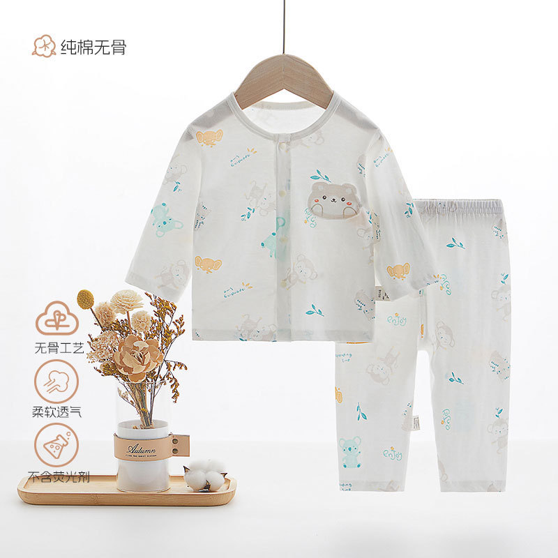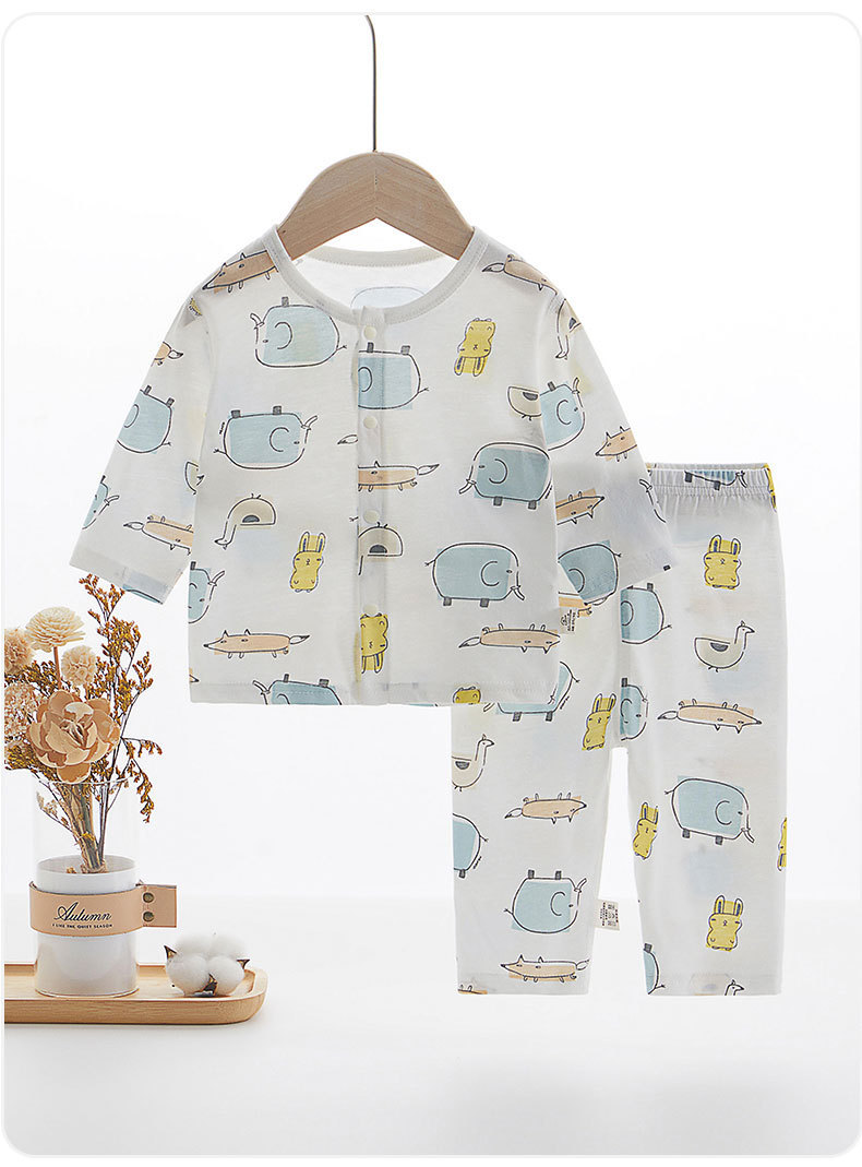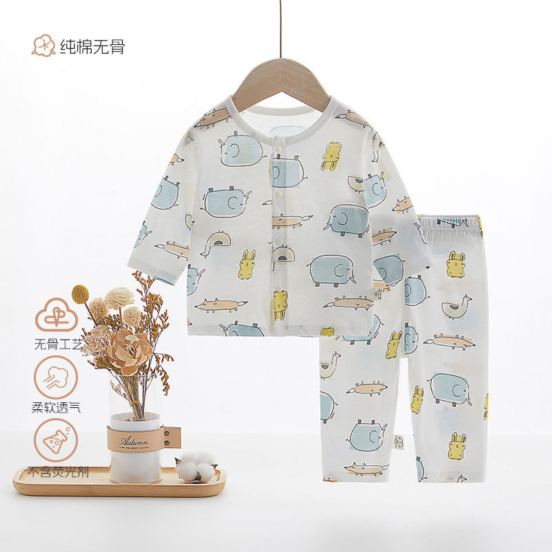 Baby summer suit thin cotton long-sleeved air conditioning clothes summer two-piece suit summer baby pajamas homewear