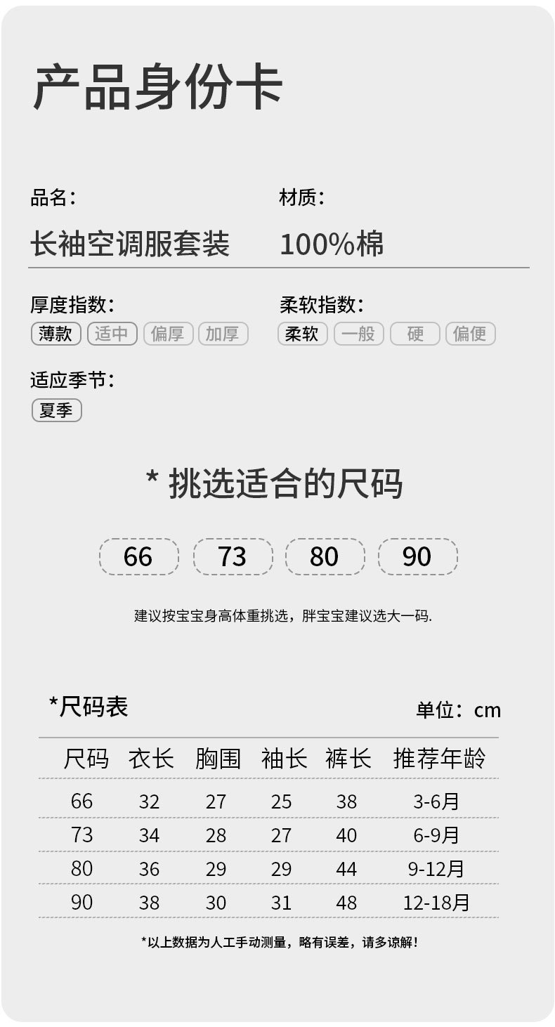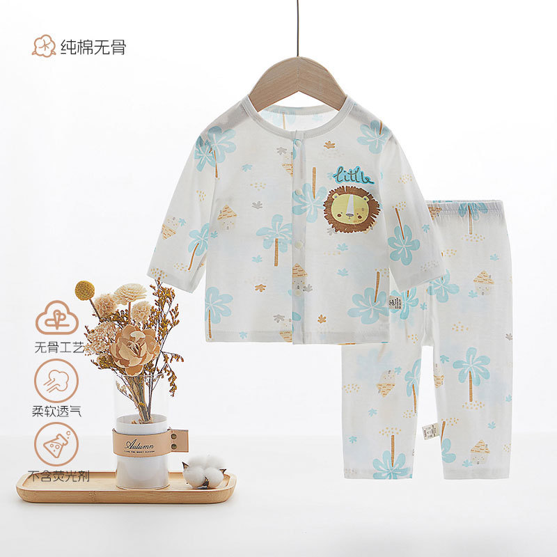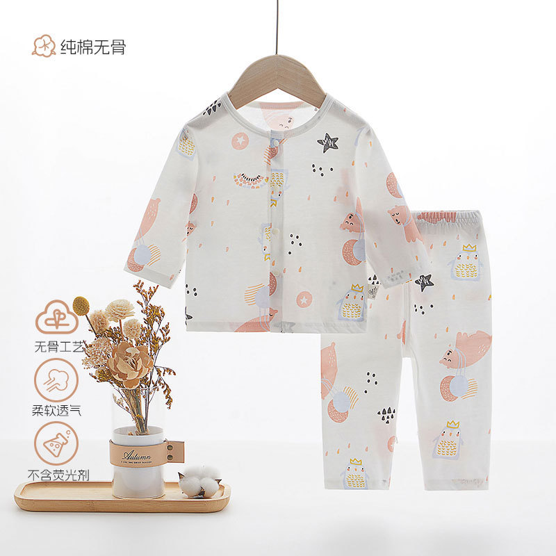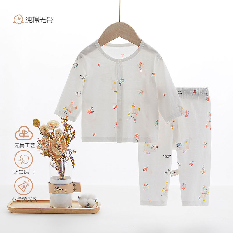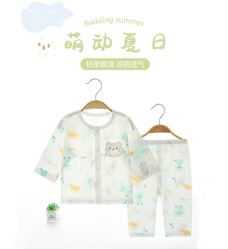 Baby summer suit long sleeve thin air conditioning clothes split home underwear baby pajamas two-piece cotton summer clothes