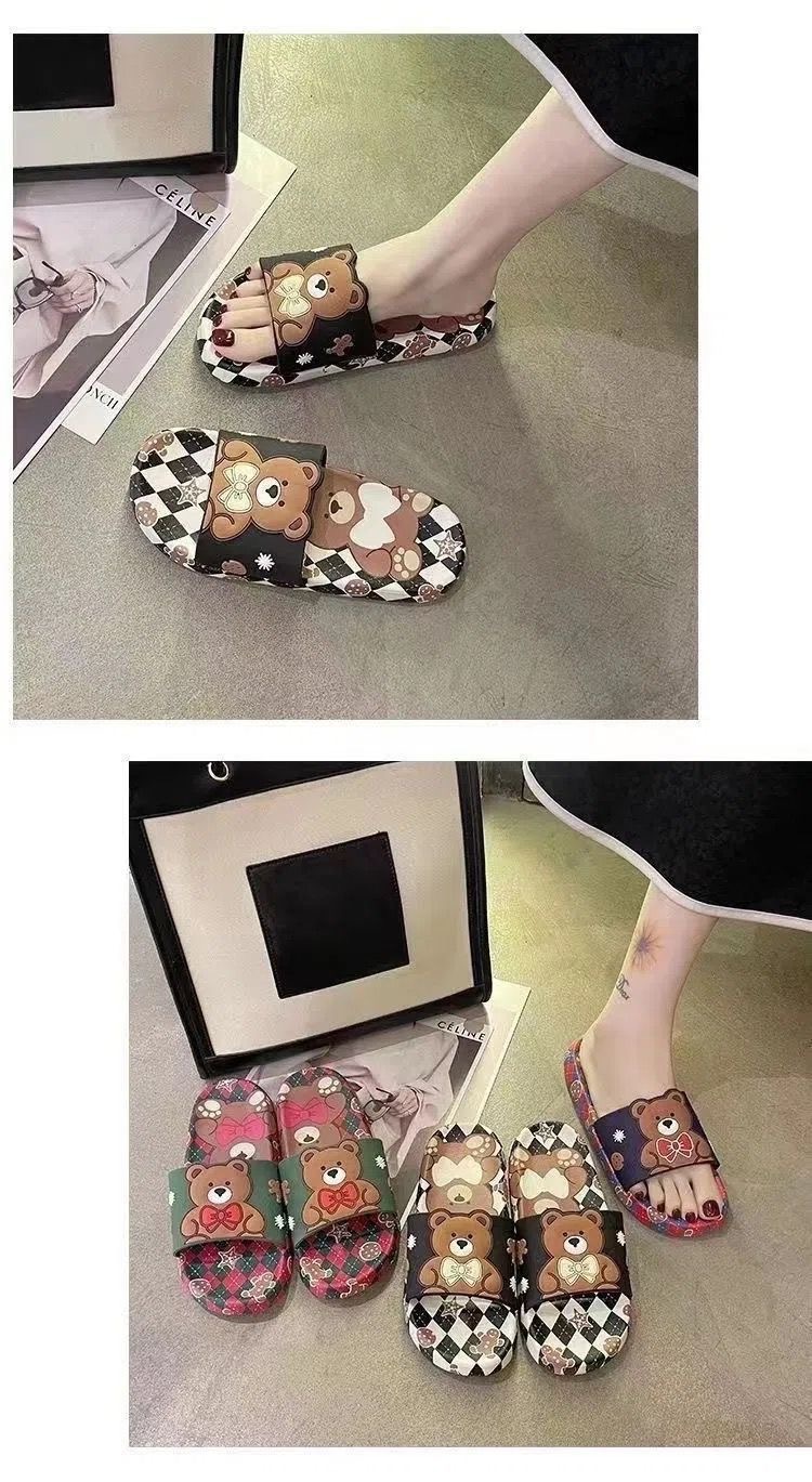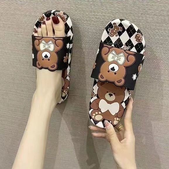 Women's online red ins fashionable summer outdoor cute cartoon bear soft bottom student home bathroom slippers