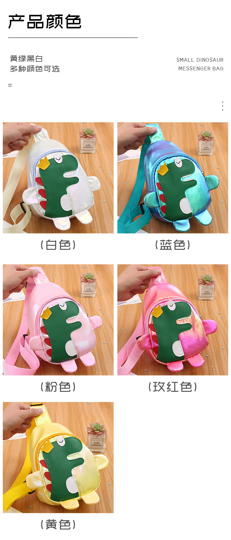 | Color | Colorful Dinosaur bag Rose Red | Color | Colorful Dinosaur bag pink |