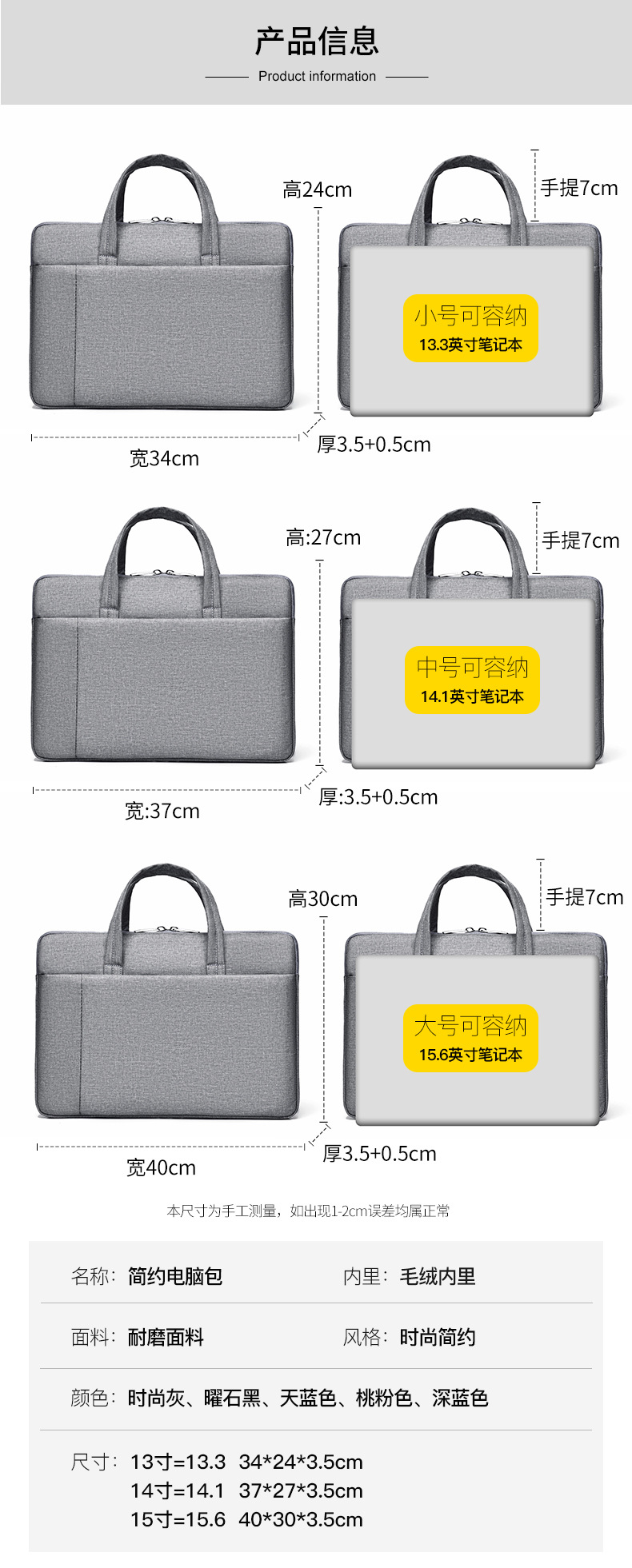 | Applicable Scenarios | Business travel | Accommodates computer size | 15 inches |