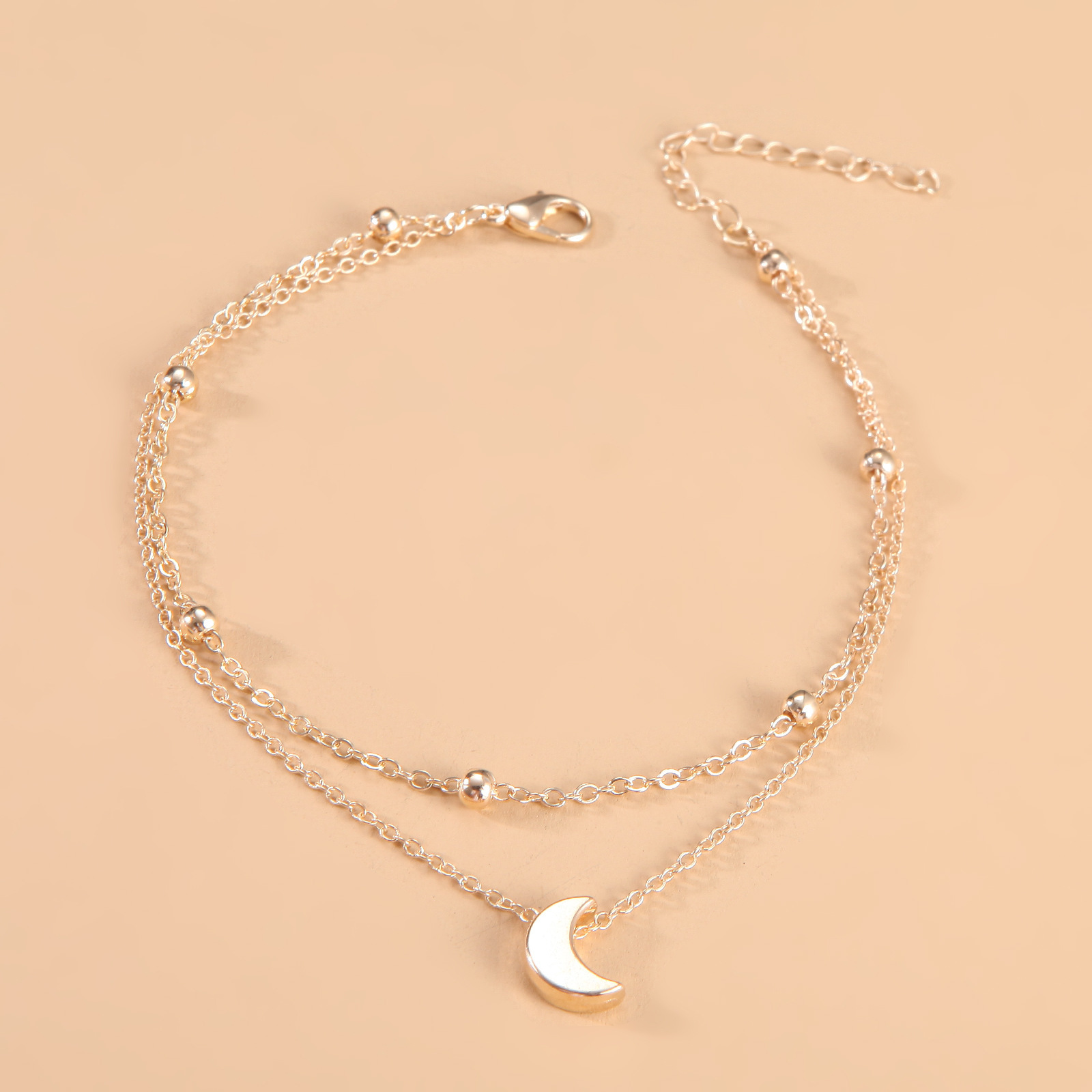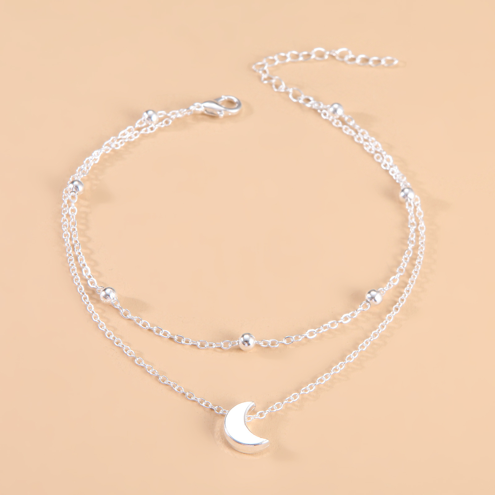 European and American Cross-Border Crescent Anklet Set for Women, Alloy Moon Pendant Foot Jewelry, Fashionable and Versatile Beach Chain, Adjustable