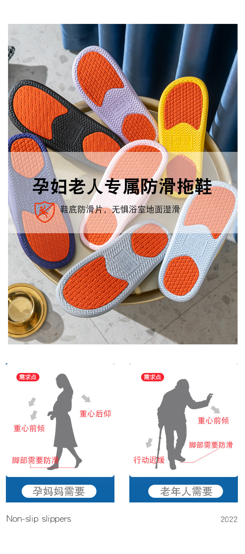 Pregnant Women, Middle-Aged and Elderly Non-Slip Slippers for Women, Summer Home Indoor Bathroom Special Bathing Popular Sandals for Men Wholesale