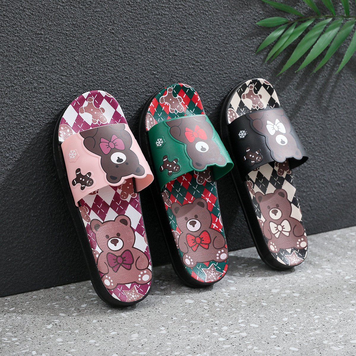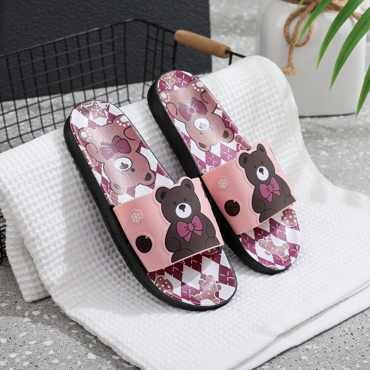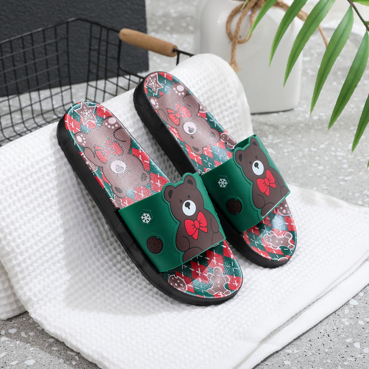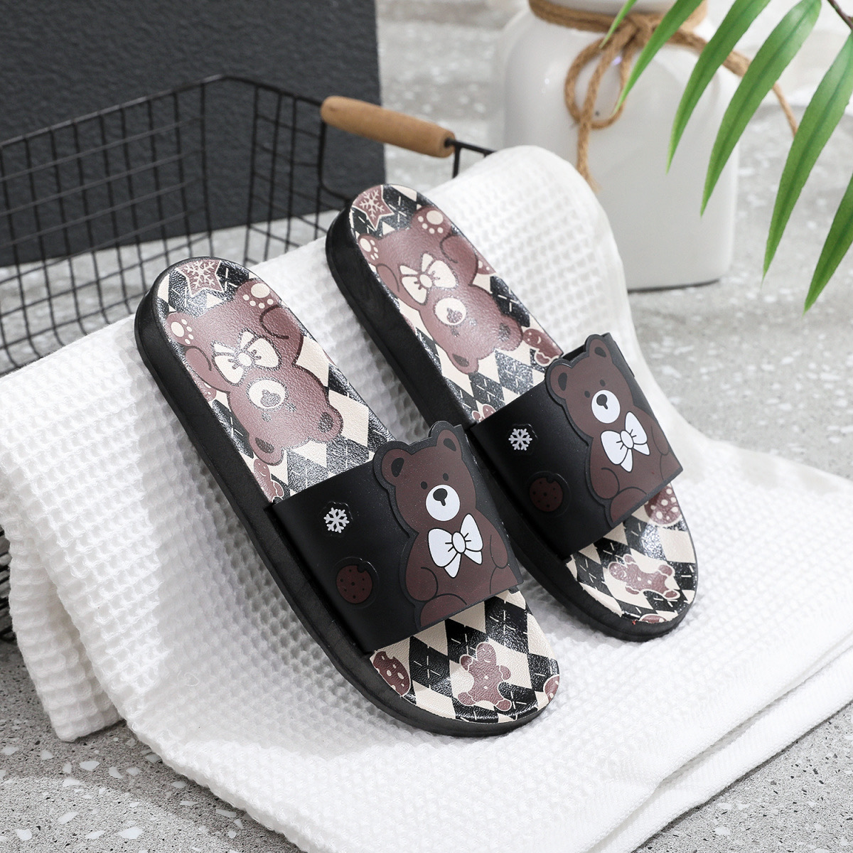 Summer Internet celebrity cute bear head flat non-slip home thick bottom indoor outdoor trendy beach sandals for women