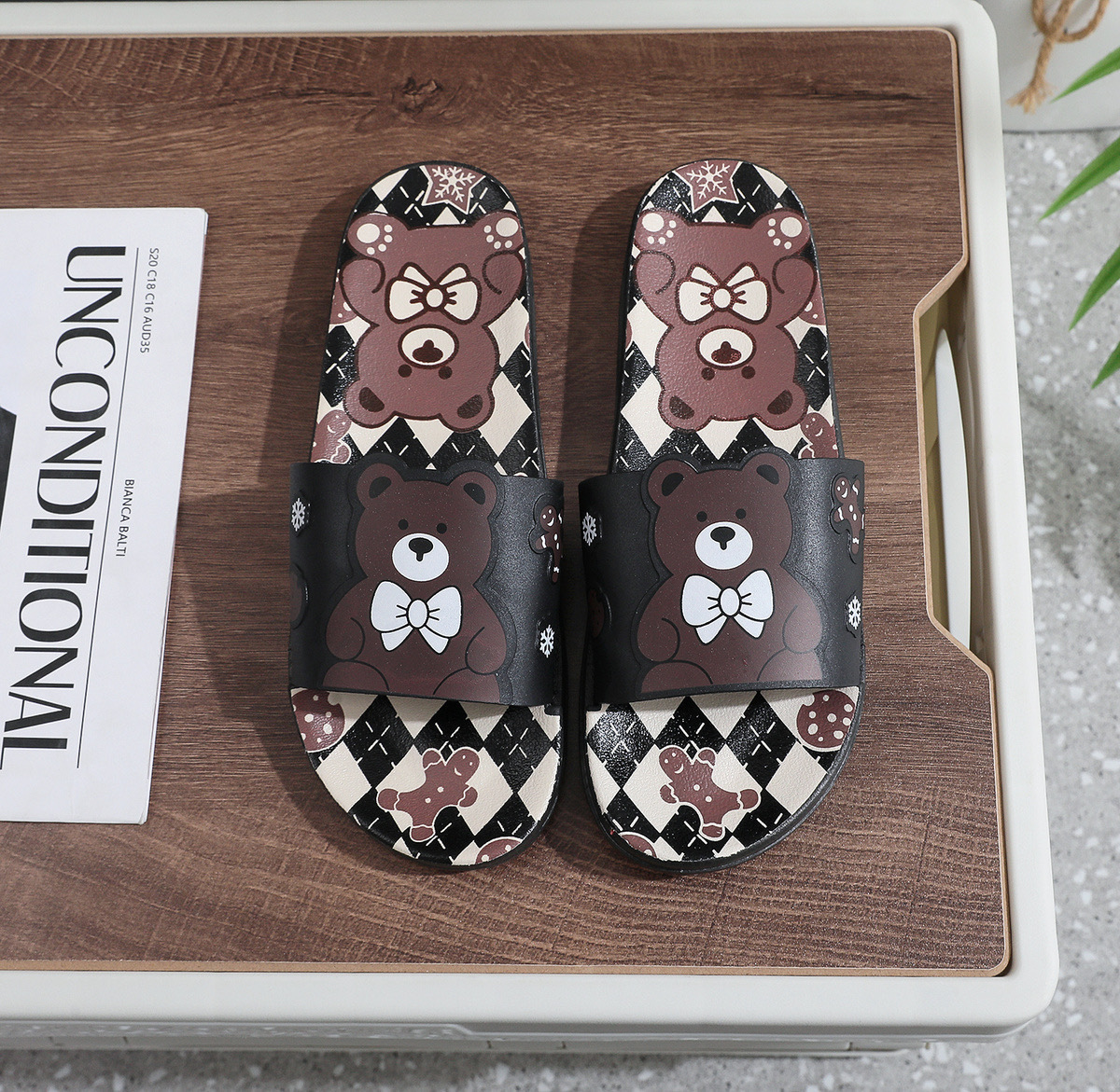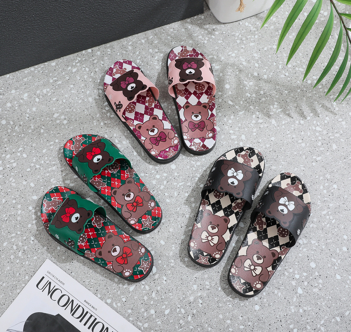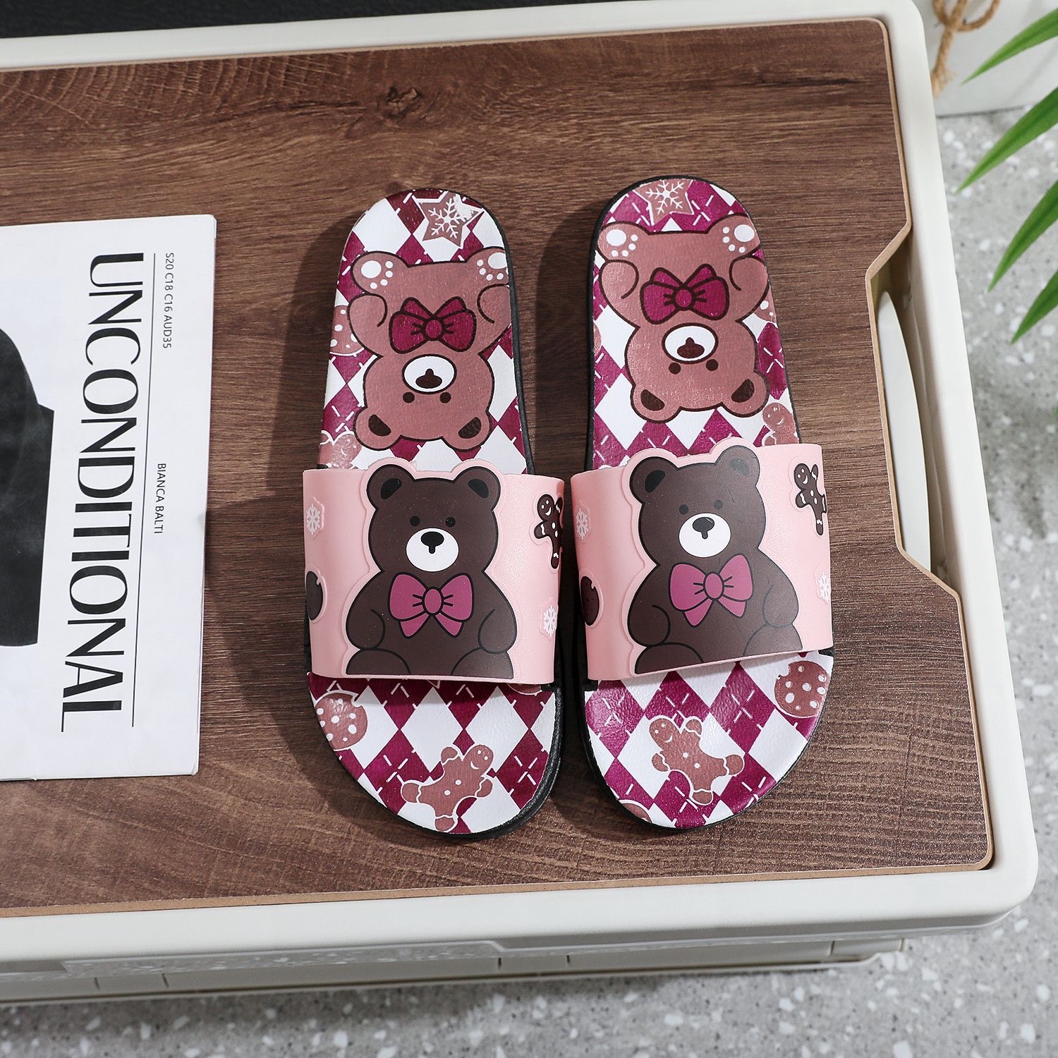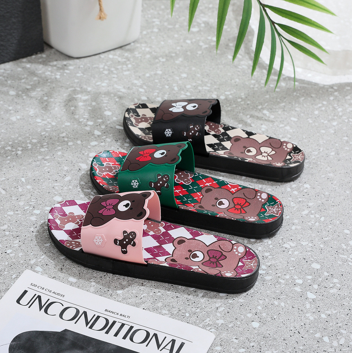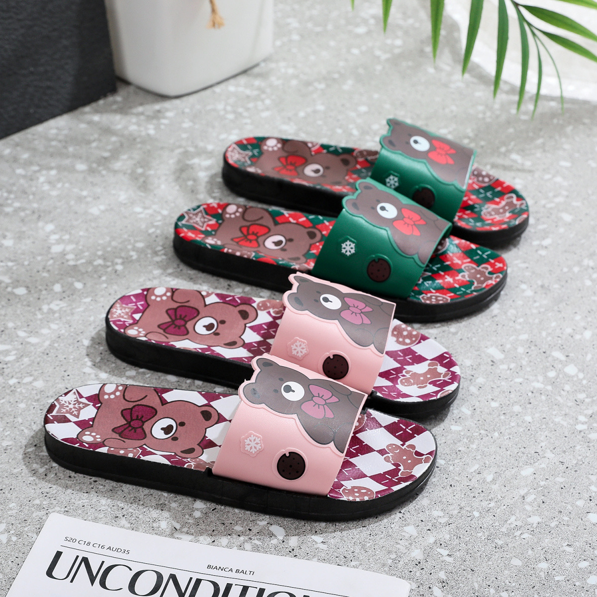 Summer Internet celebrity cute bear head flat non-slip home thick bottom indoor outdoor trendy beach sandals for women