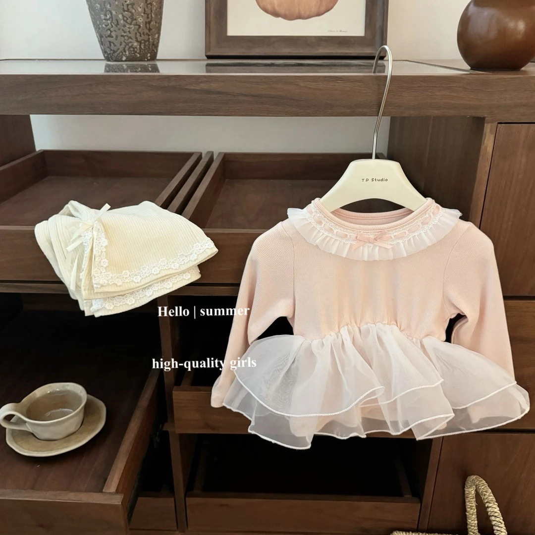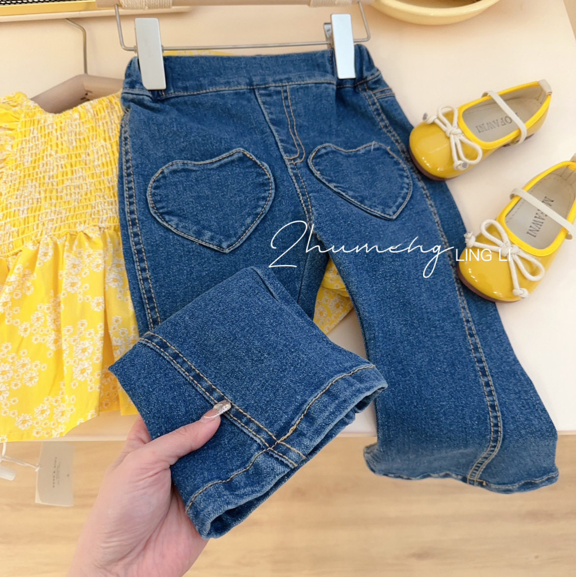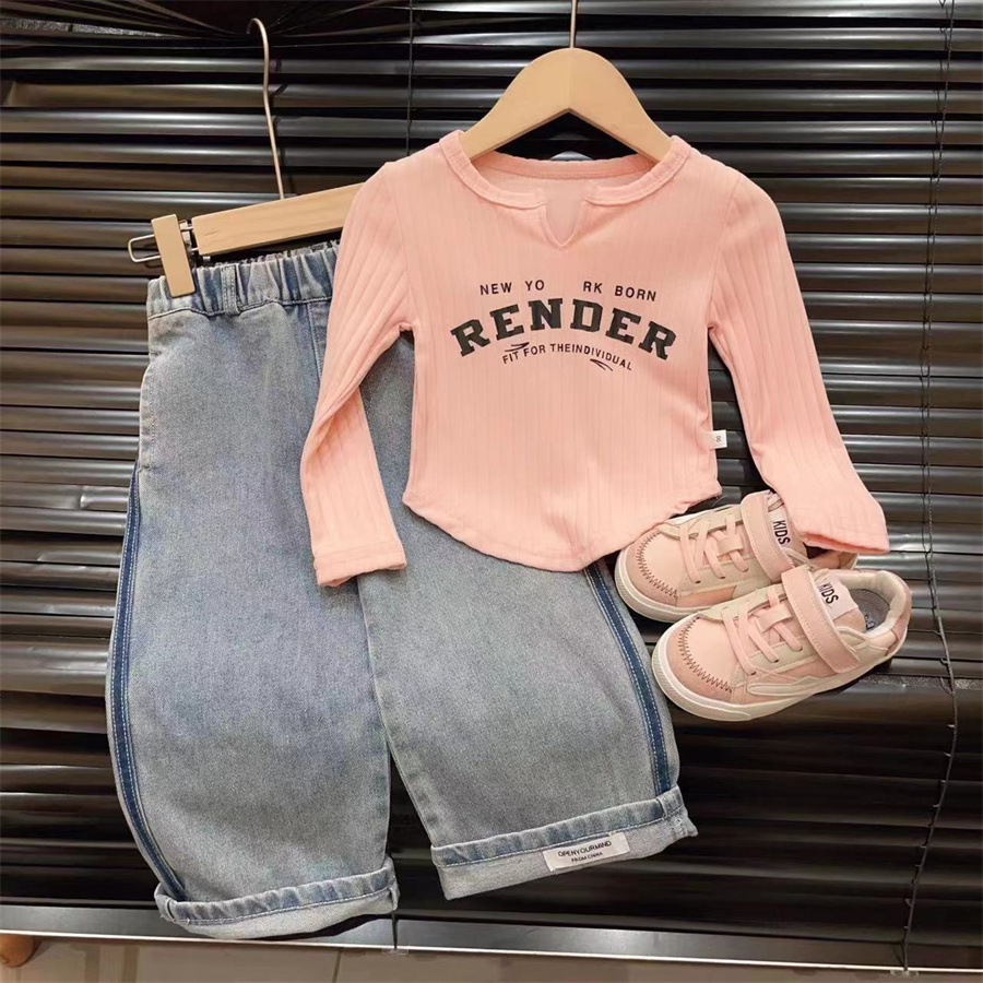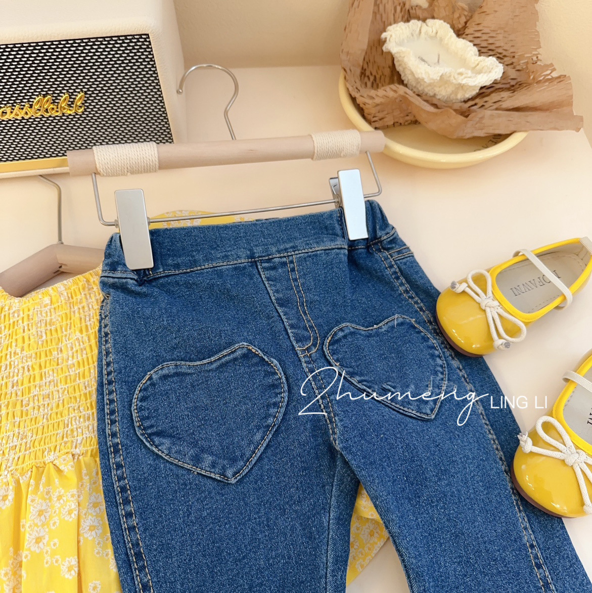 Lime Women's Children's Clothing Fashionable Western Style Suit Autumn Clothing Children's Yellow Bubble Sleeve Floral Shirt Jeans Two-piece Set