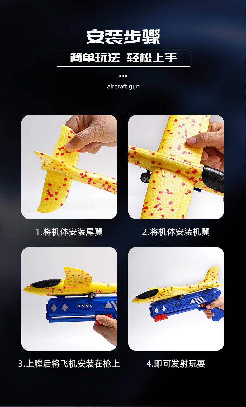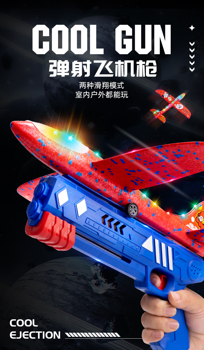 Internet Celebrity Popular Ejection Foam Aircraft Hand-Held Launch Gun Hand-Thrown Kidsren's Flying Outdoor Sports Toy Little Boy