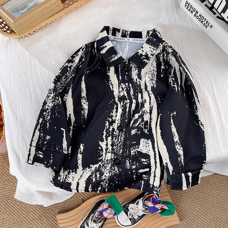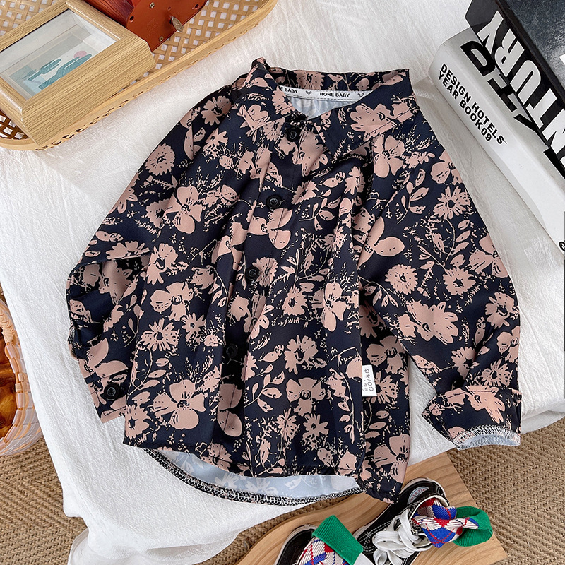 Boys' Shirts, Spring & Fall Long-Sleeved Kidsren's Clothing, Handsome Floral Shirts, 2025 New Style, Stylish Boys' Clothes, Baby Tops