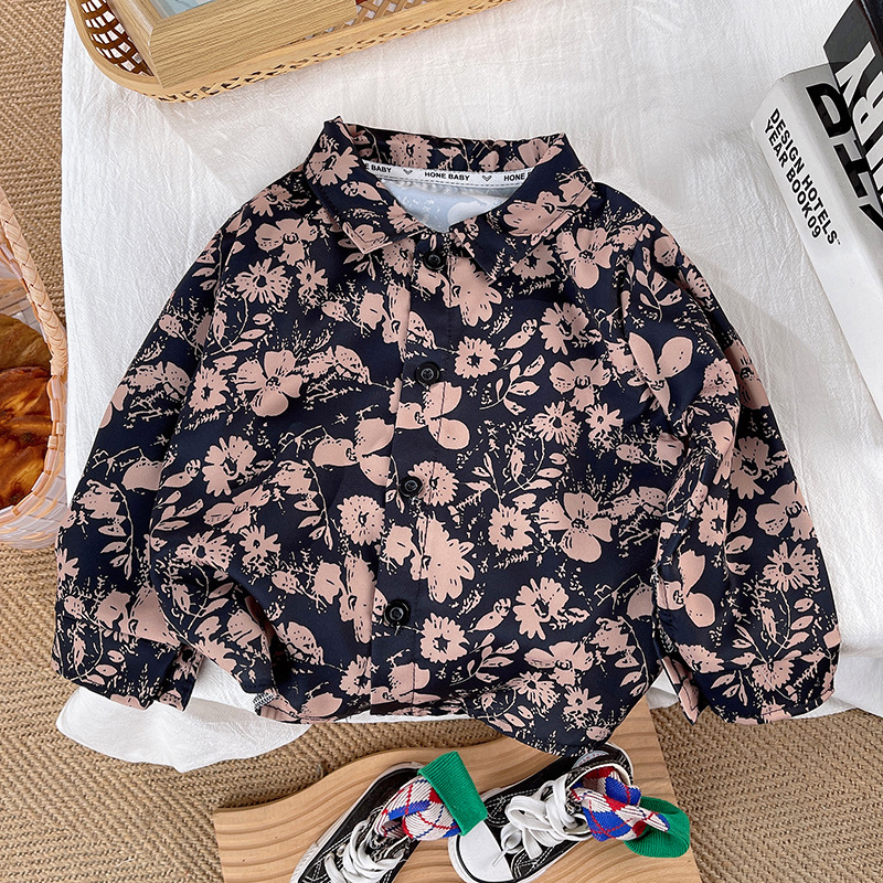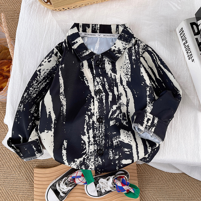 Spring and Autumn new casual Ice Silk long-sleeved printed children's breathable boys and girls baby shirt cool handsome cartoon lapel