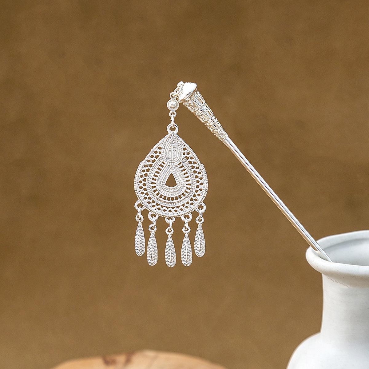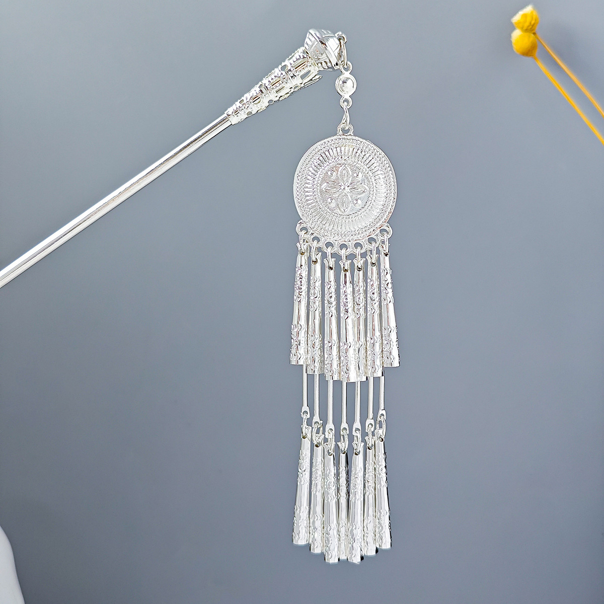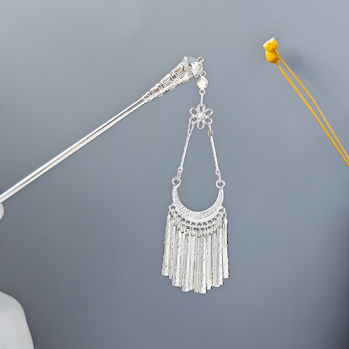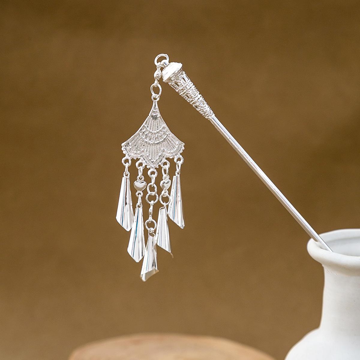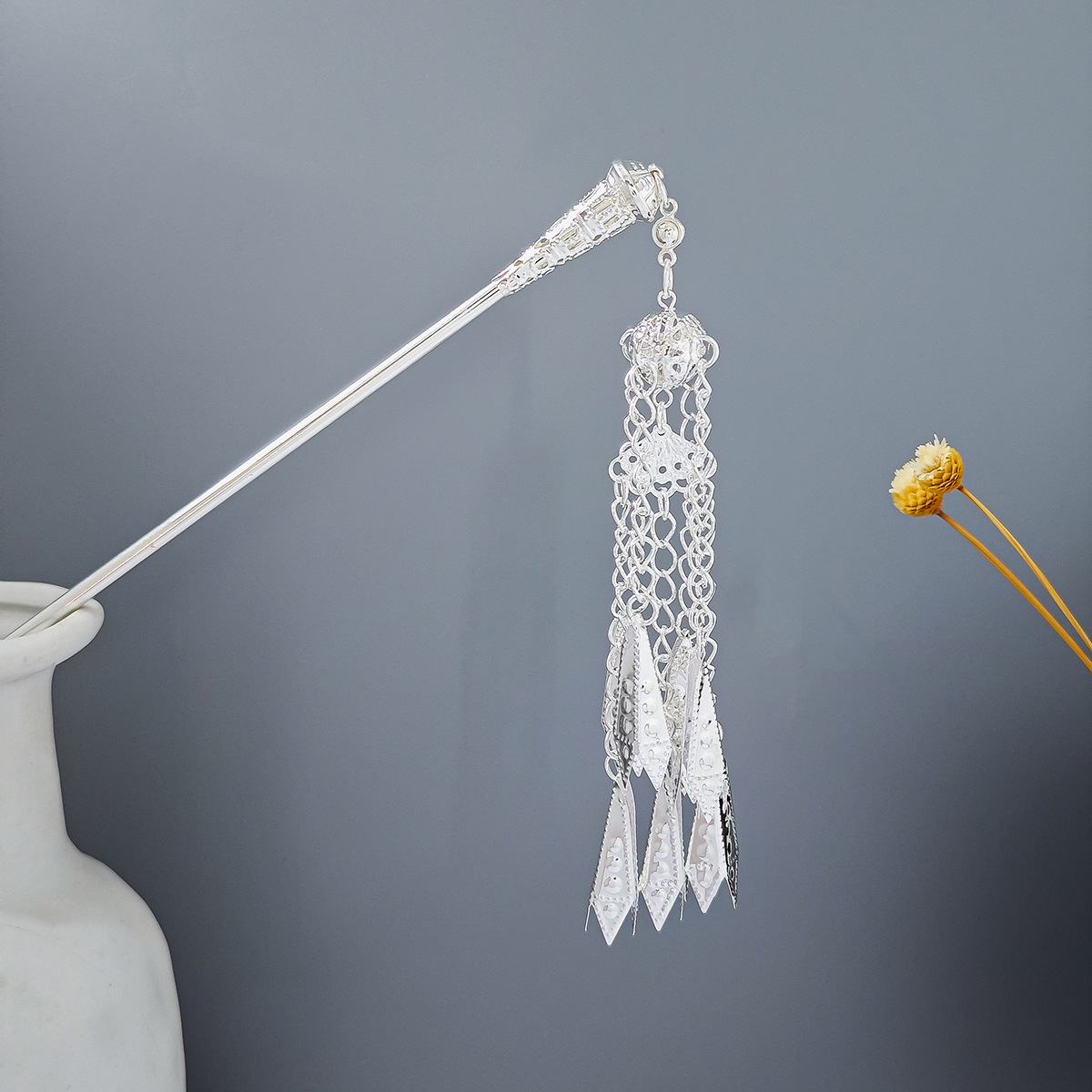 New Chinese-style Miao Silver Geometric Hollow Tassel Hairpin National Tide Drop-shaped Oil Drop Hair Hairpin Hanfu Disc Accessories for Women
