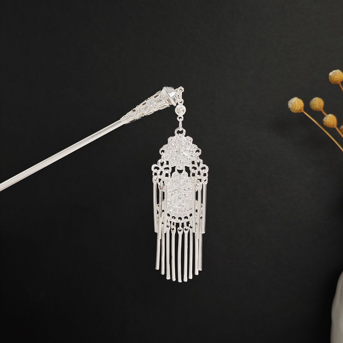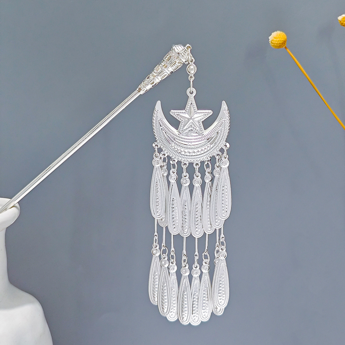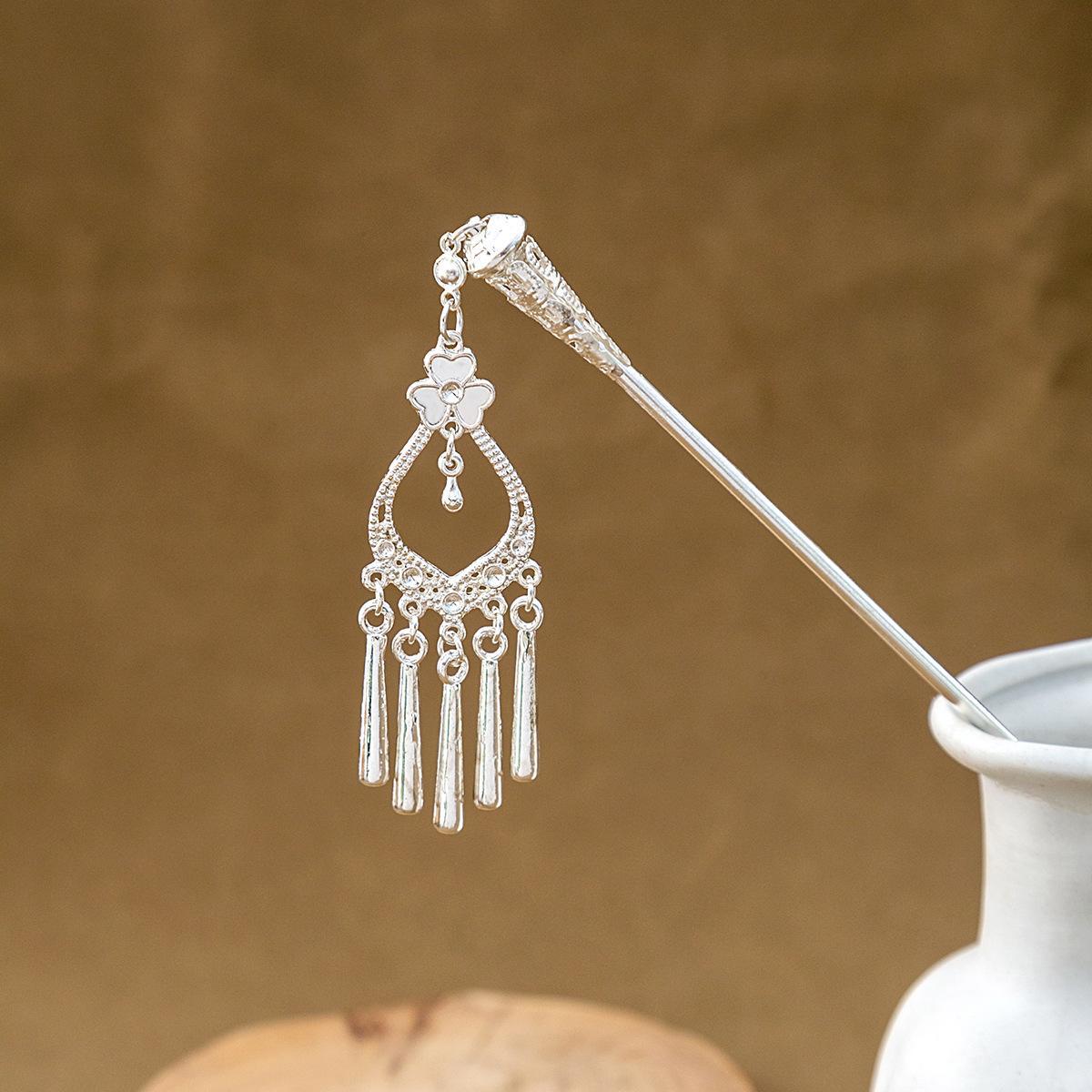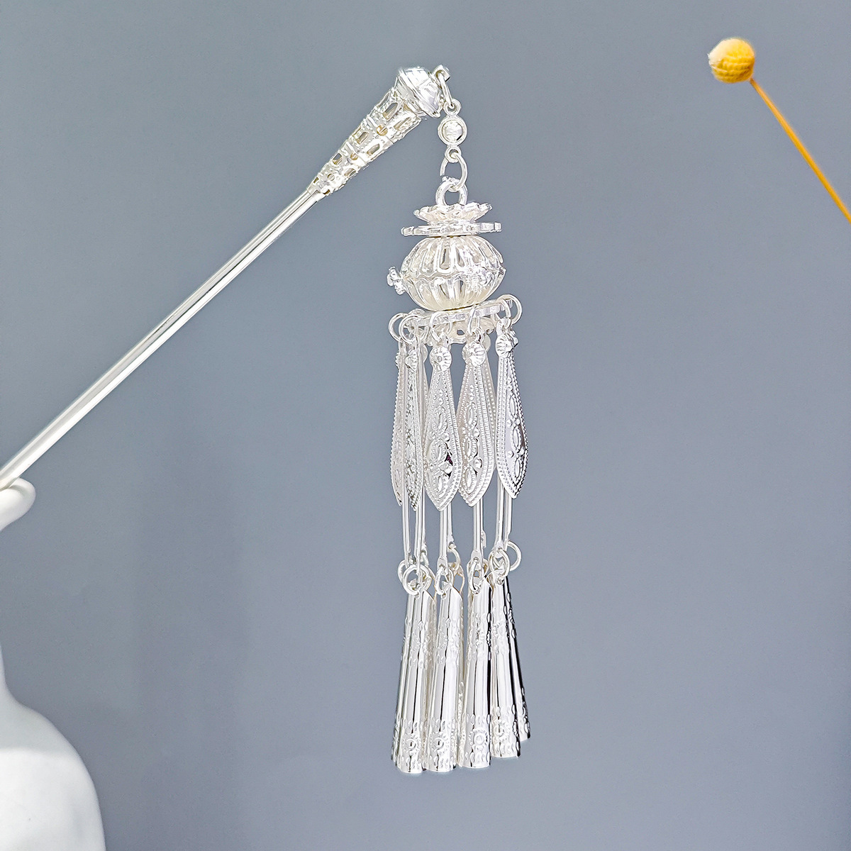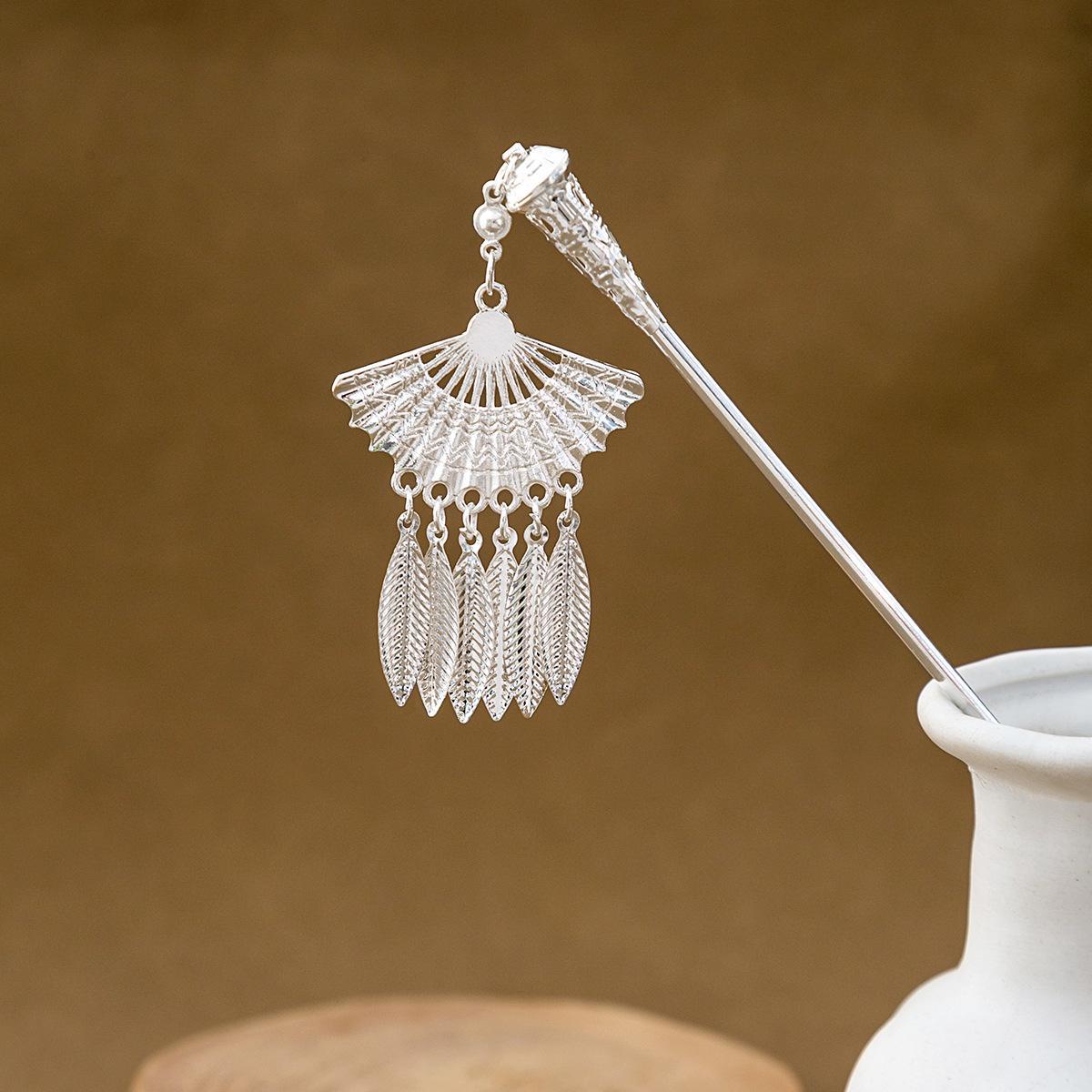New Chinese-style Miao Silver Geometric Hollow Tassel Hairpin National Tide Drop-shaped Oil Drop Hair Hairpin Hanfu Disc Accessories for Women