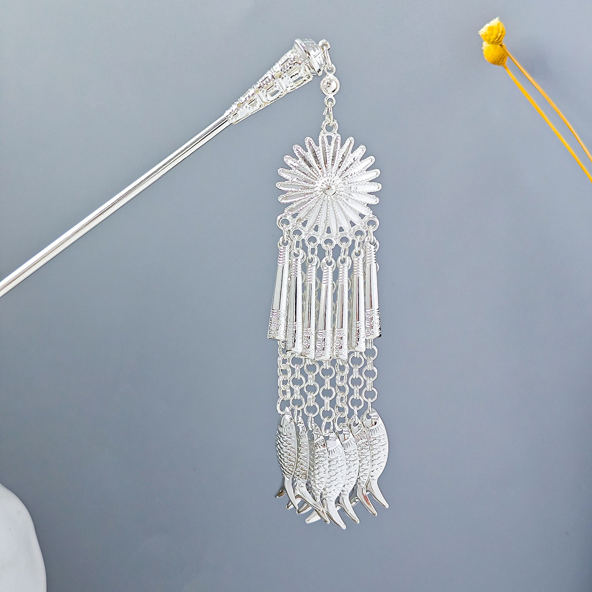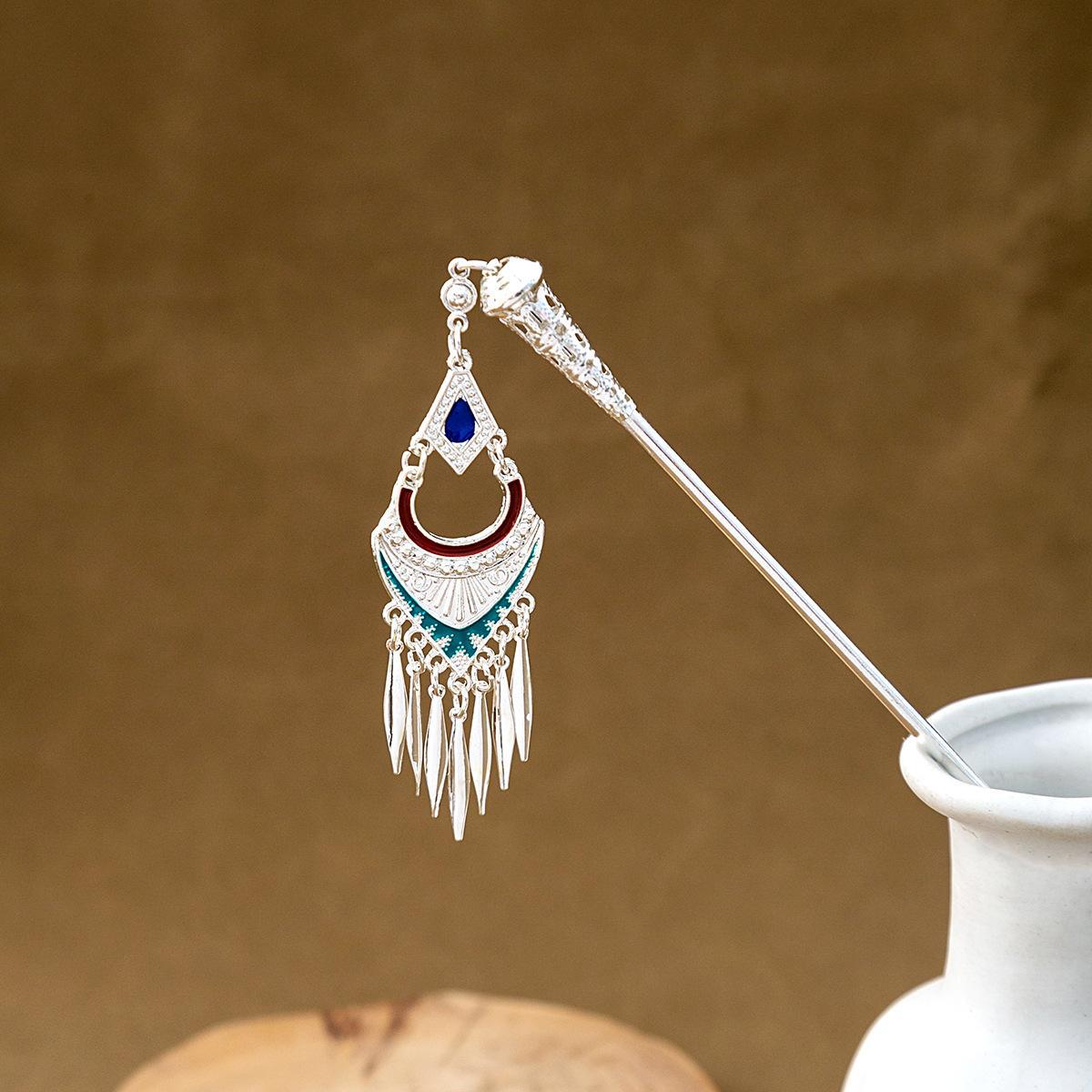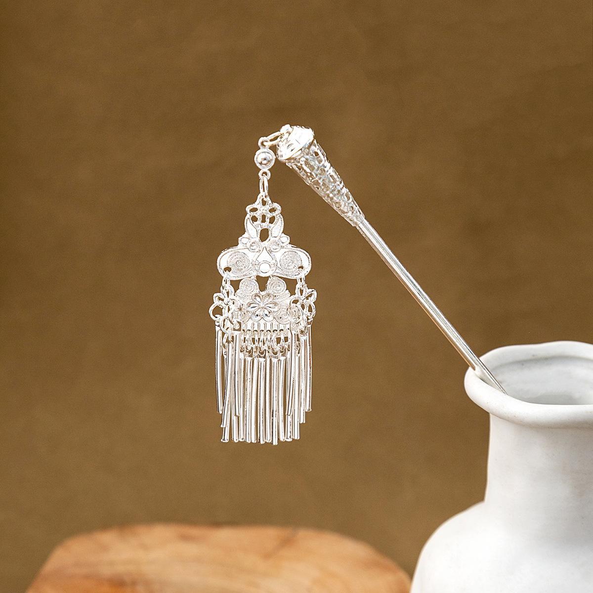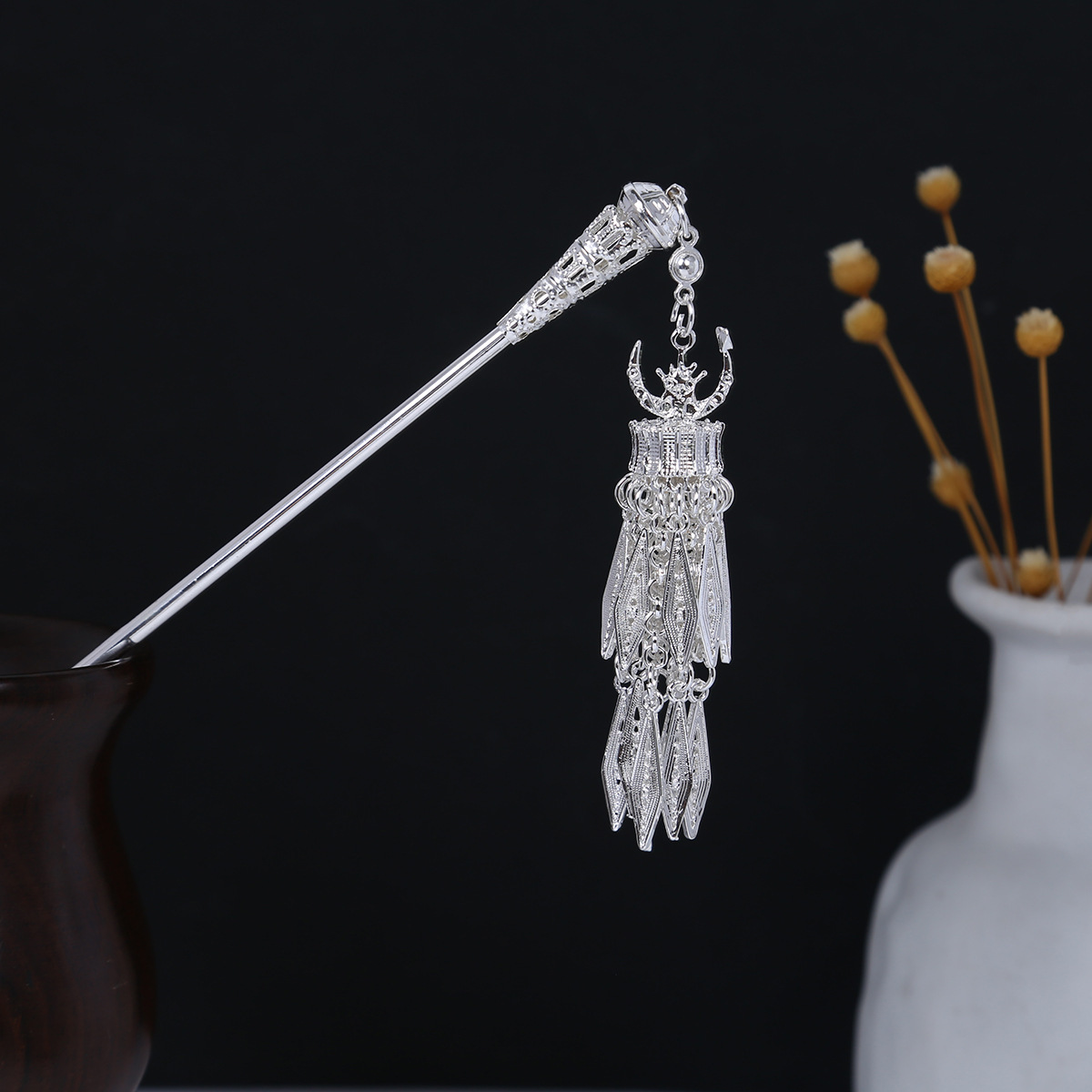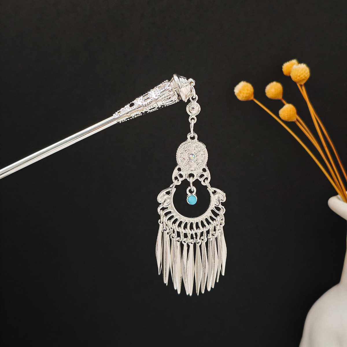 New Chinese-style Miao Silver Geometric Hollow Tassel Hairpin National Tide Drop-shaped Oil Drop Hair Hairpin Hanfu Disc Accessories for Women