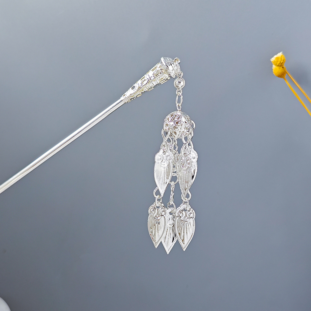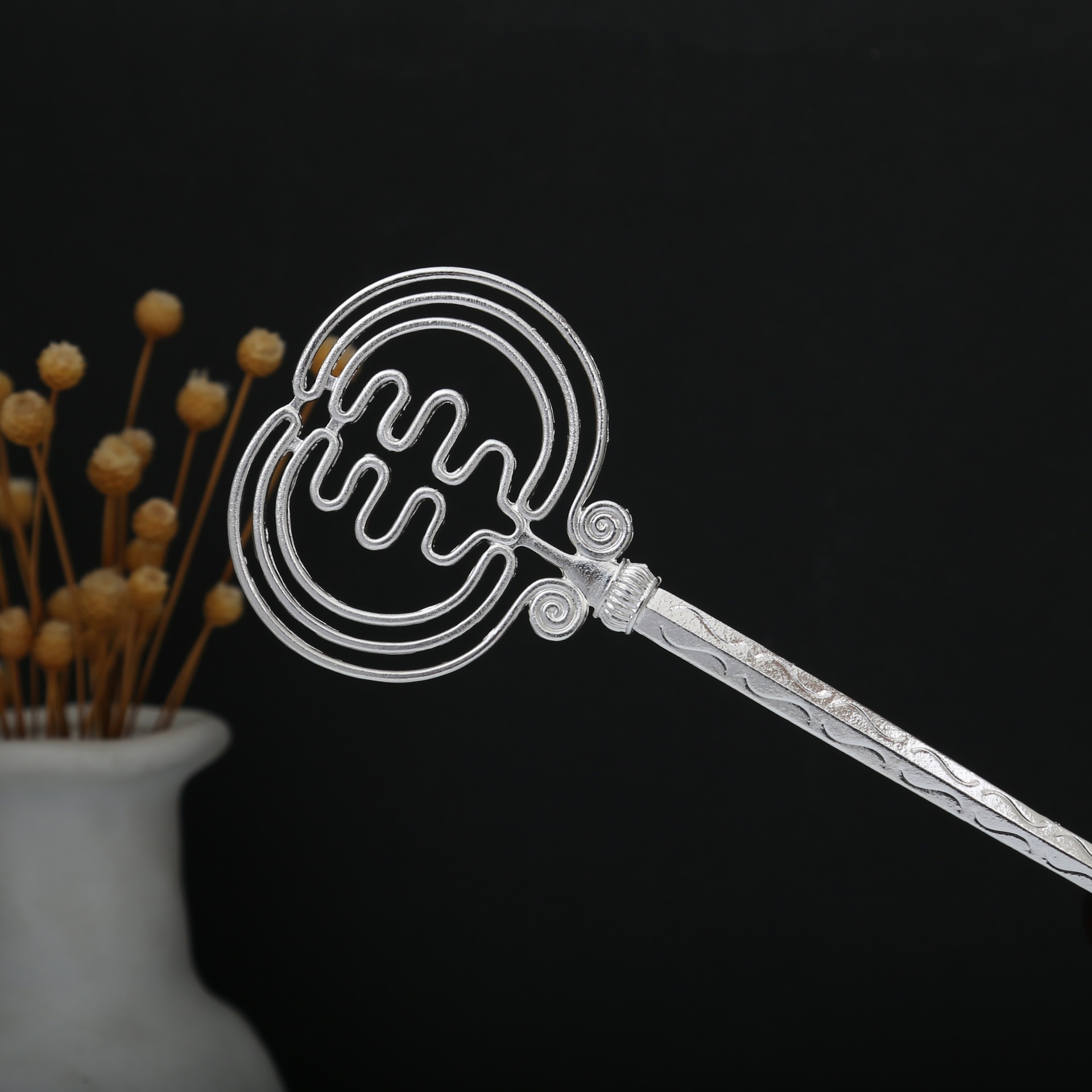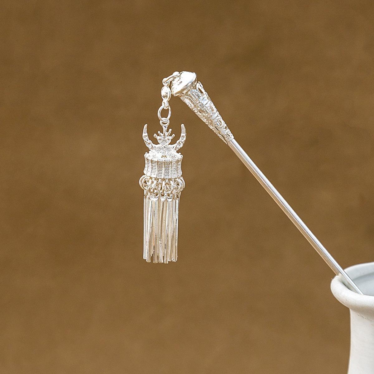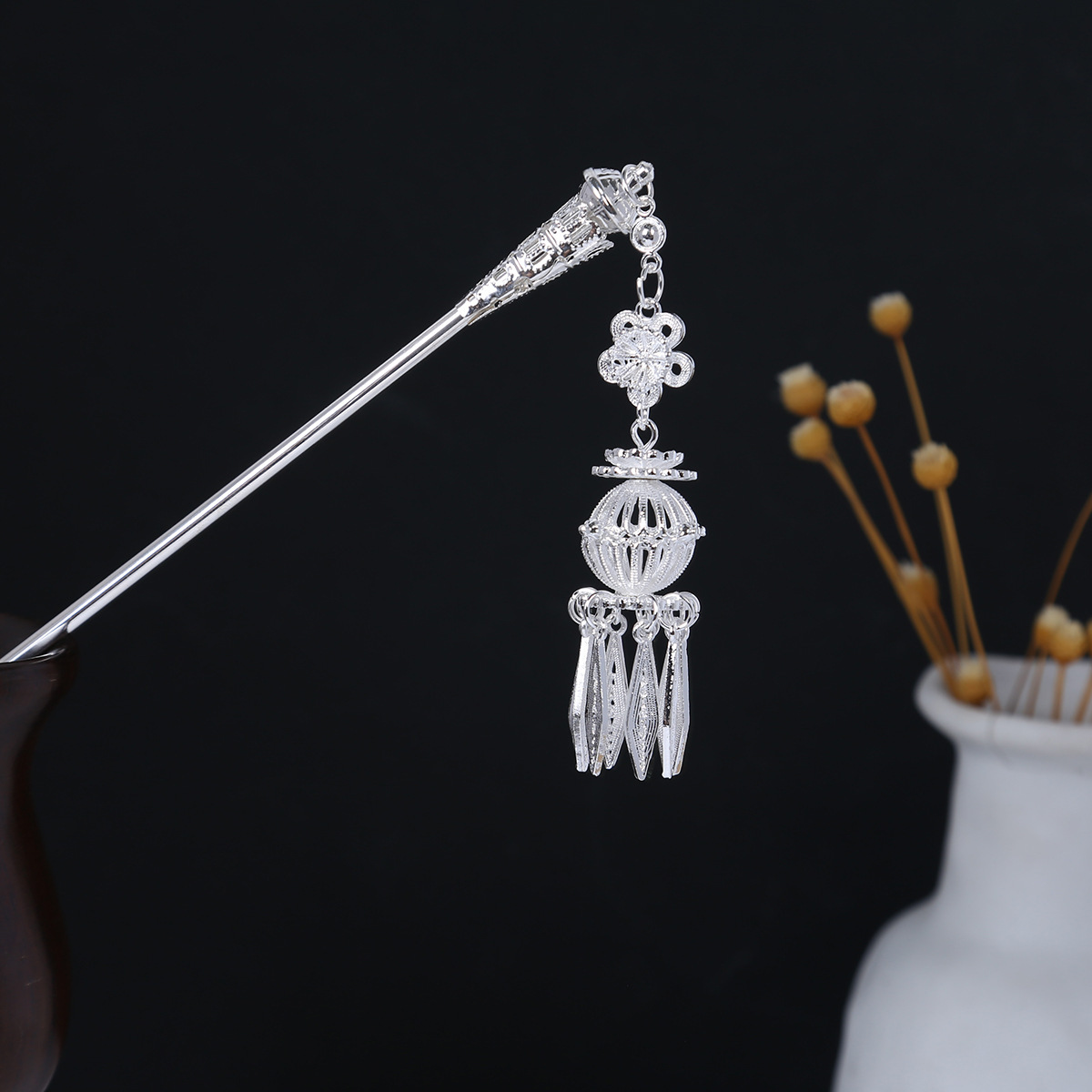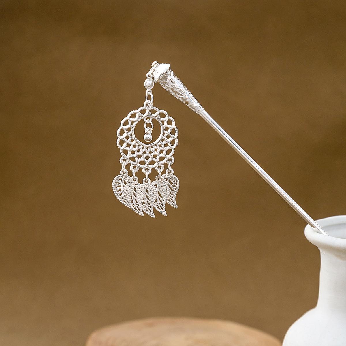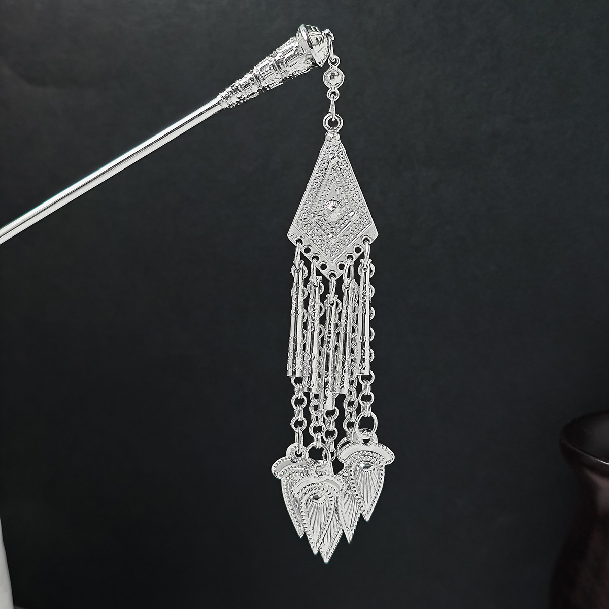 New Chinese-style Miao Silver Geometric Hollow Tassel Hairpin National Tide Drop-shaped Oil Drop Hair Hairpin Hanfu Disc Accessories for Women